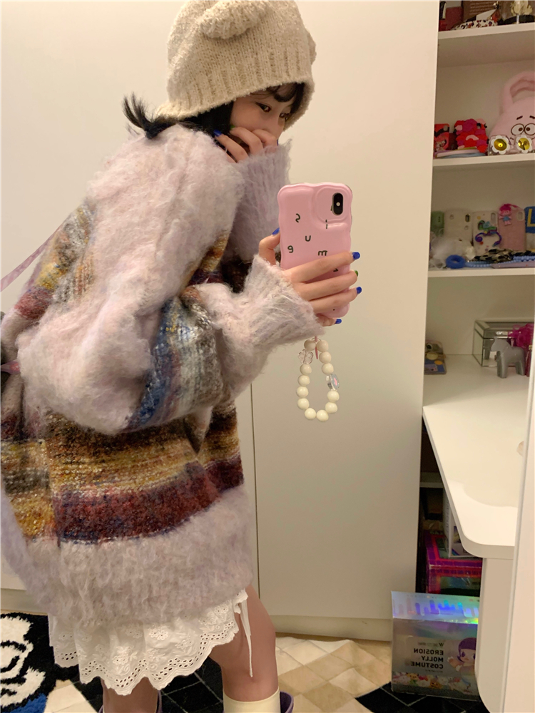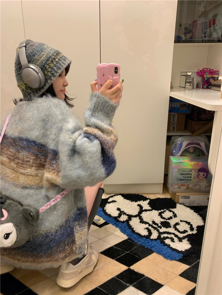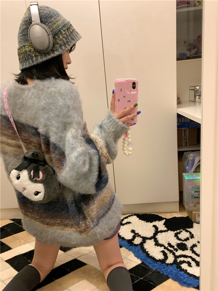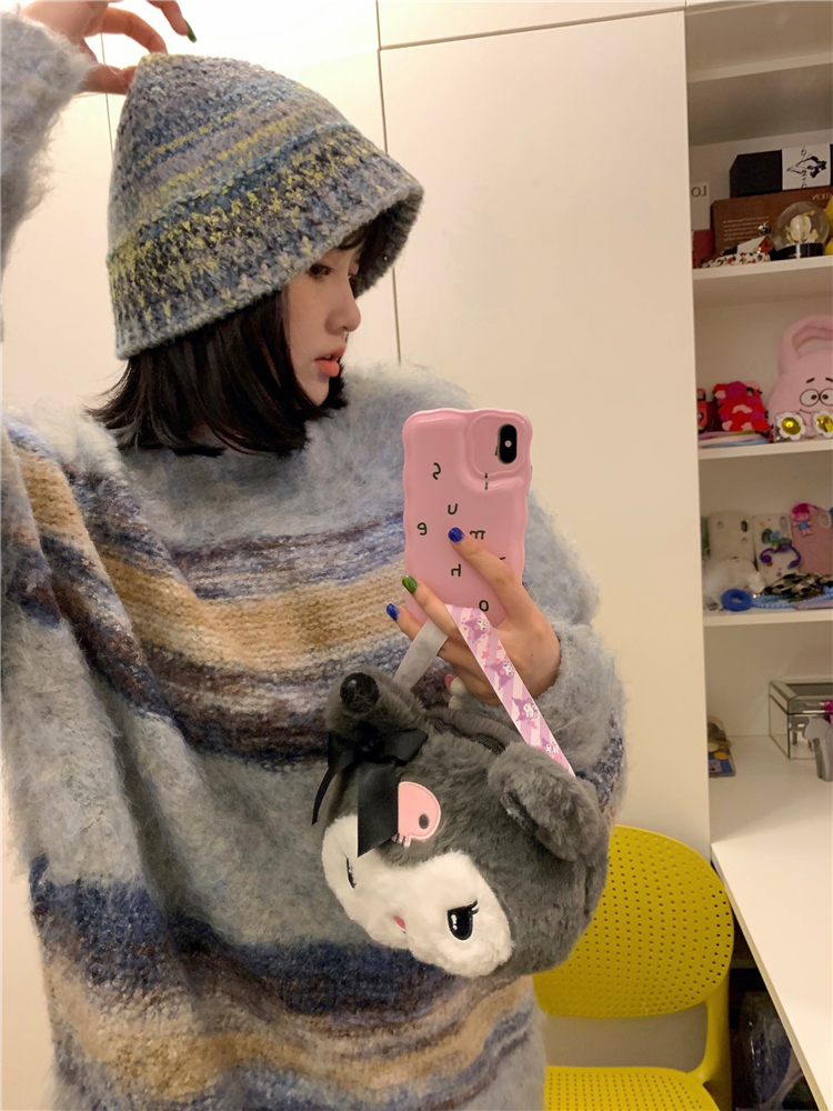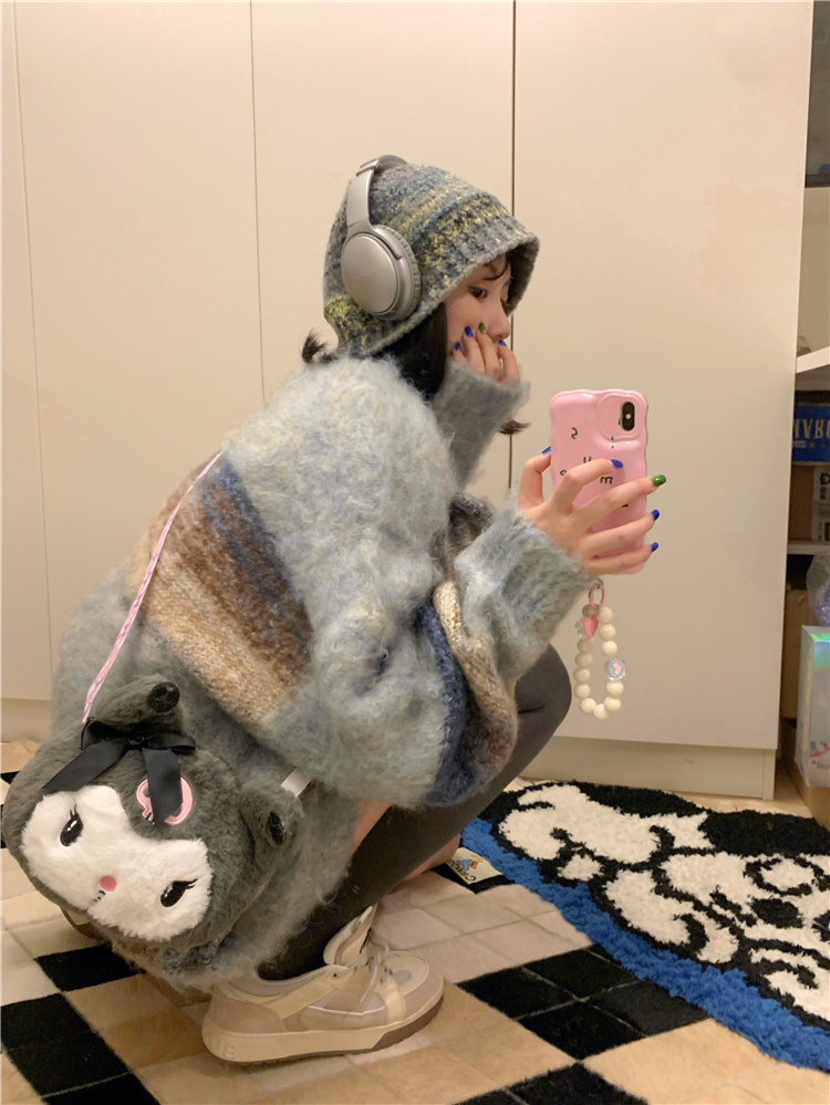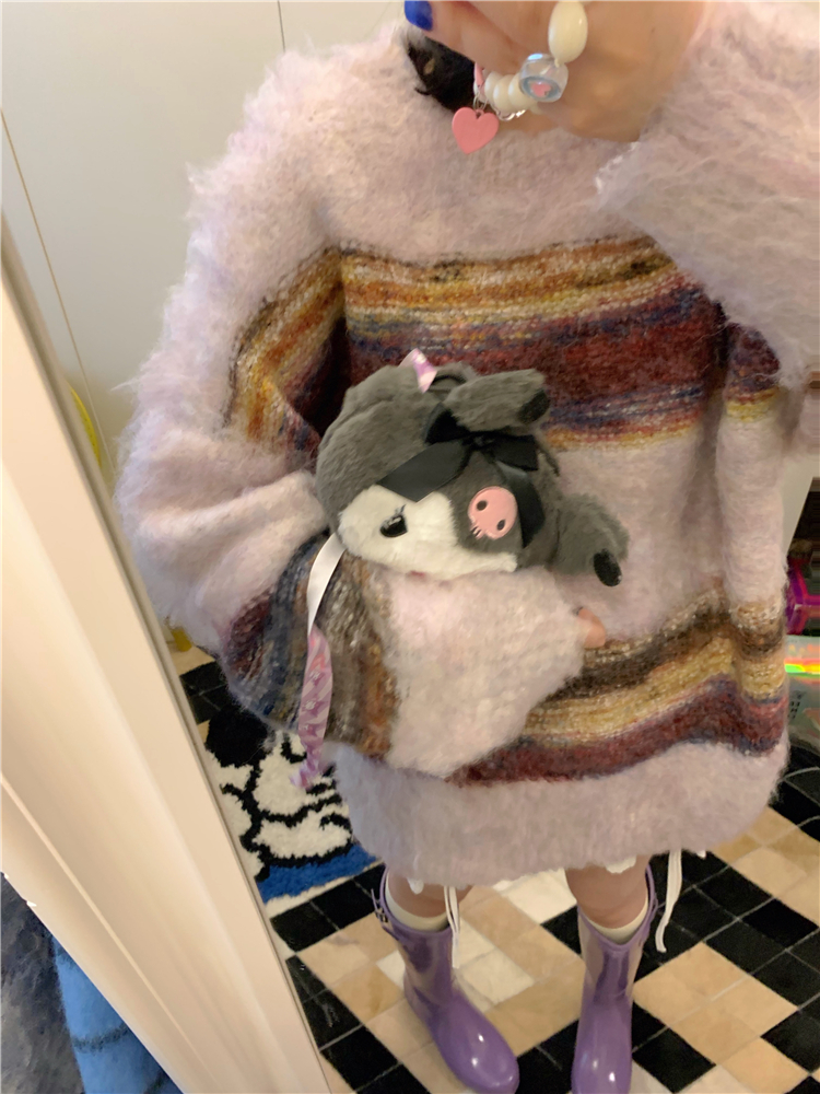【1110上新】灰原哀的灰 溫柔暈染馬海毛圓領寬鬆韓休閒套頭毛衣
