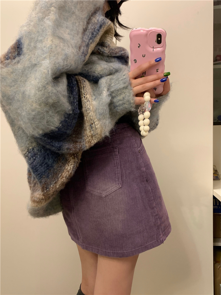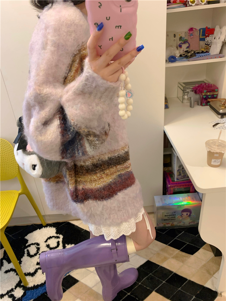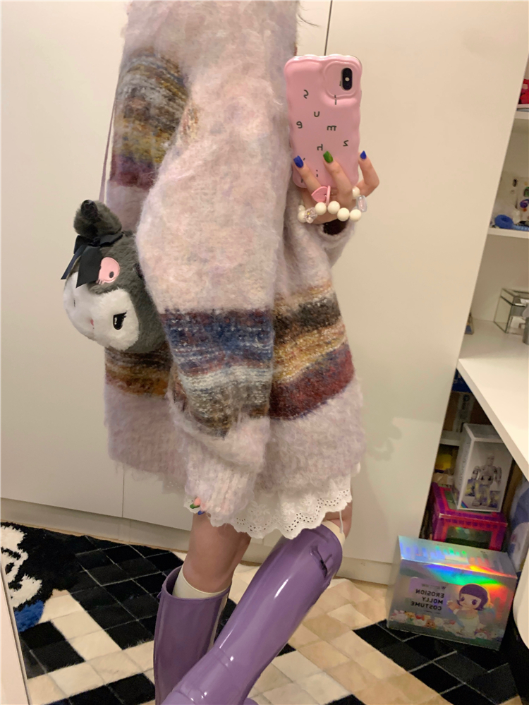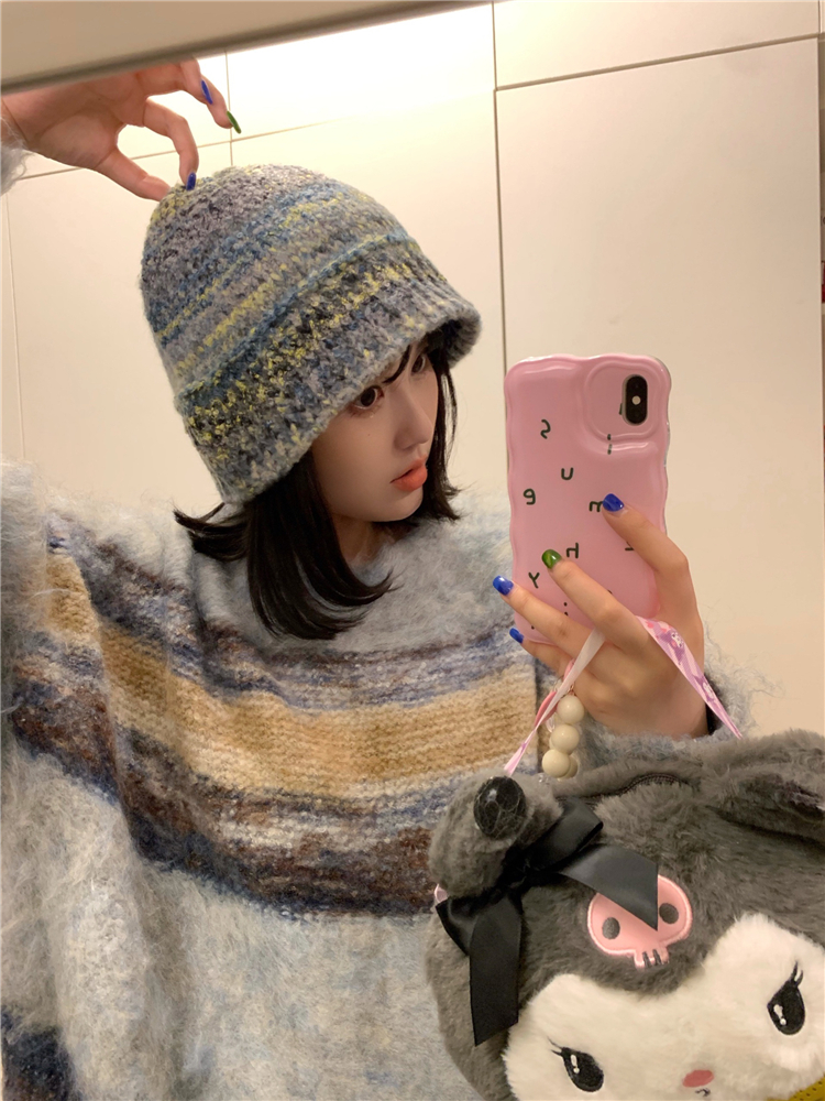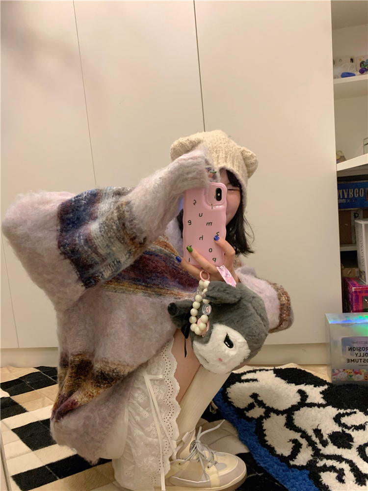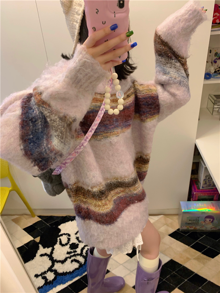 【1110上新】灰原哀的灰 溫柔暈染馬海毛圓領寬鬆韓休閒套頭毛衣