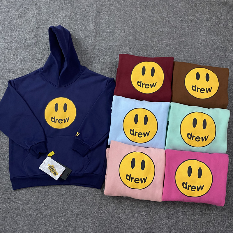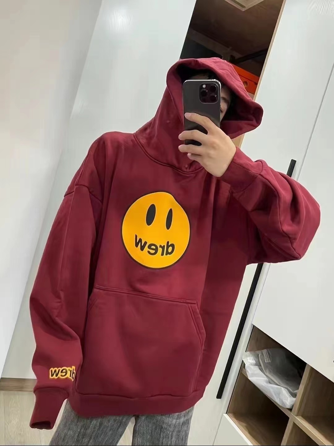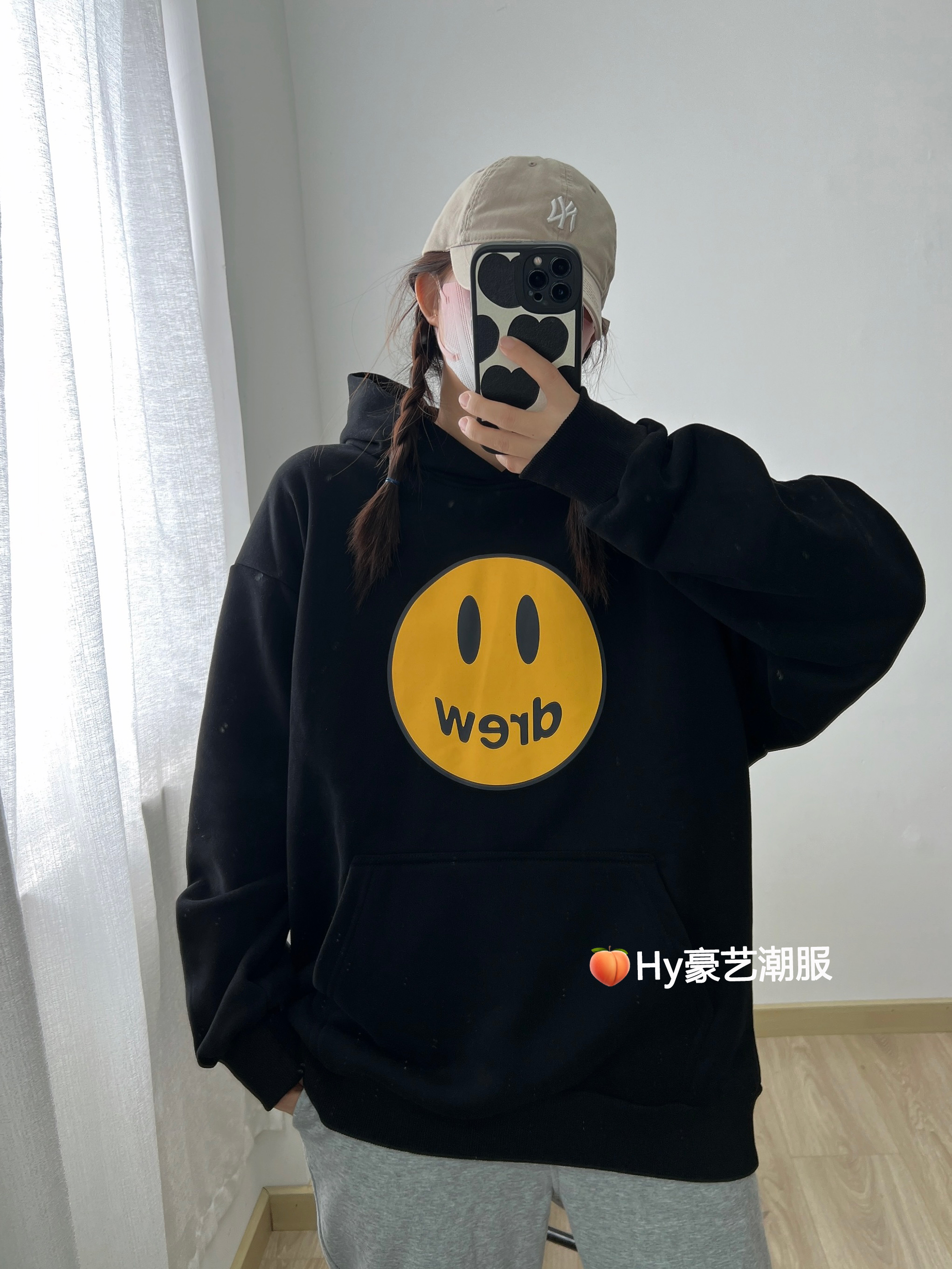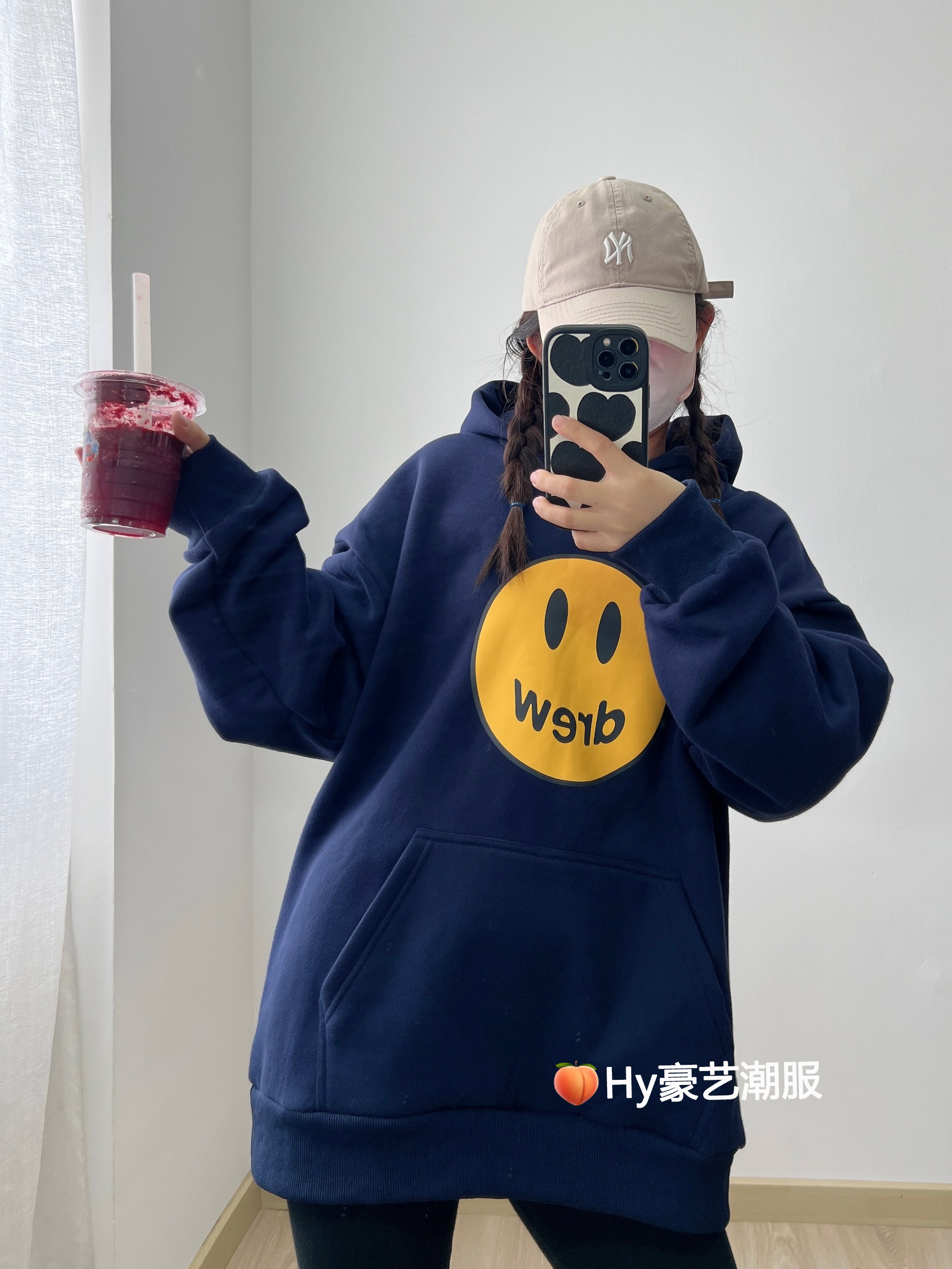 drew笑臉連帽運動衫女2023秋冬美式潮牌高街寬鬆加絨情侶連帽衫外套