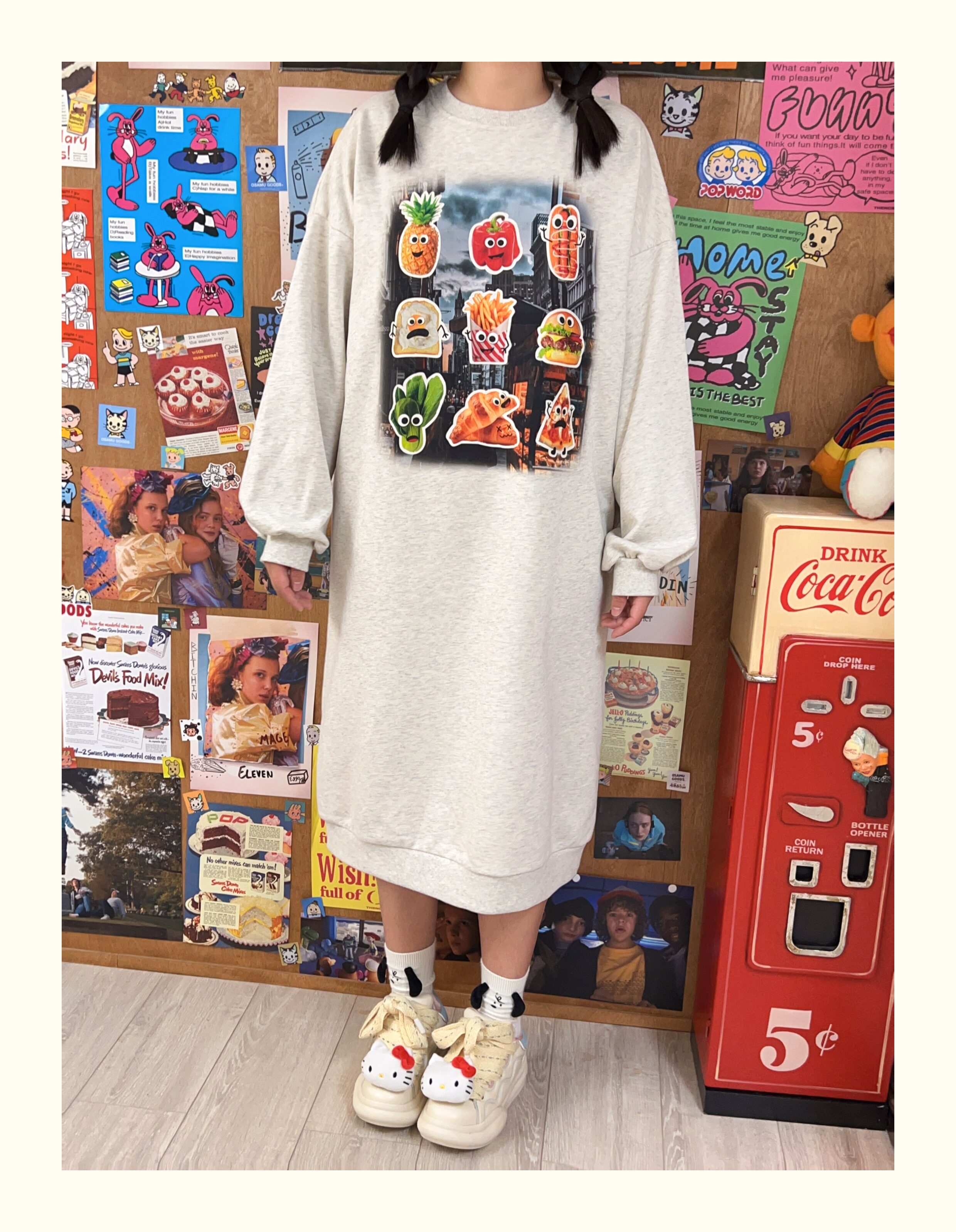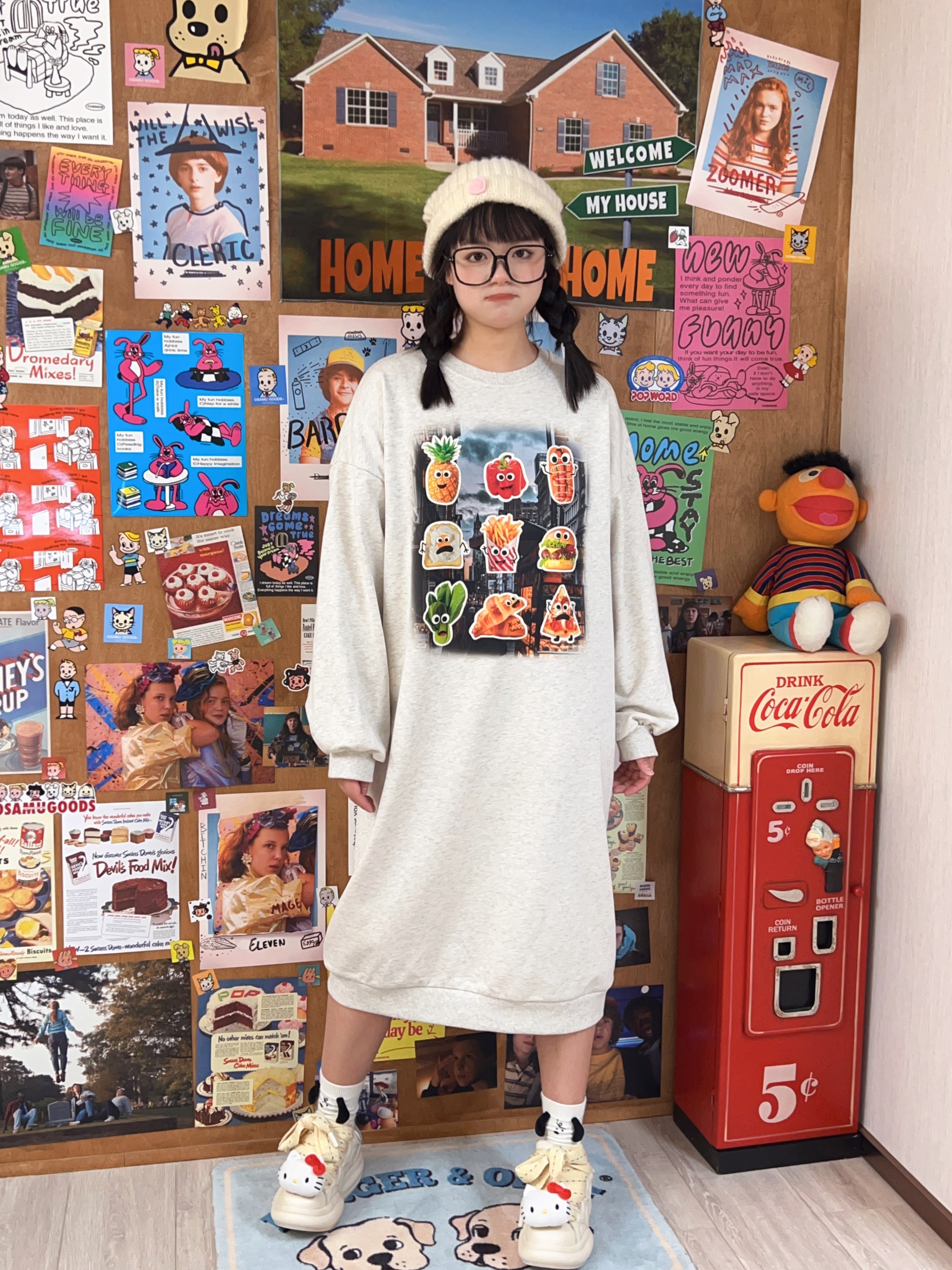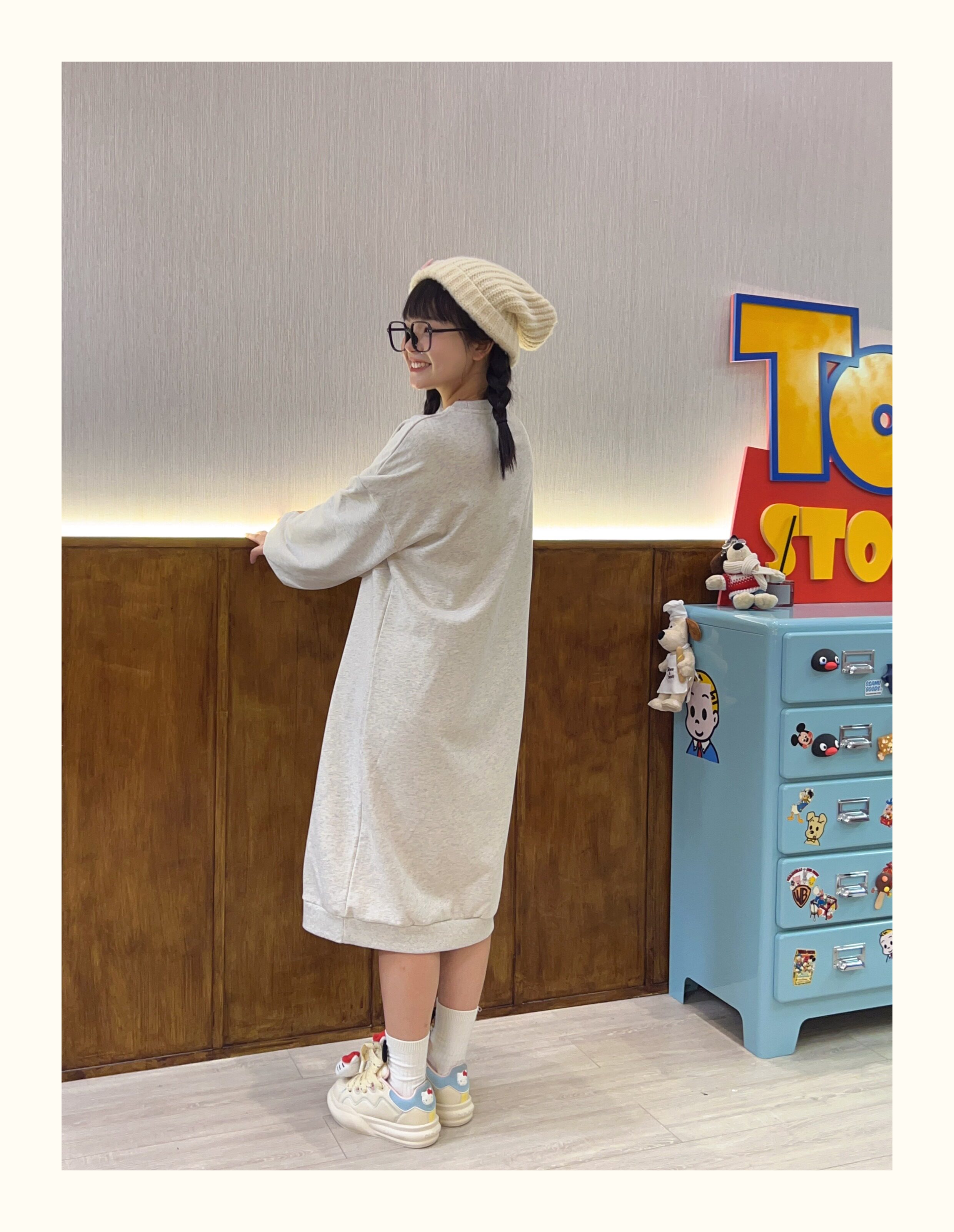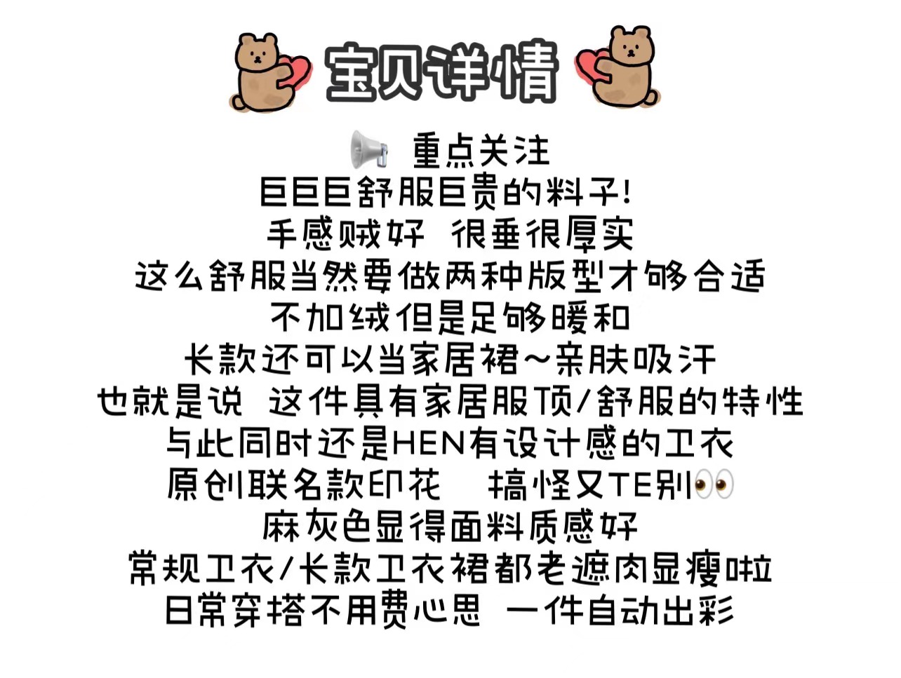Robootoo花灰色原創童趣美式全棉印花套頭長版內搭衛衣裙2023冬女