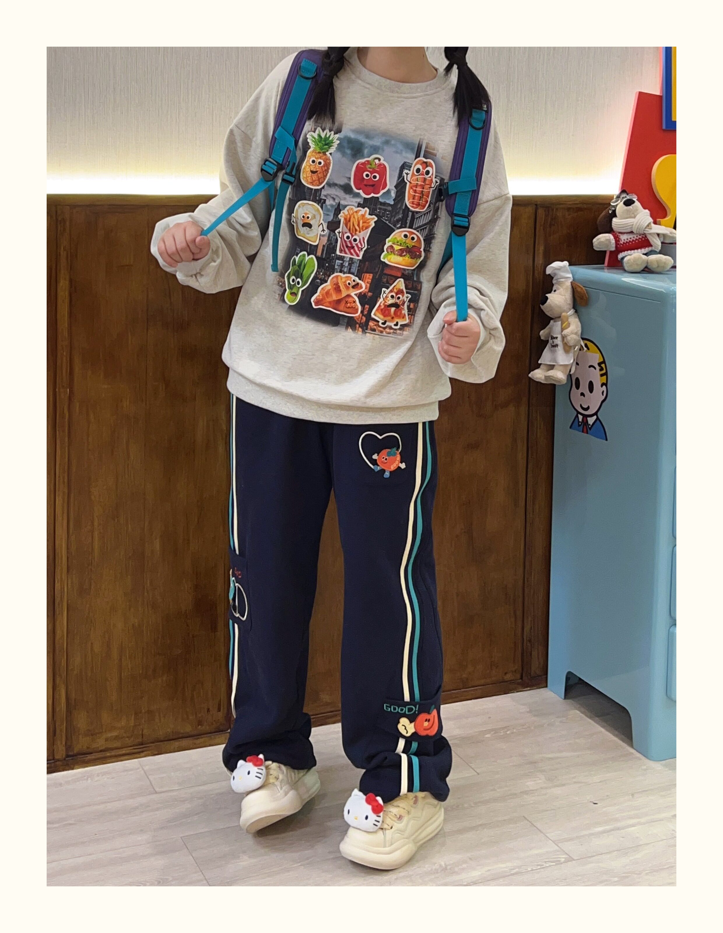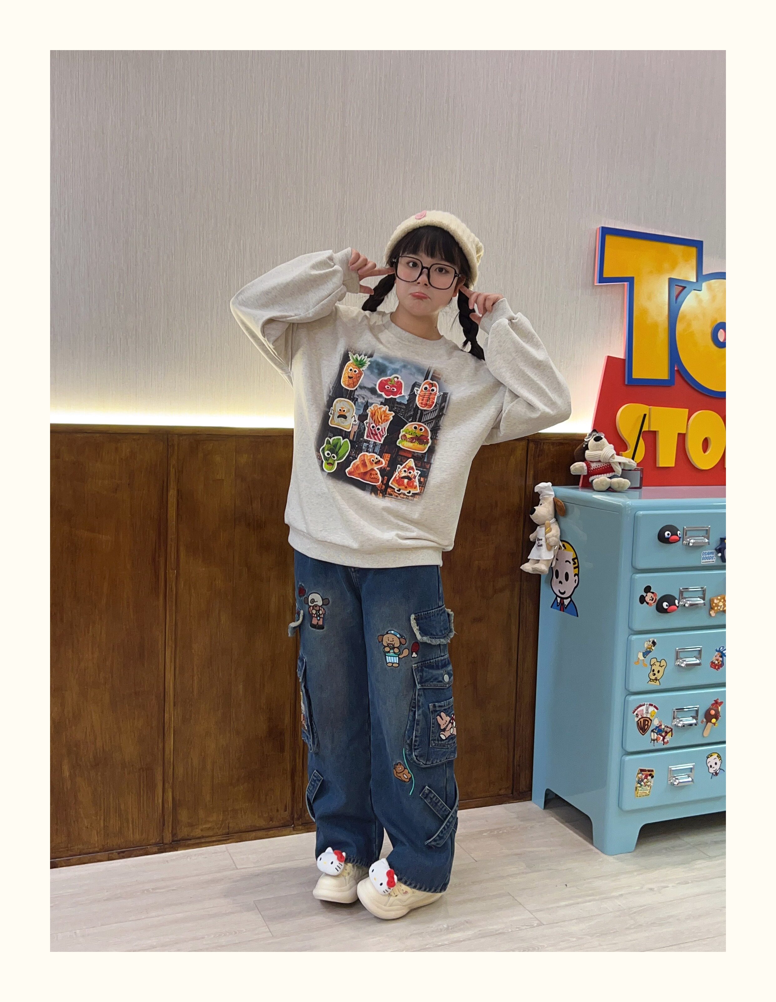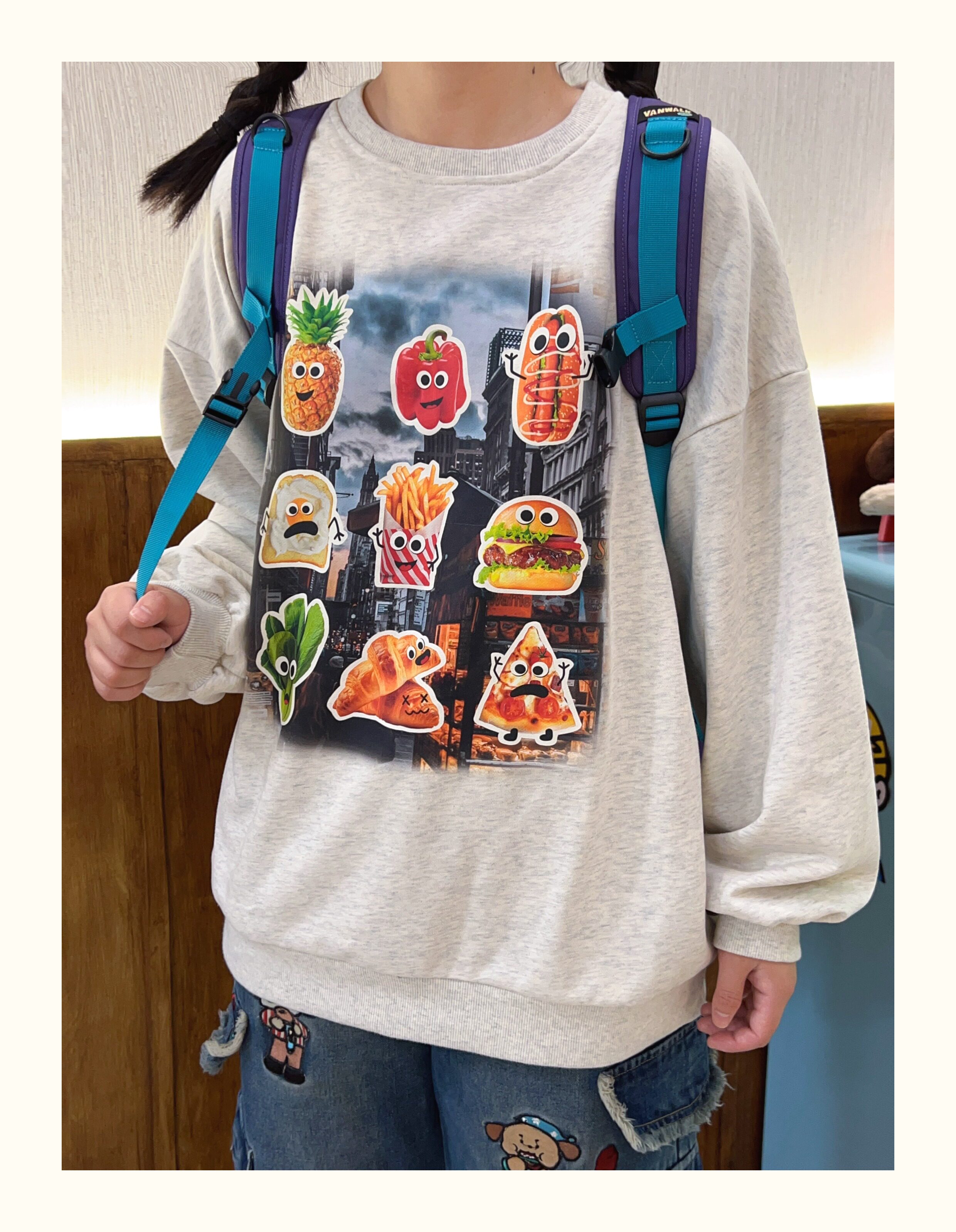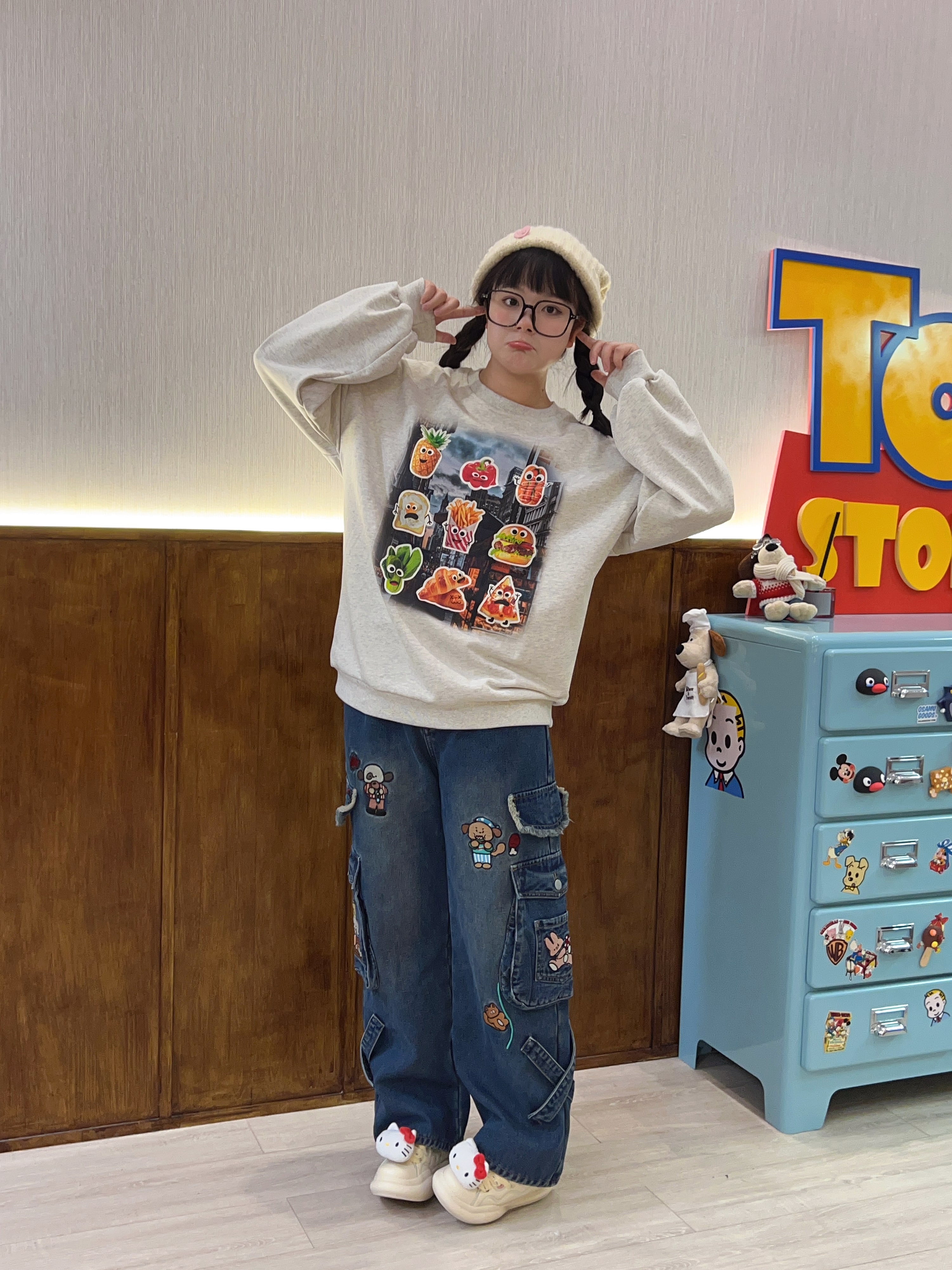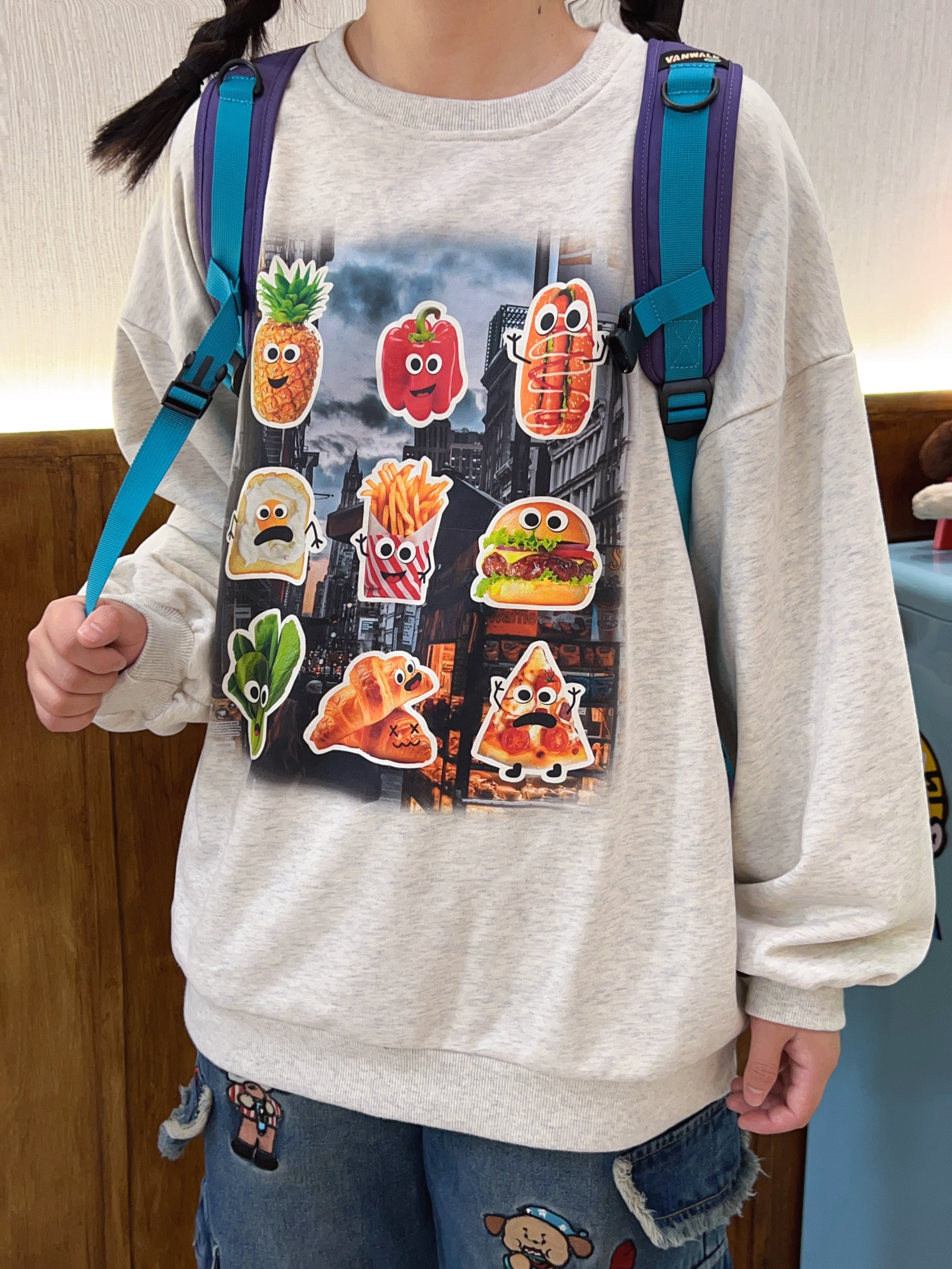 Robootoo花灰色原創童趣美式全棉印花套頭長版內搭衛衣裙2023冬女