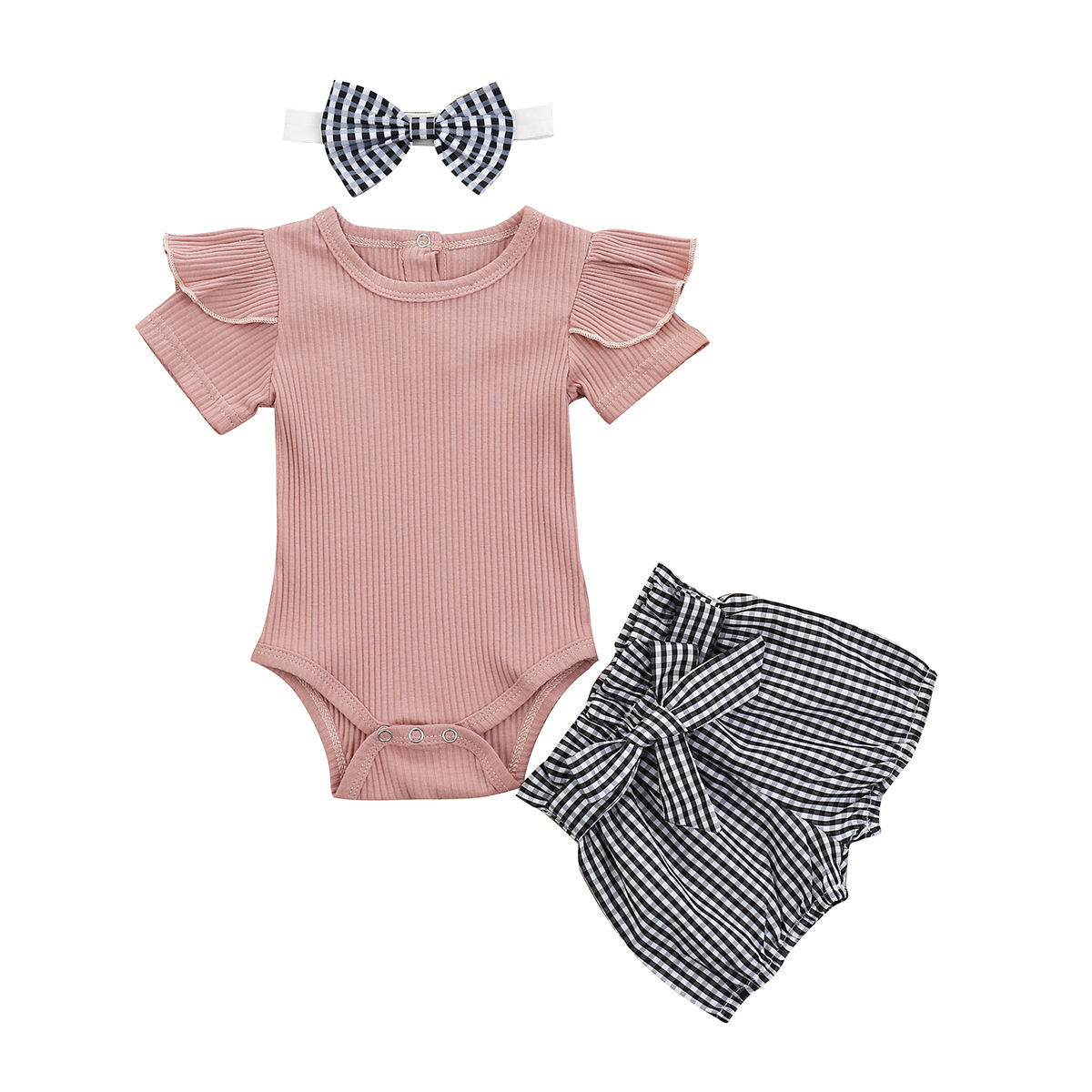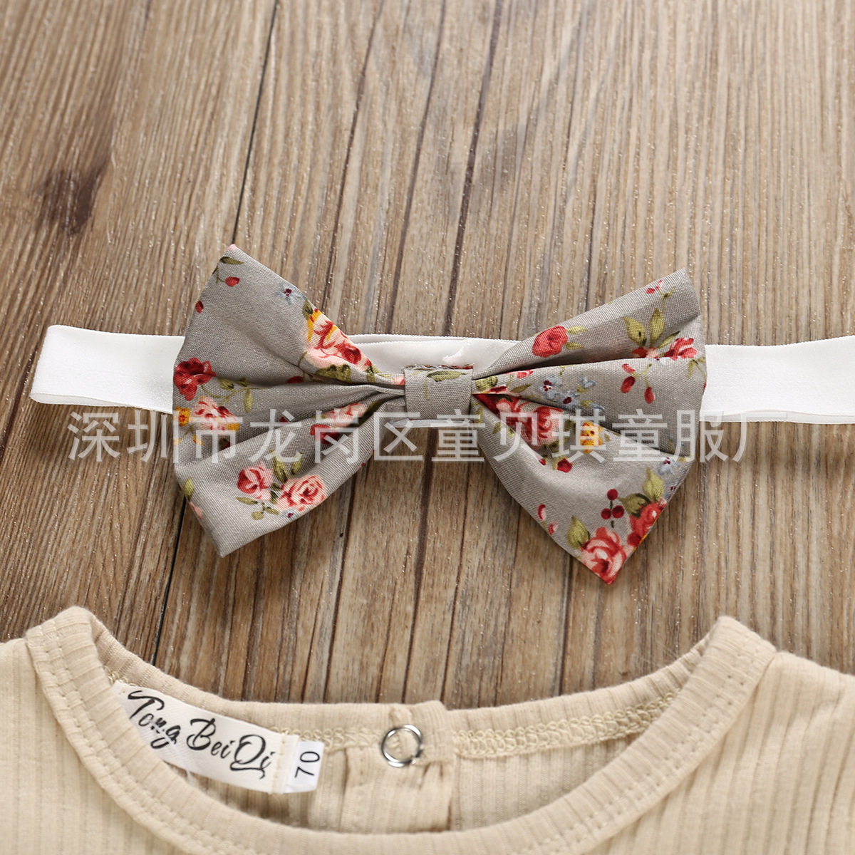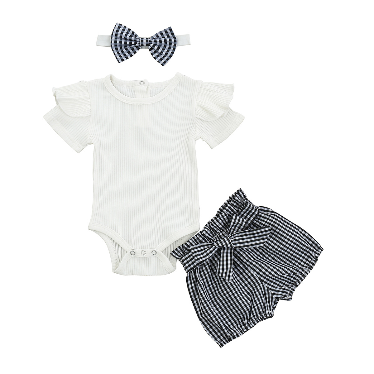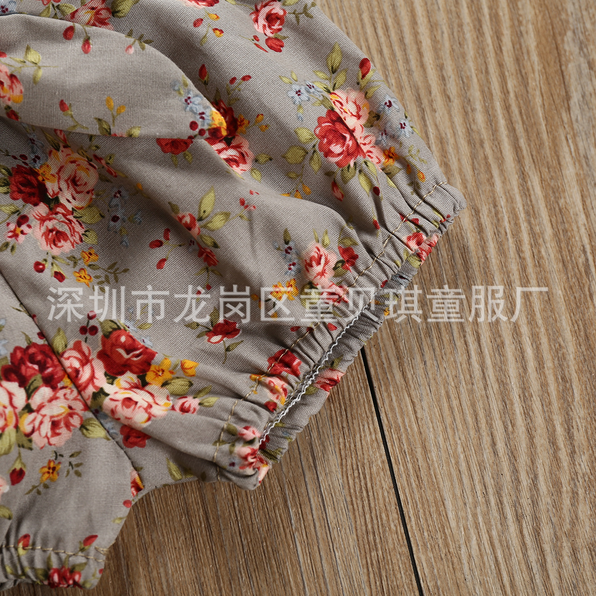 跨境2021夏秋新款棉女宝宝套装短袖哈衣爬服碎花短裤头饰儿童套装