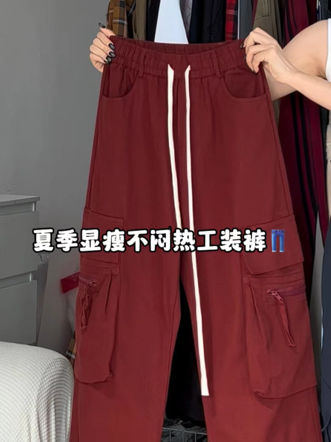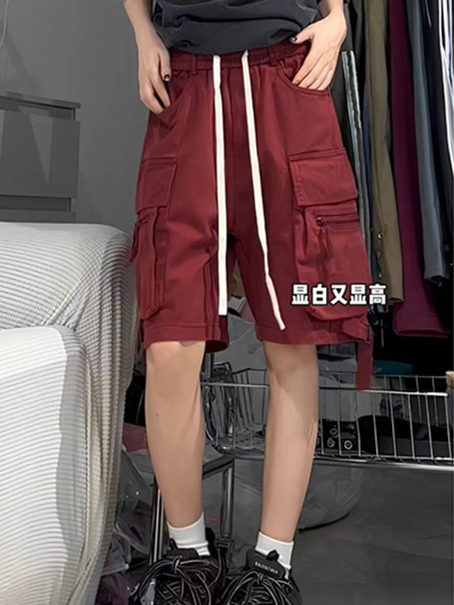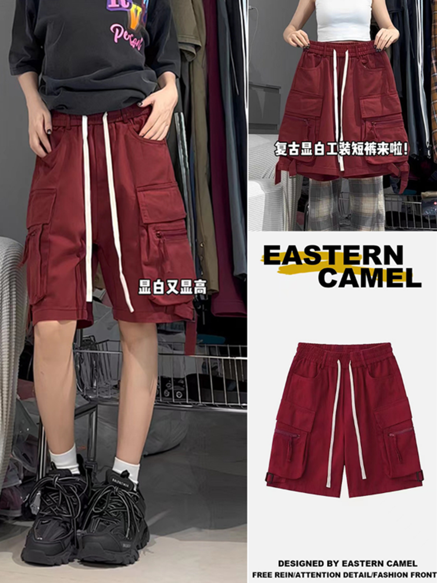 美式高街hiphop紅色工裝短褲男女夏季街舞潮牌運動休閒五分褲子