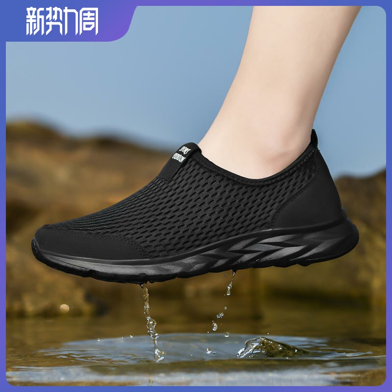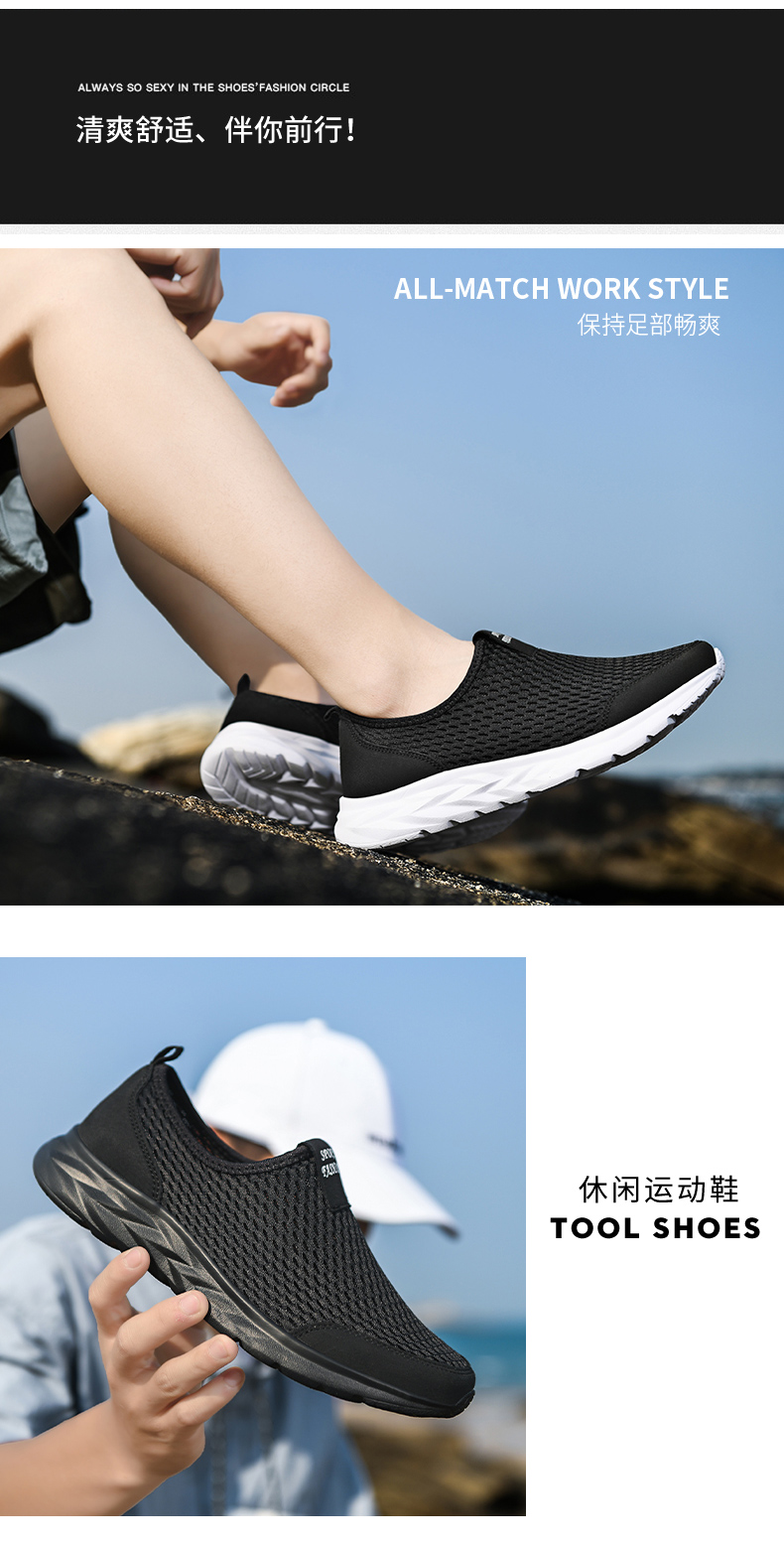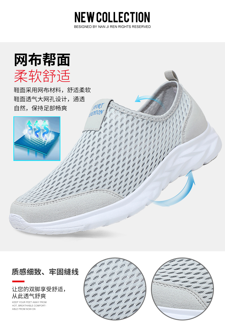 男鞋夏季透氣無鞋帶網鞋男款一腳蹬懶人46運動網面47布鞋大尺碼48碼