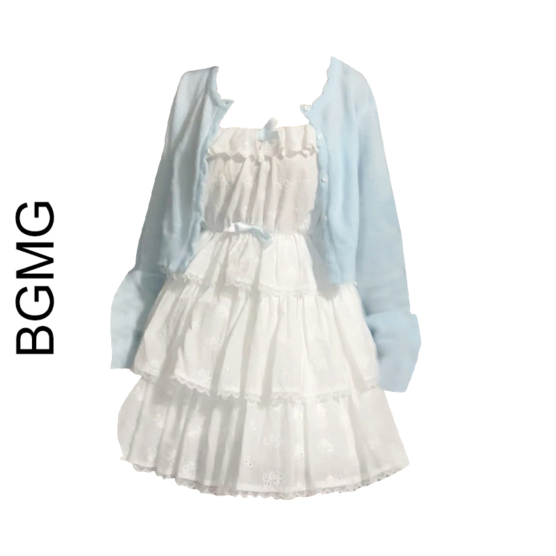 夏季新款少女的祈禱芭蕾風蛋糕裙短款白色吊帶公主裙防嗮開衫套裝