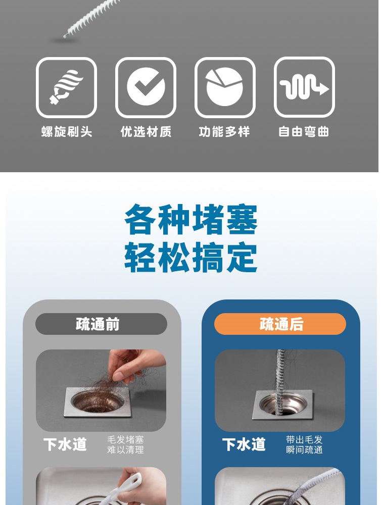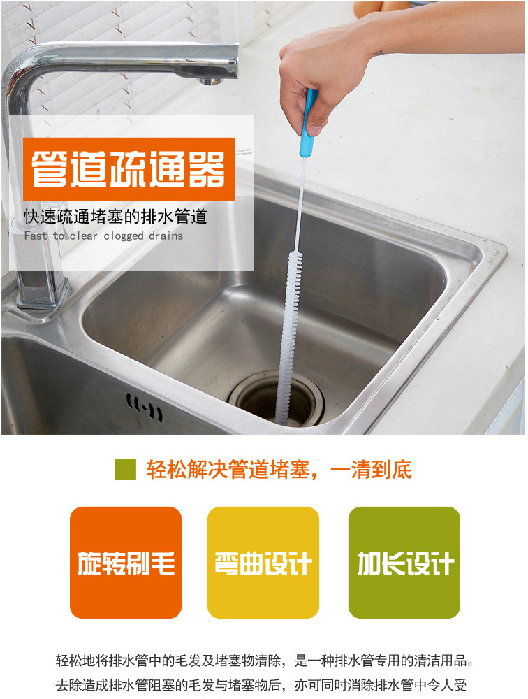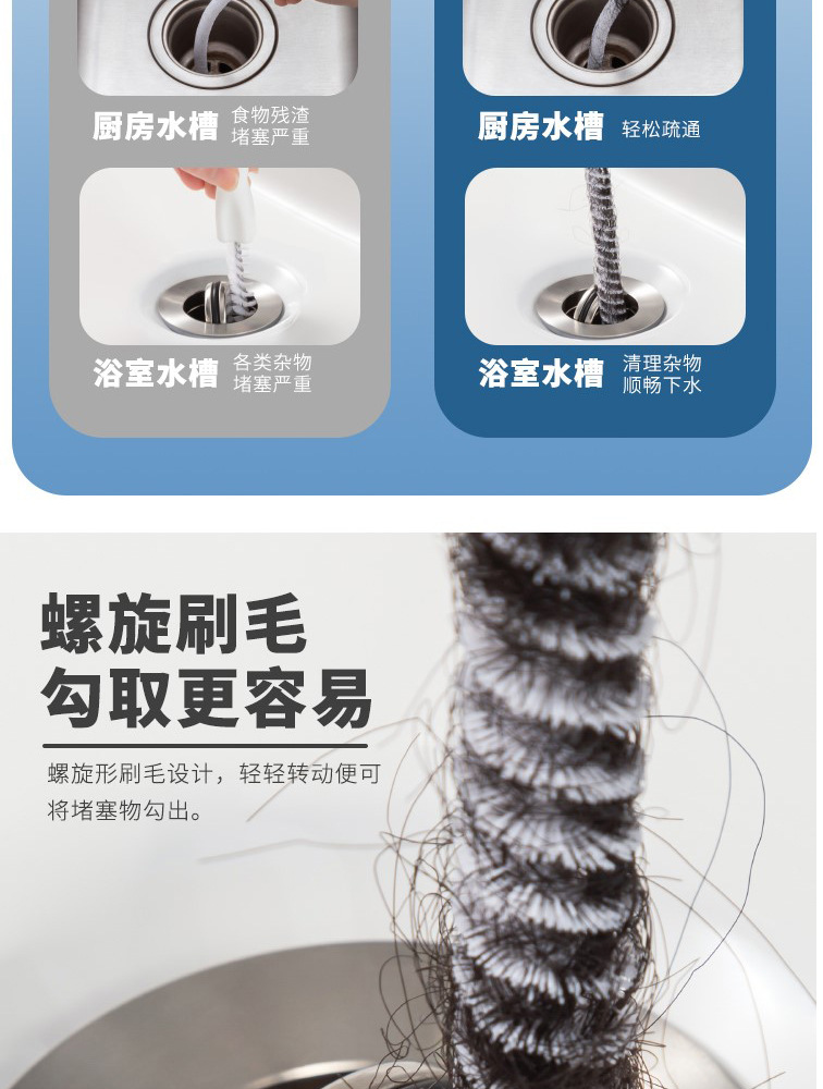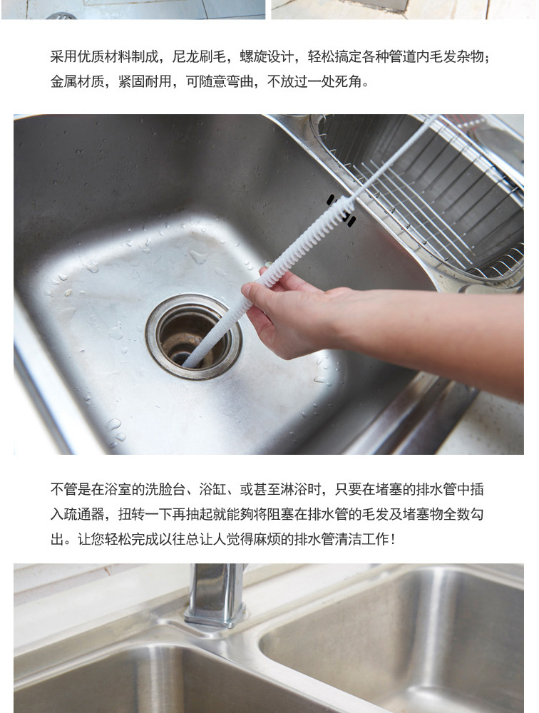 下水道疏通器通用卫生间水池毛发头发疏通刷厨房水槽管道清理器