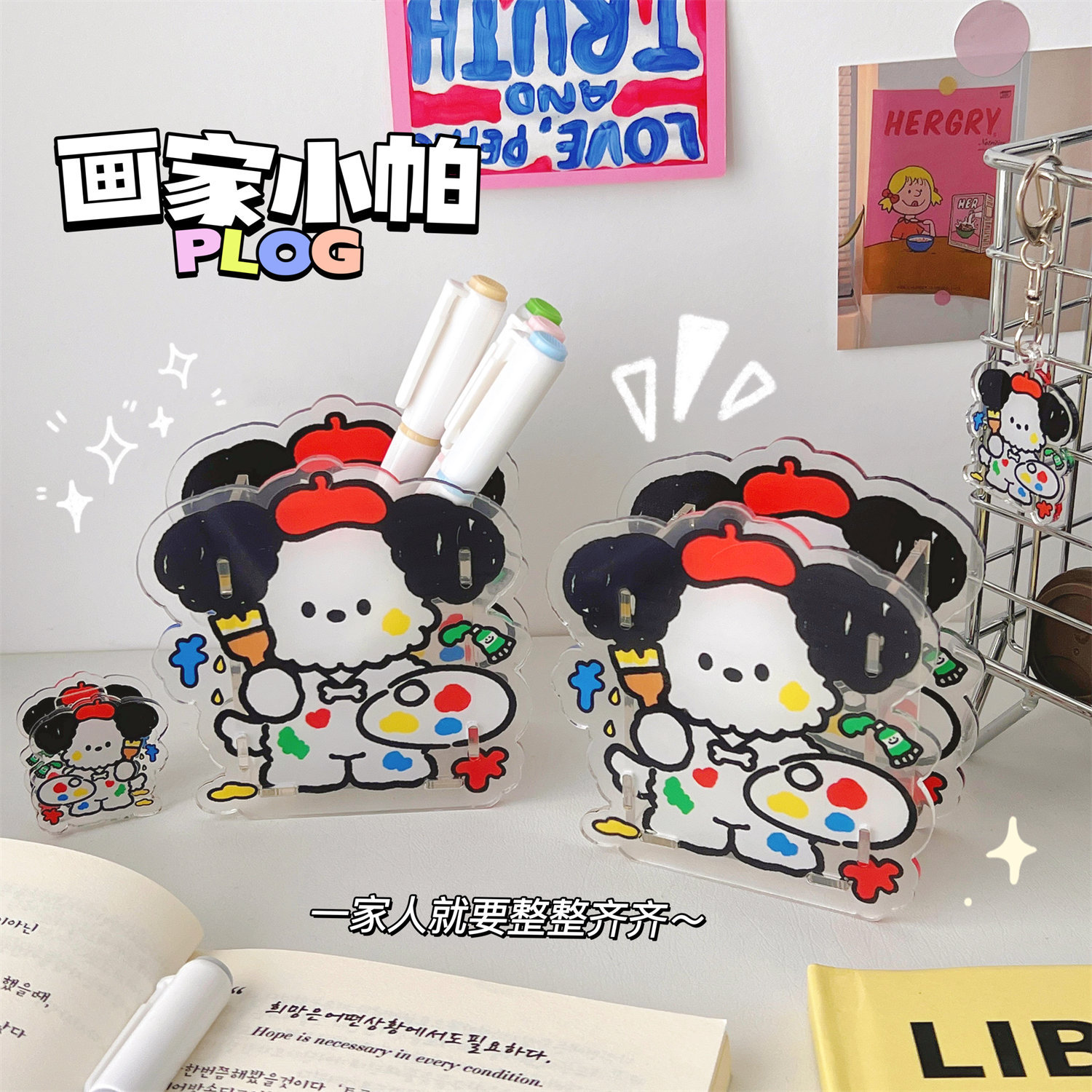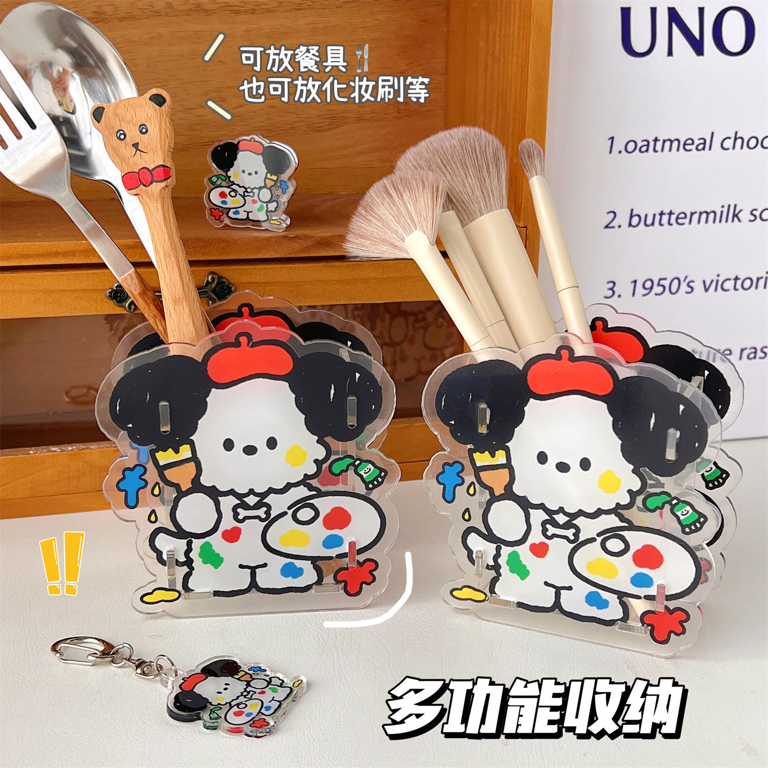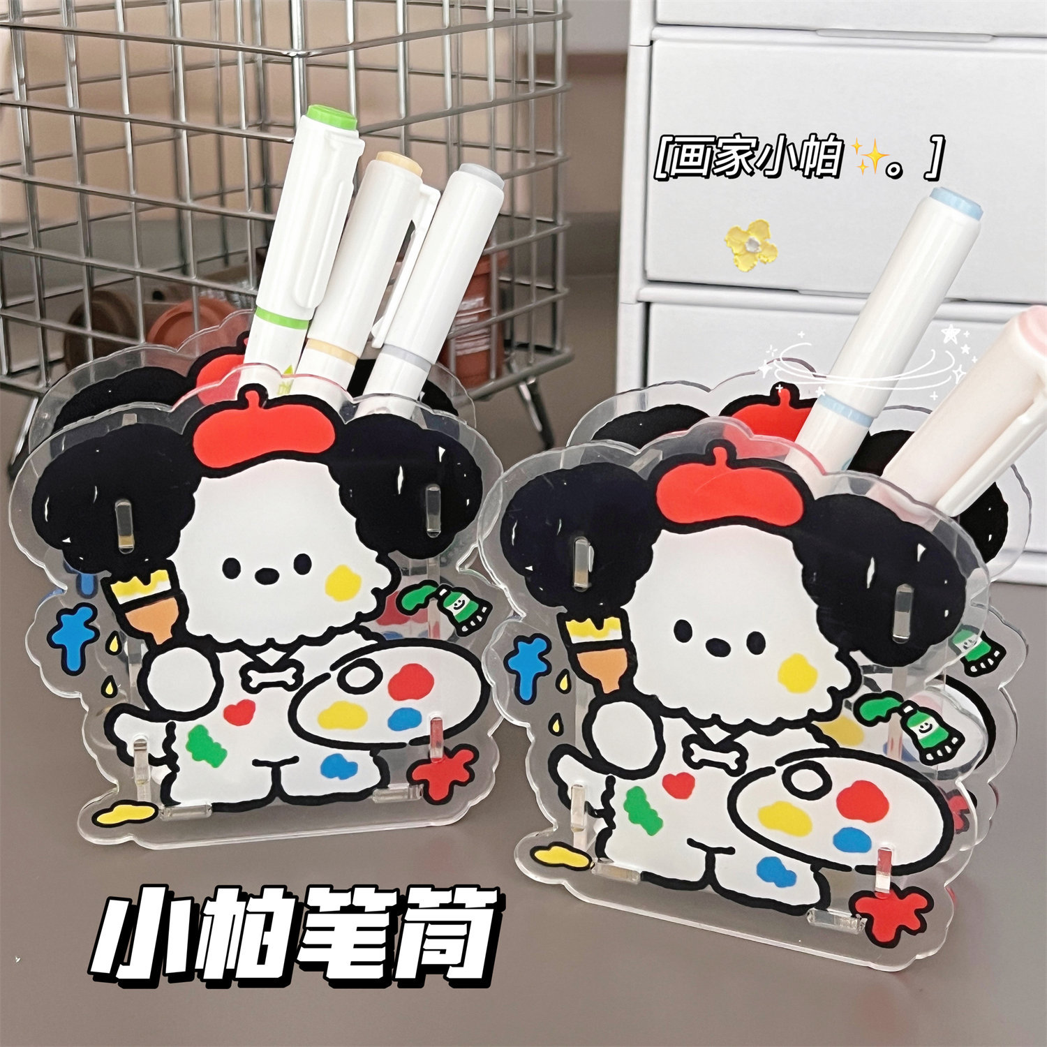 帕帕狗亚克力透明笔筒大容量PP夹钥匙扣学生宿舍桌面文具收纳盒