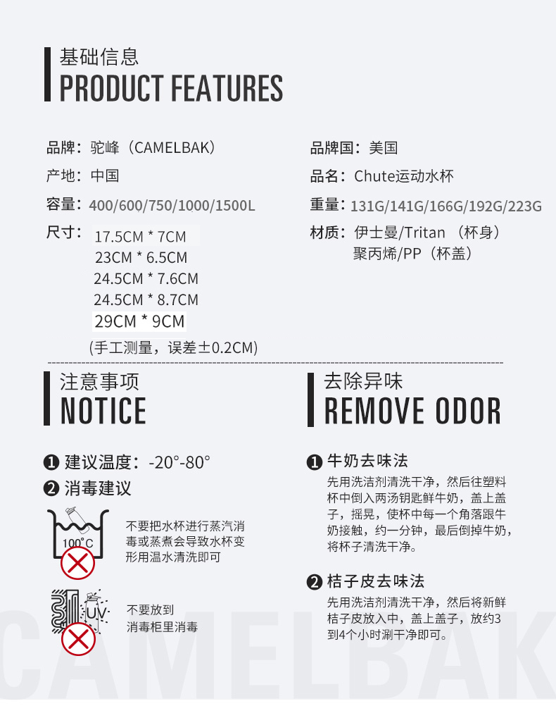 新款5折美國Camelbak駝峯戶外600ML手提1L運動水瓶1.5L水壺Chute