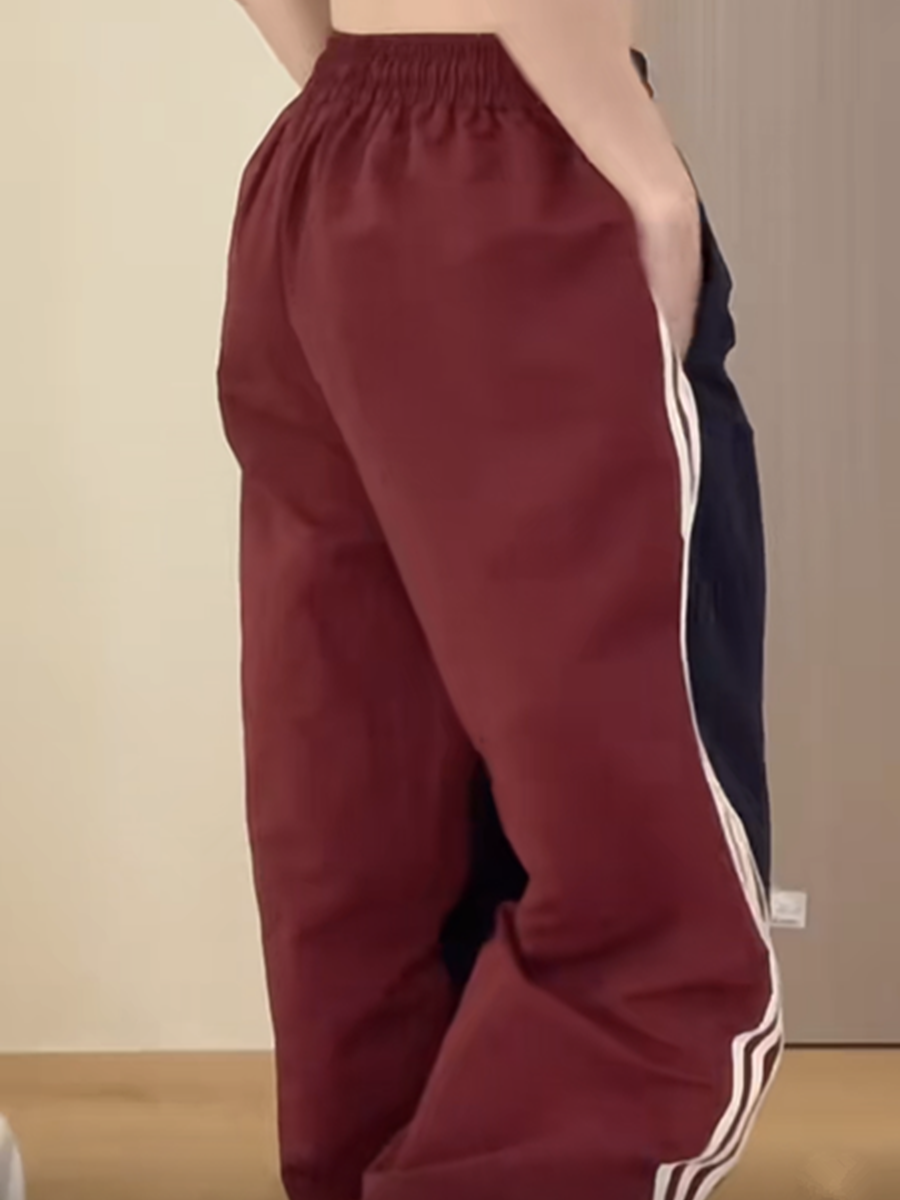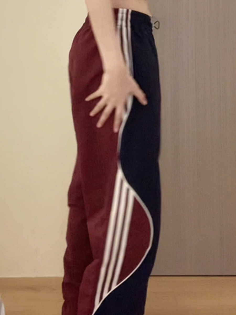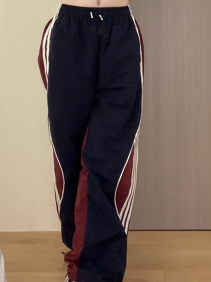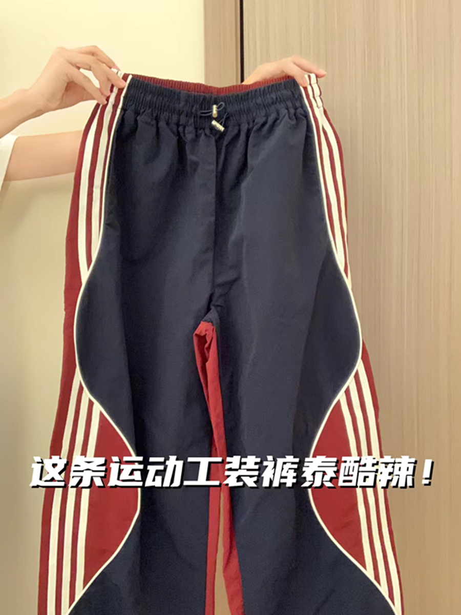 美式hiphop束腳速乾褲爵士舞三條槓拼色運動休閒抽繩工裝褲女薄款