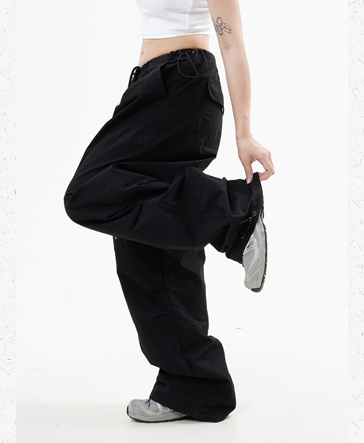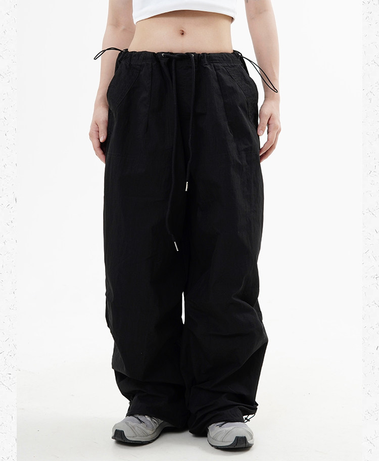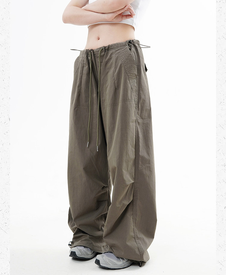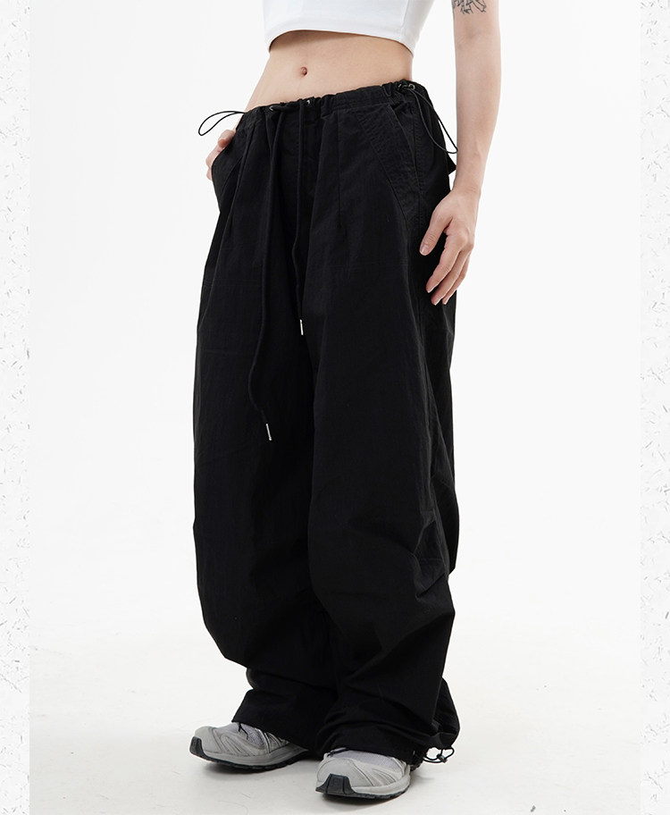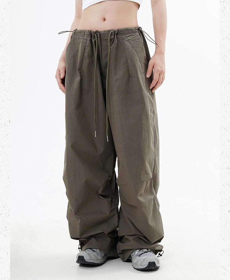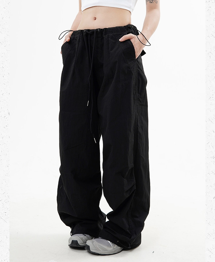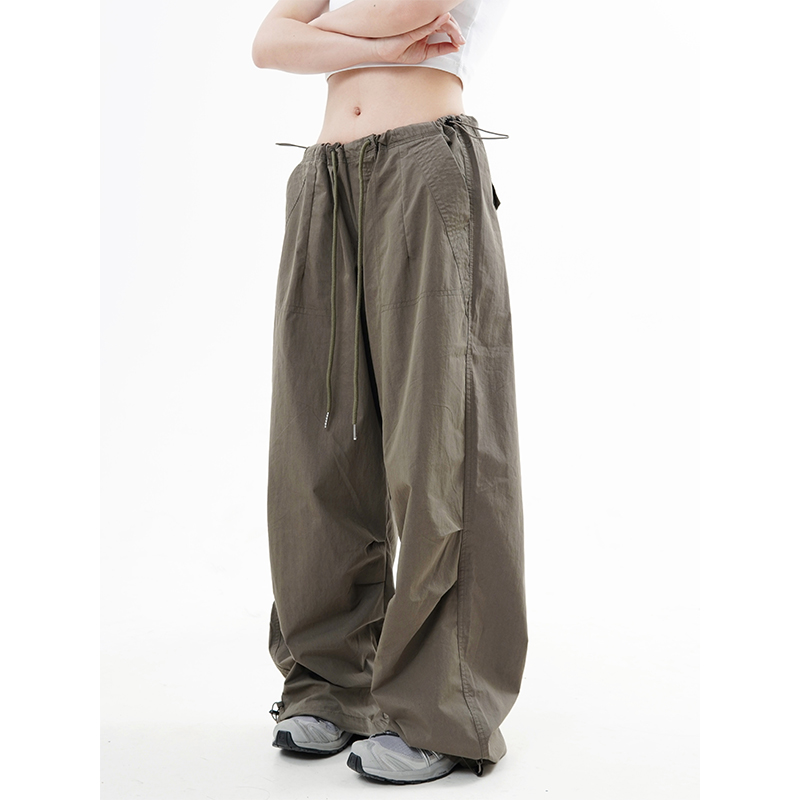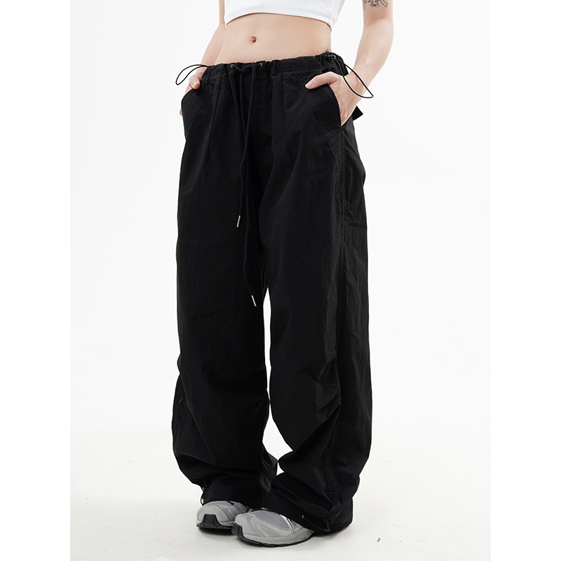 川川也 美式抽繩傘兵褲工裝褲男女辣妹闊腿高腰休閒褲子復古寬鬆