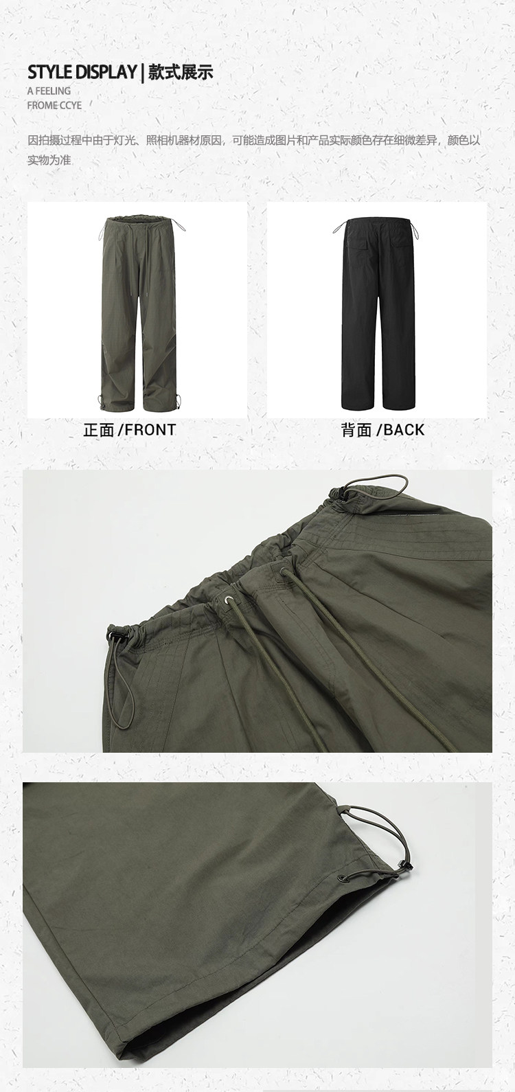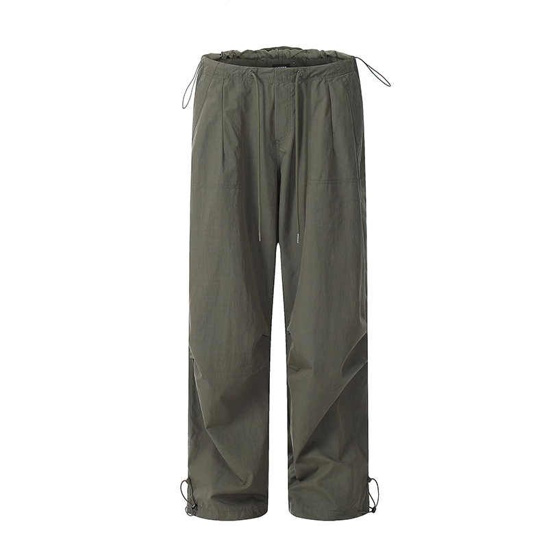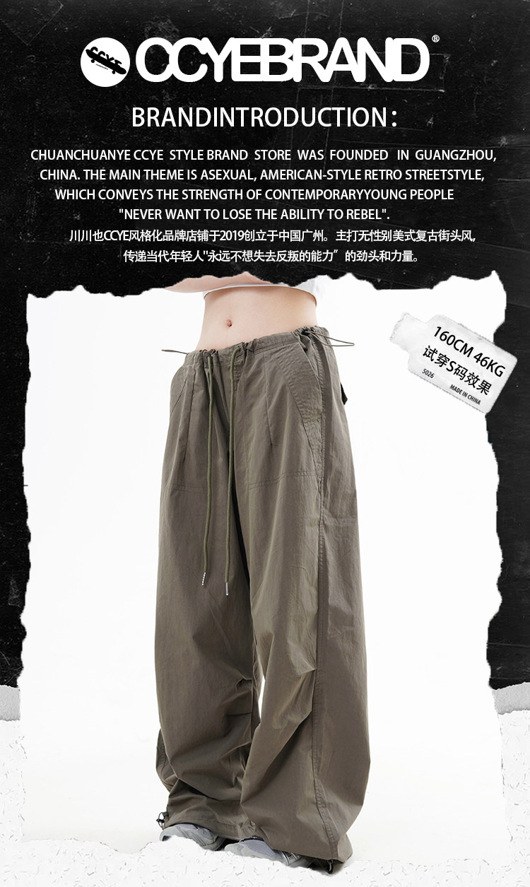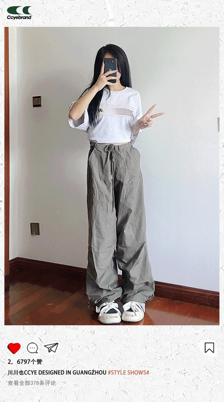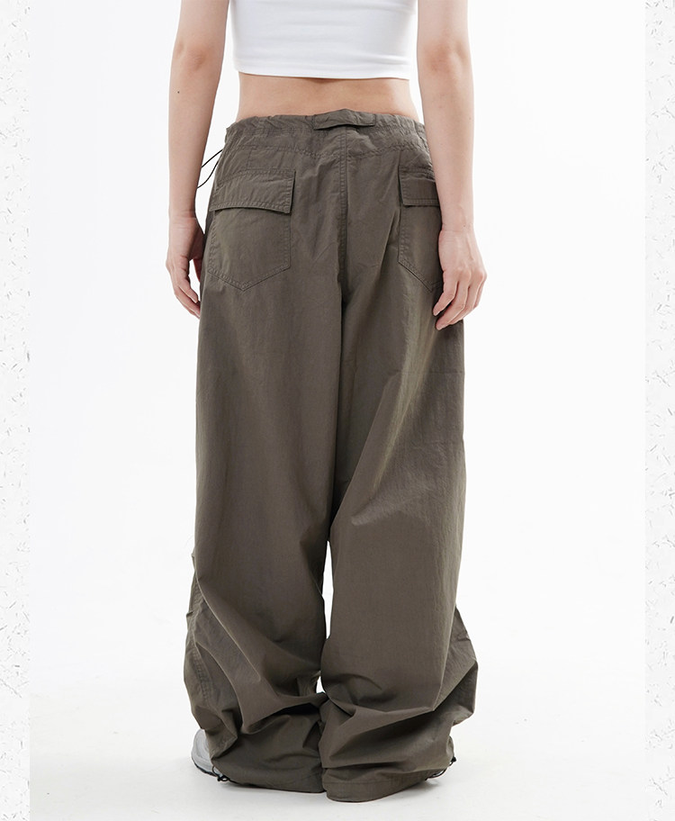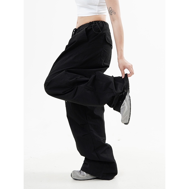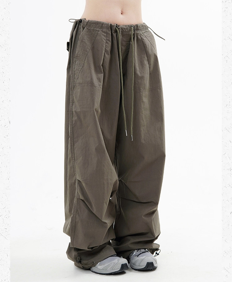 川川也 美式抽繩傘兵褲工裝褲男女辣妹闊腿高腰休閒褲子復古寬鬆