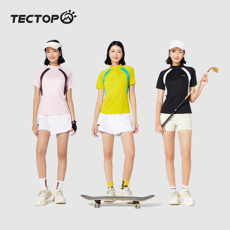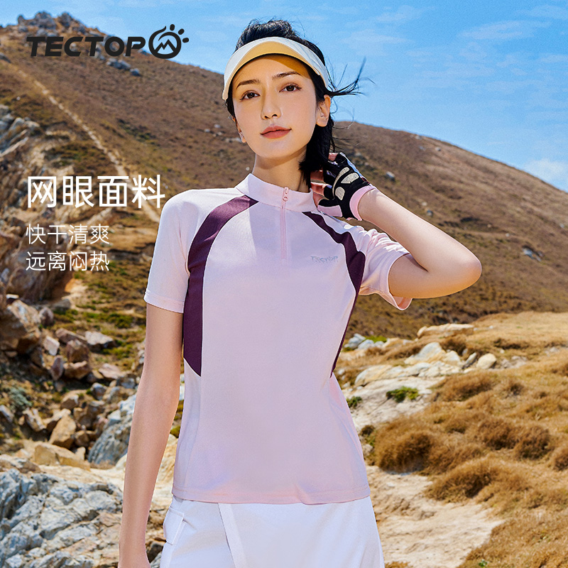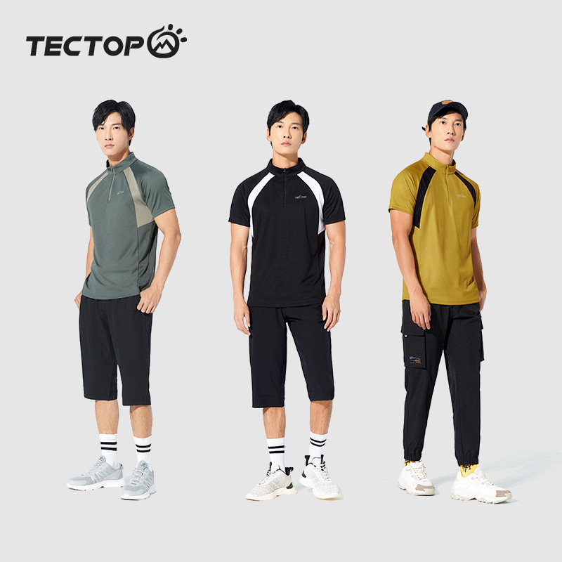 探拓速乾短袖T恤運動上衣男透氣冰絲健身服女夏跑步吸汗修身立領