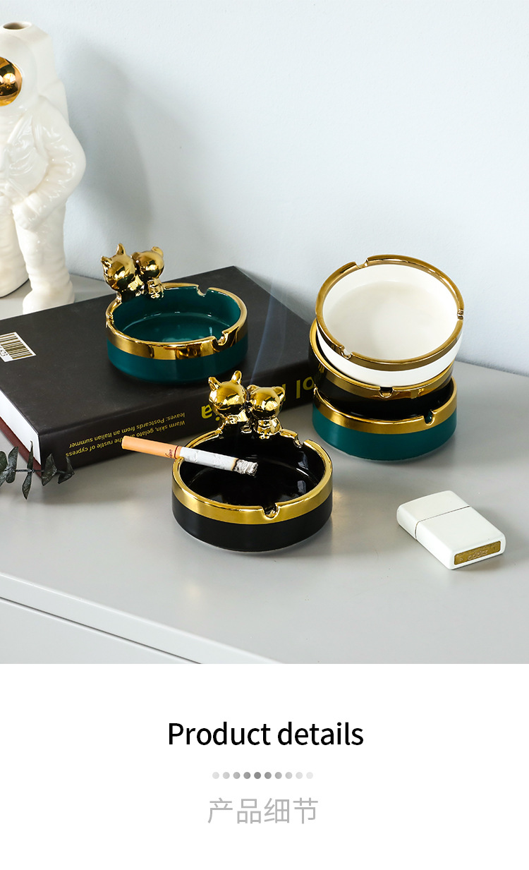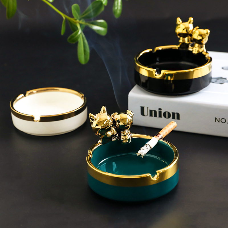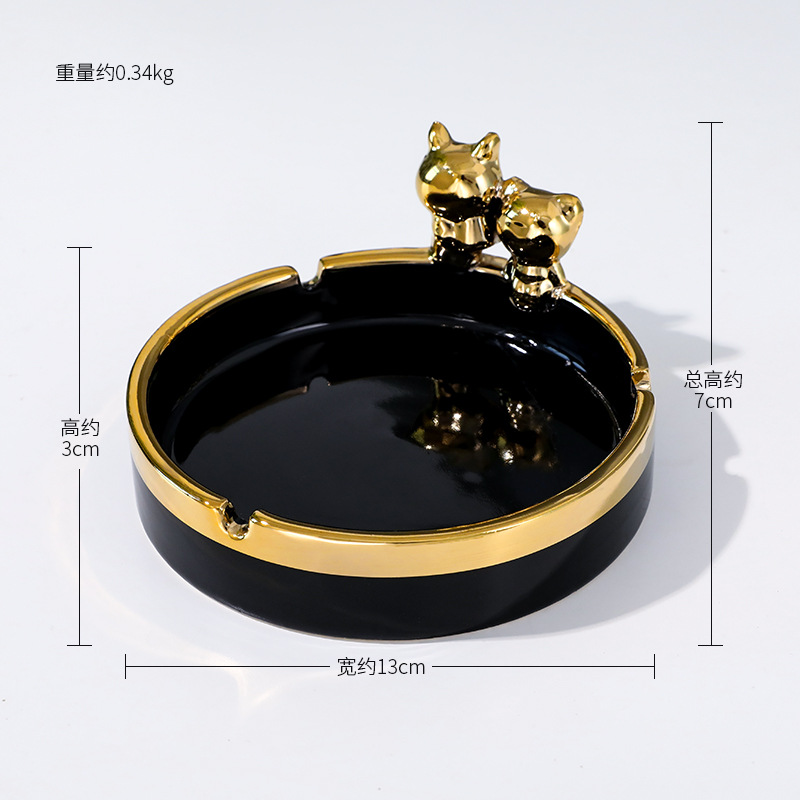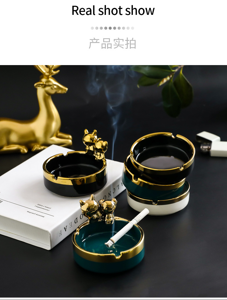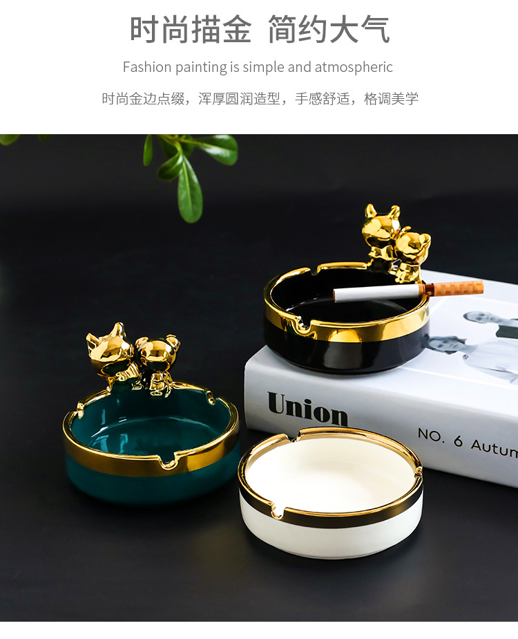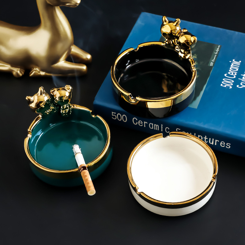 小熊烟灰缸创意时尚潮流家用北欧轻奢描金陶瓷烟灰缸摆件