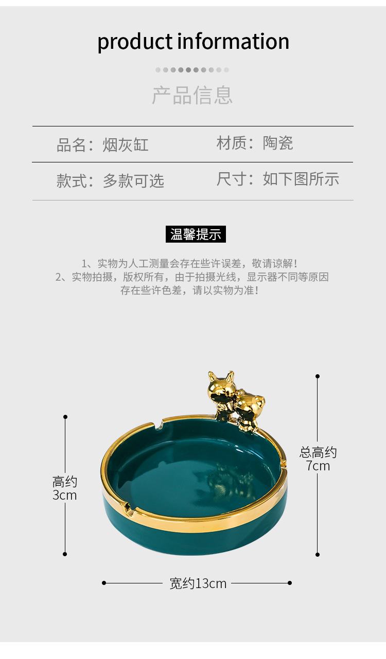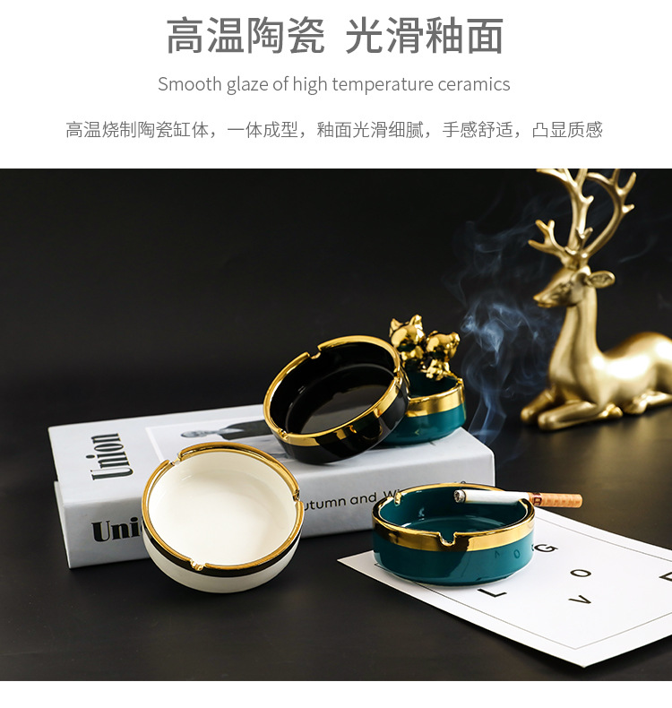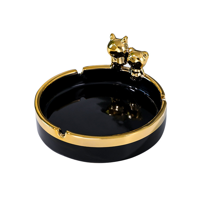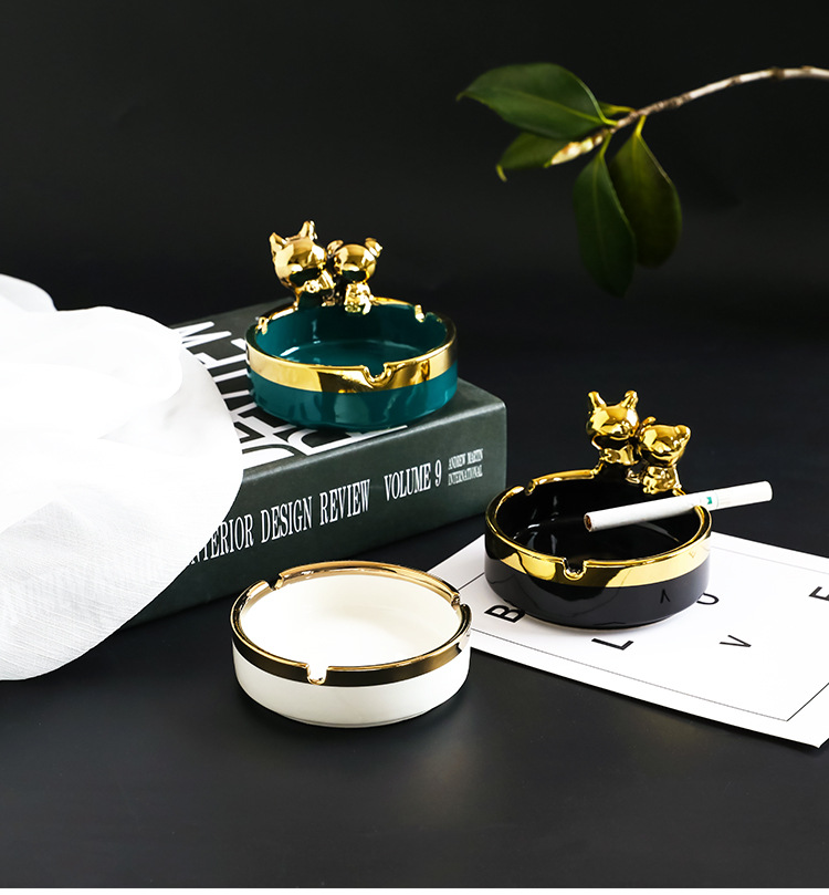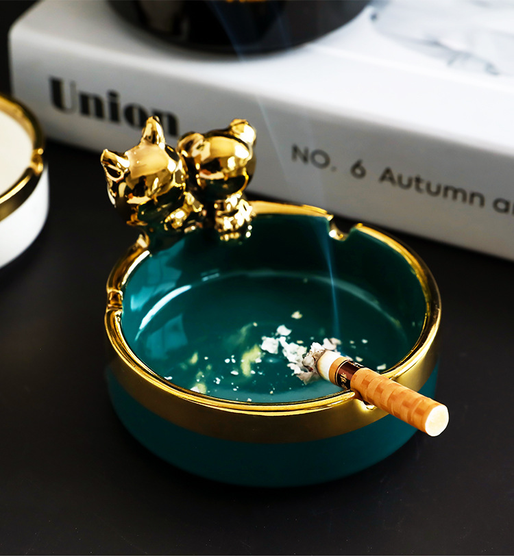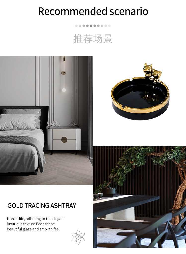 小熊烟灰缸创意时尚潮流家用北欧轻奢描金陶瓷烟灰缸摆件