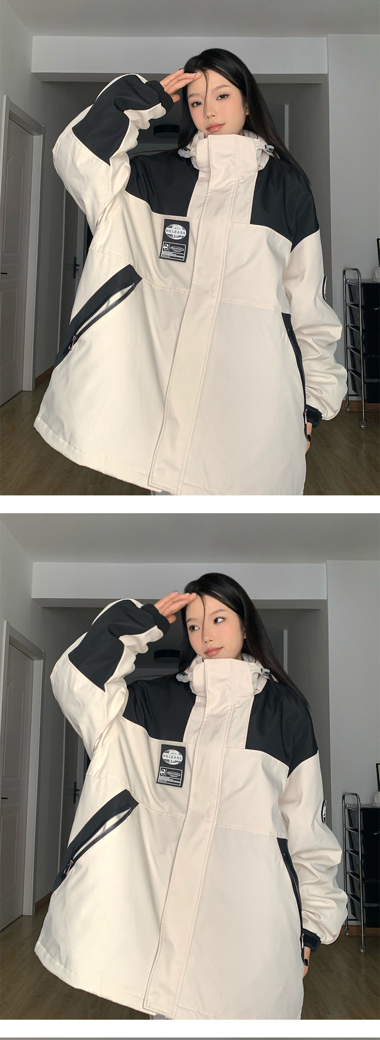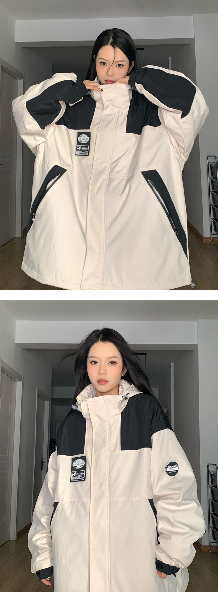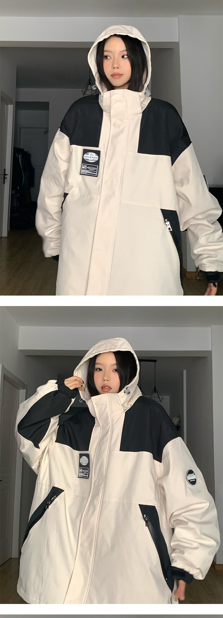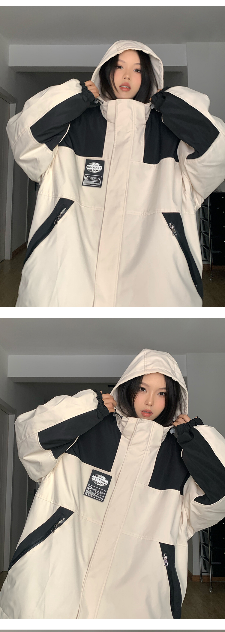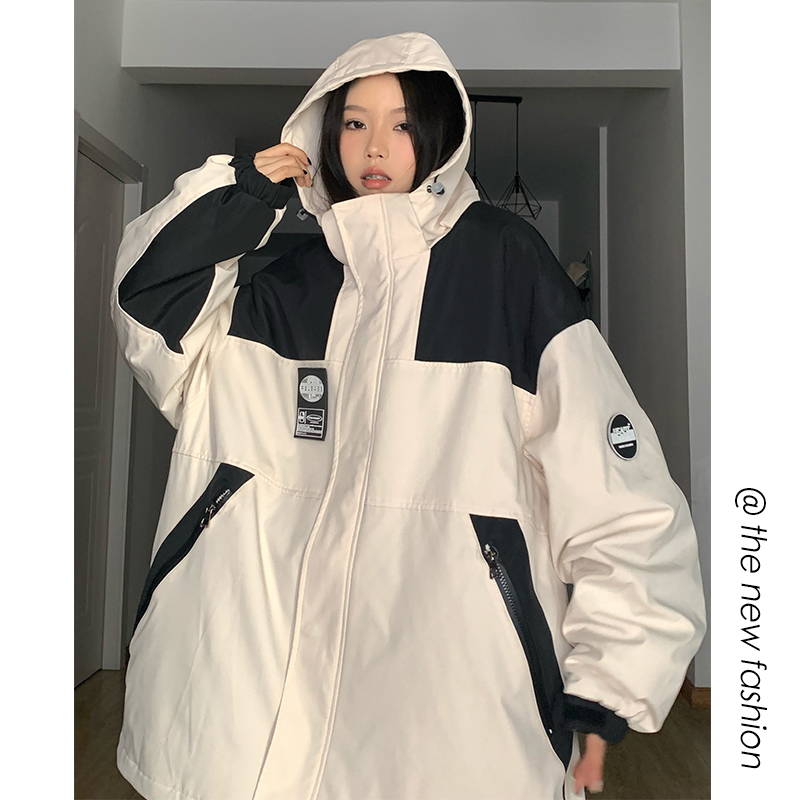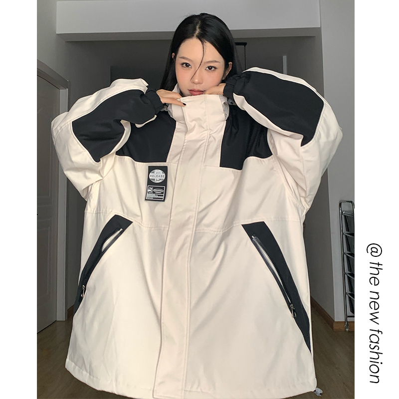 古著vintage衝鋒衣外套潮牌高級感撞色拼接登山服連帽夾克工裝風