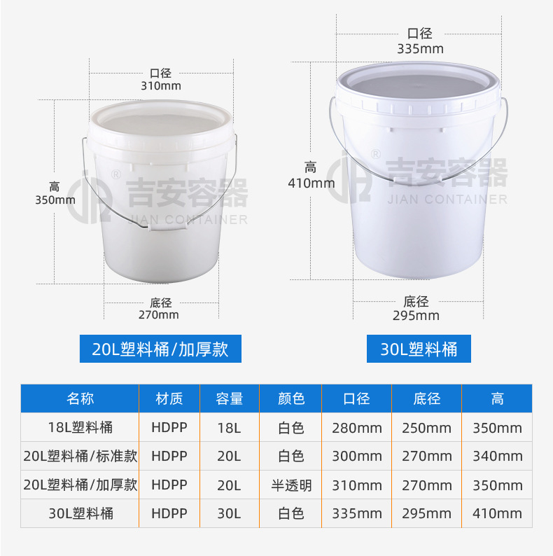 颜色 18L塑料桶,20L塑料桶/标准款,20L塑料桶/加厚款,30L塑料桶/铁提手,30L塑料桶/胶提手
