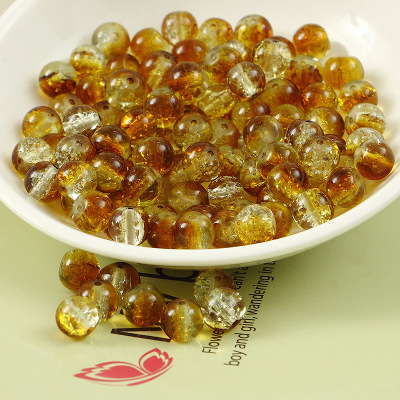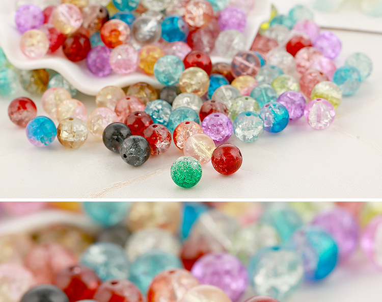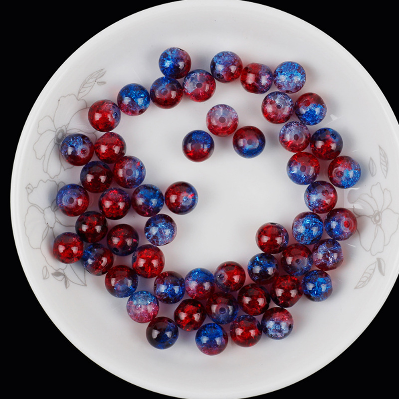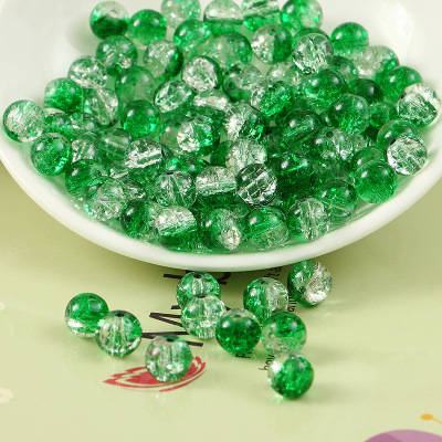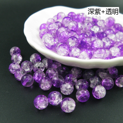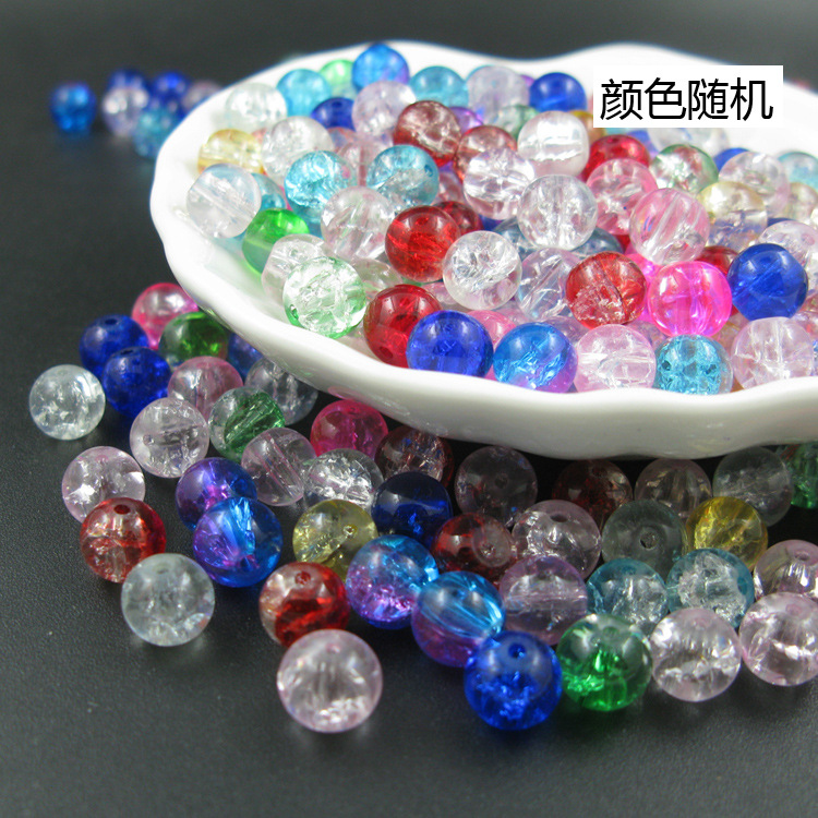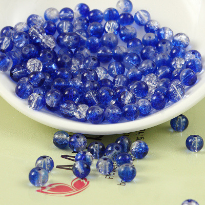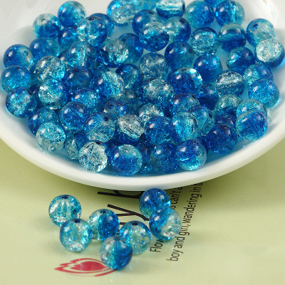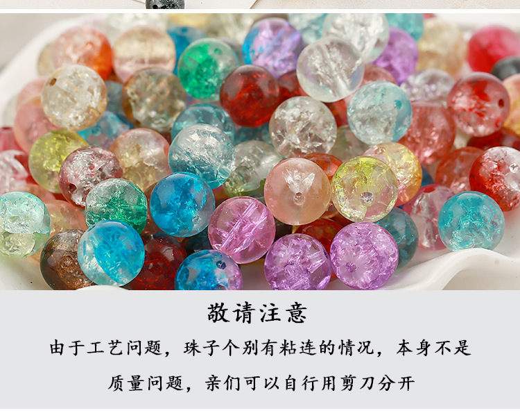 玻璃爆花珠子 双色裂纹散珠 手链项链饰品配件 七彩珠碎花珠