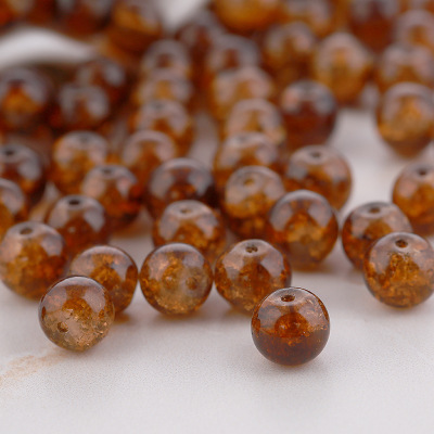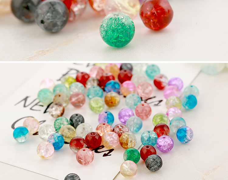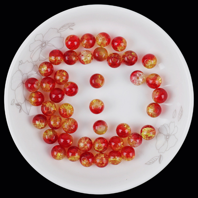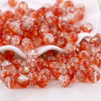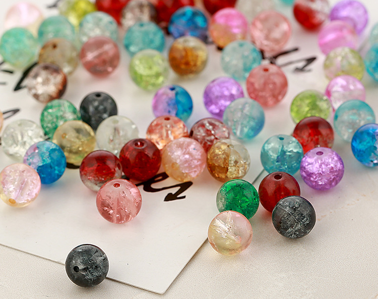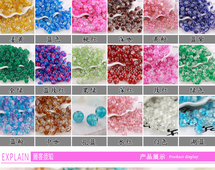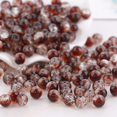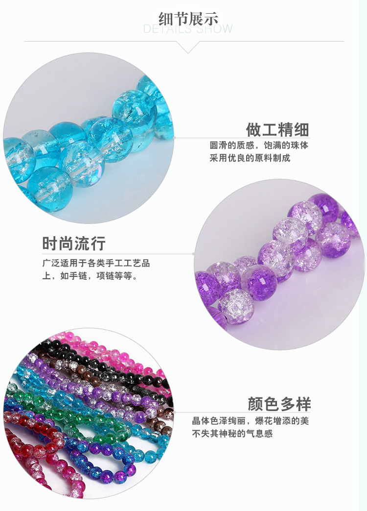 玻璃爆花珠子 双色裂纹散珠 手链项链饰品配件 七彩珠碎花珠
