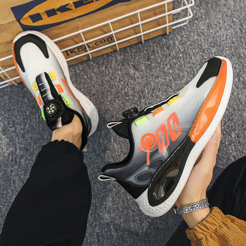男鞋夏季透氣運動休閒初中生爆米花跑步旋轉鈕釦增高老爹潮鞋秋季