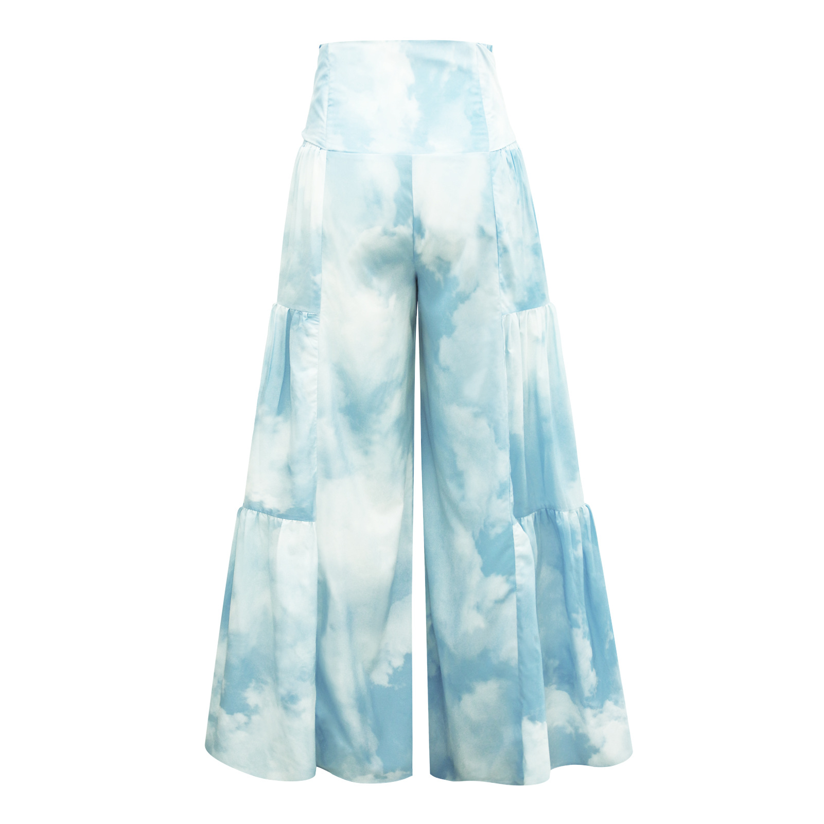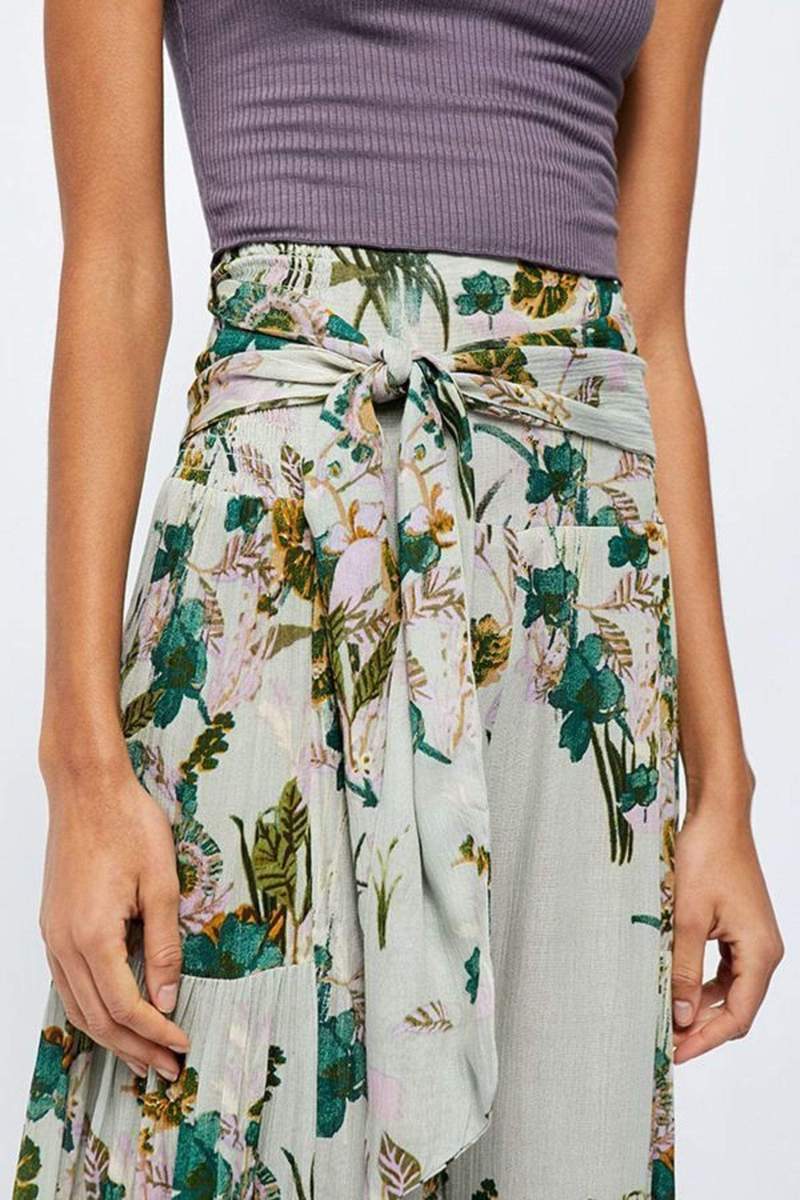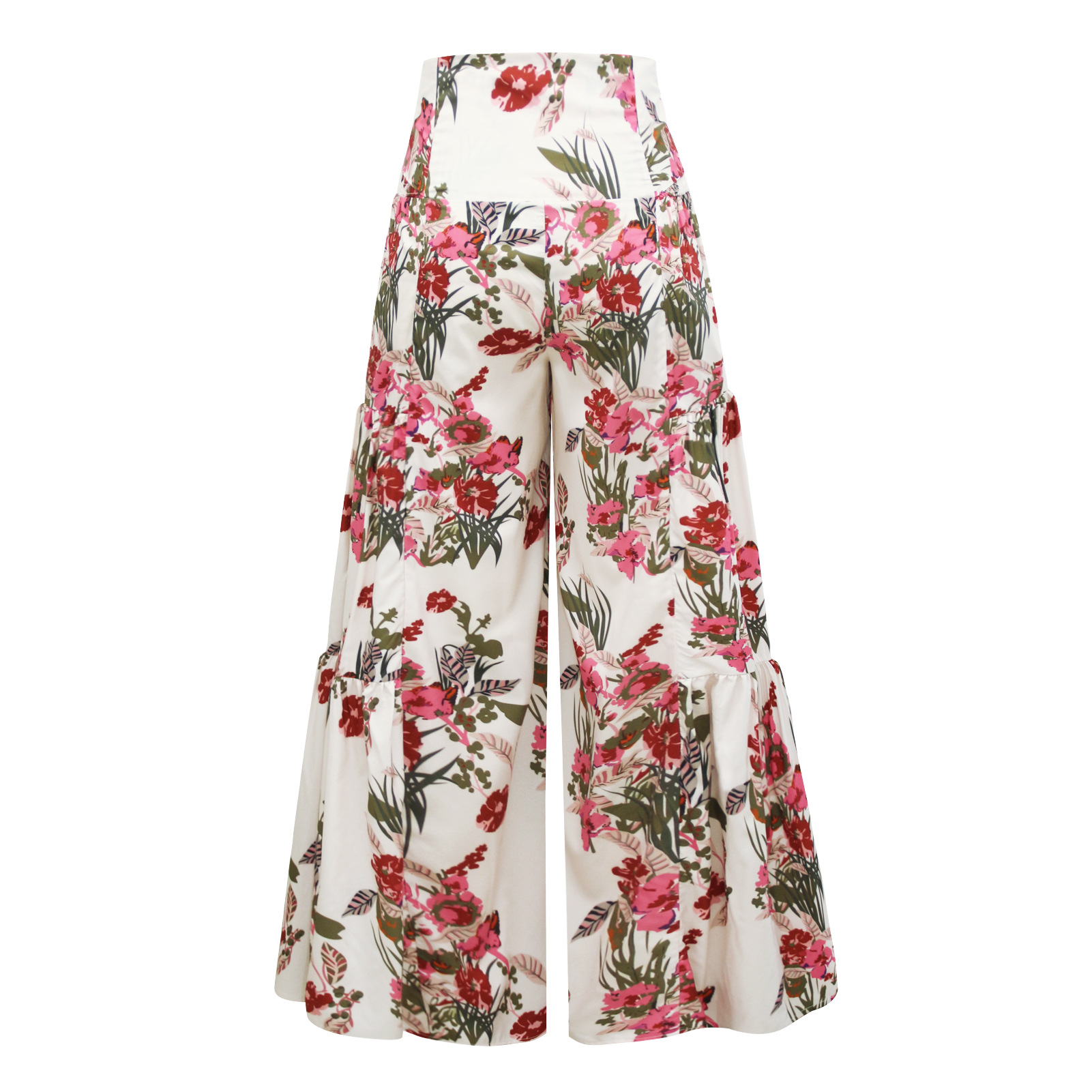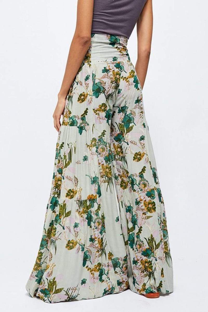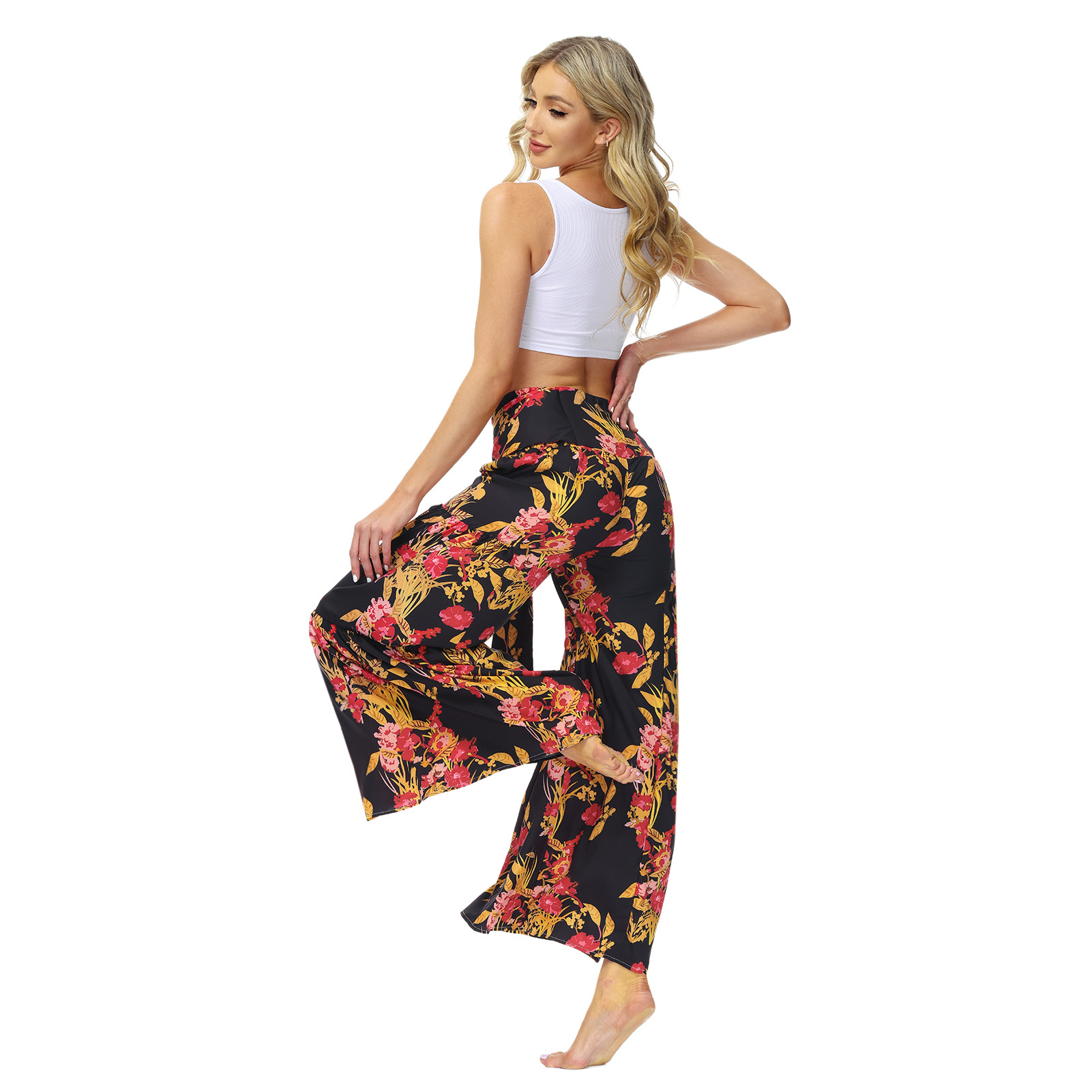 亚马逊春夏新品数码印花女装宽松休闲长裤沙滩阔腿裤绑带裤子现货