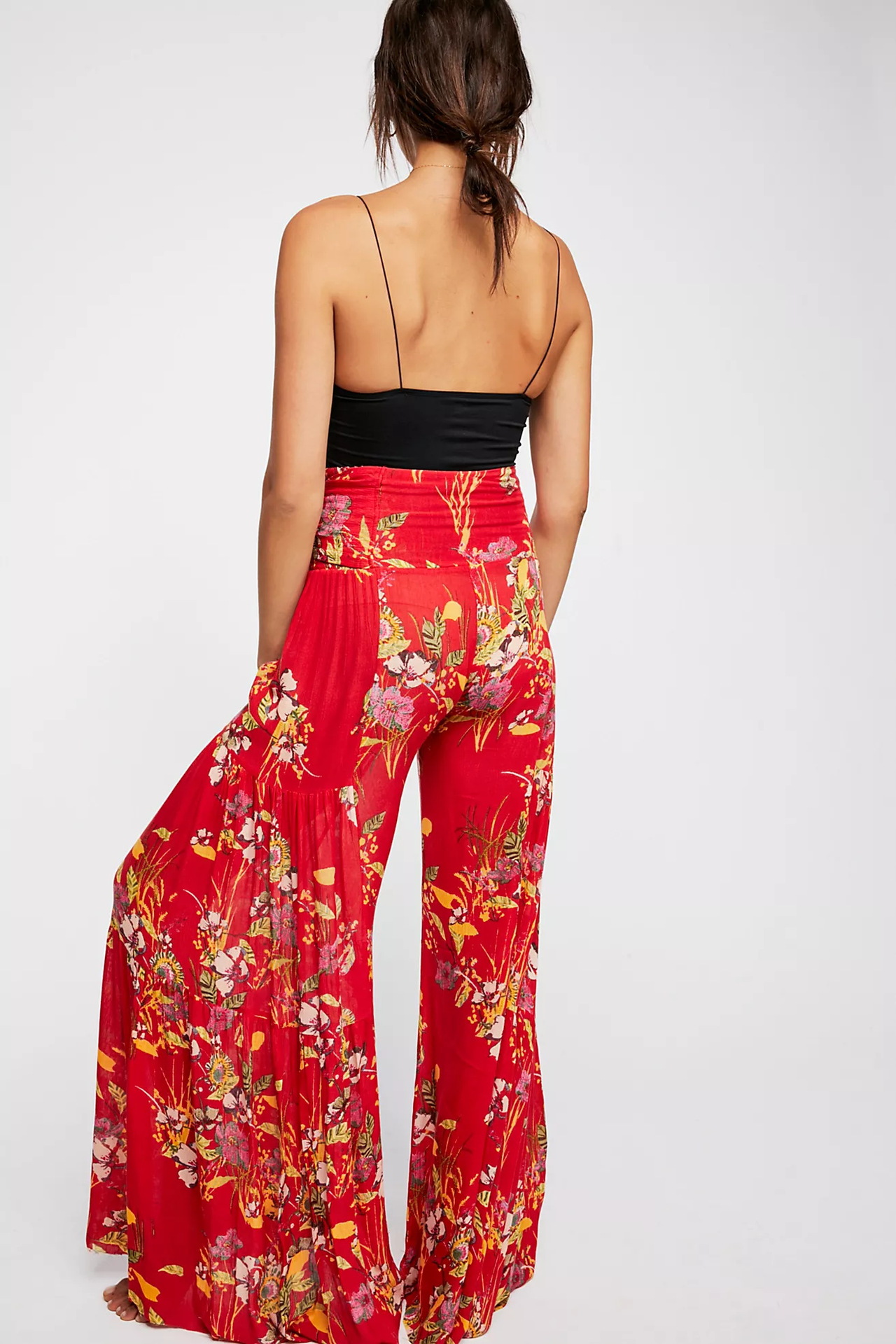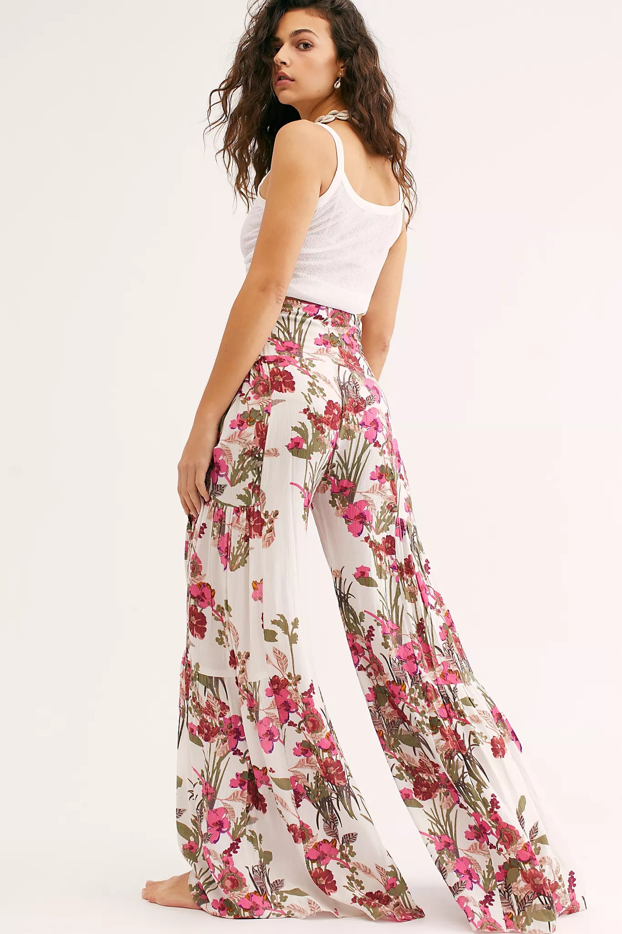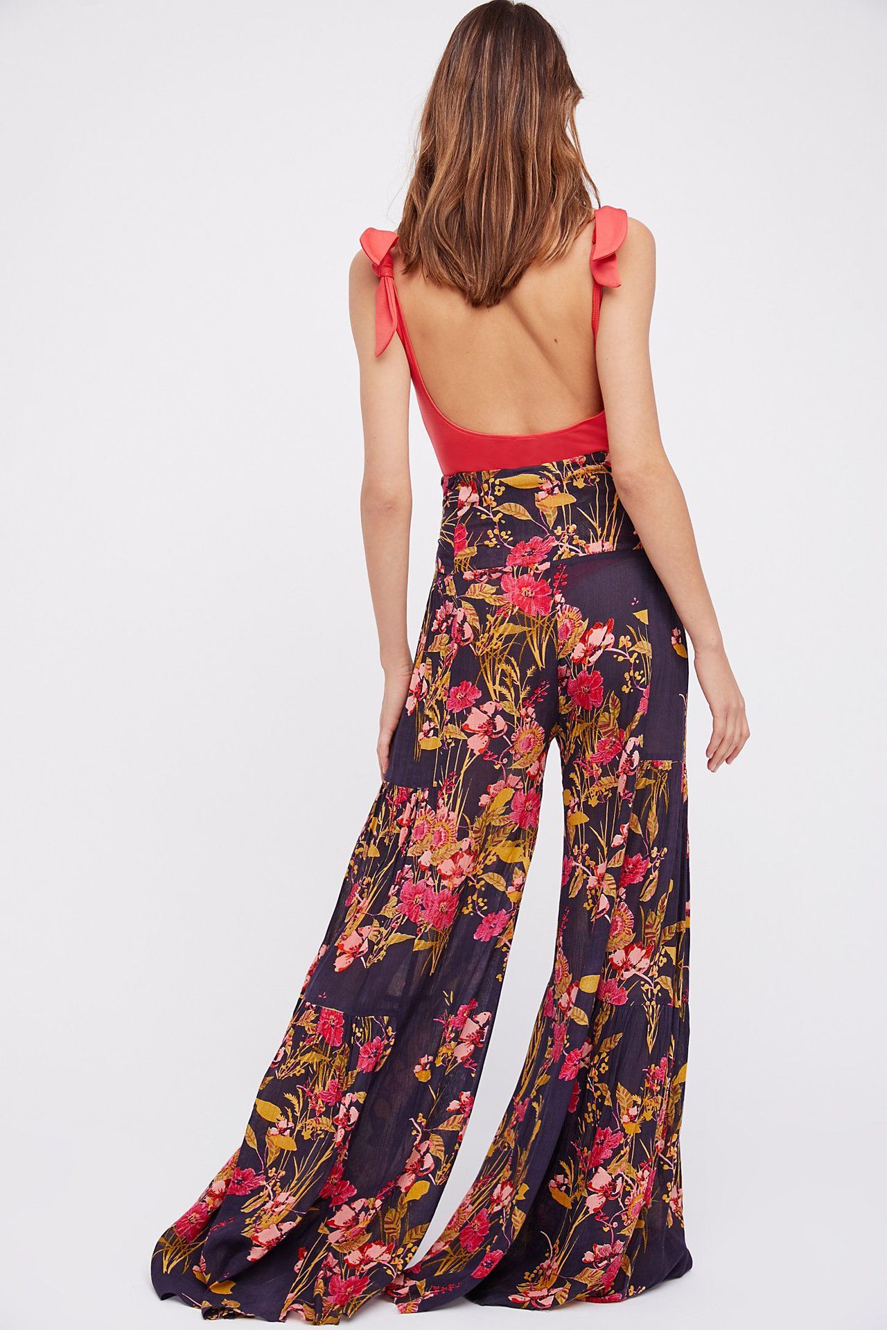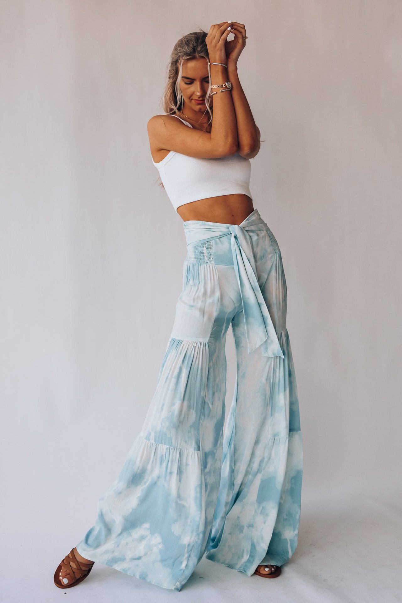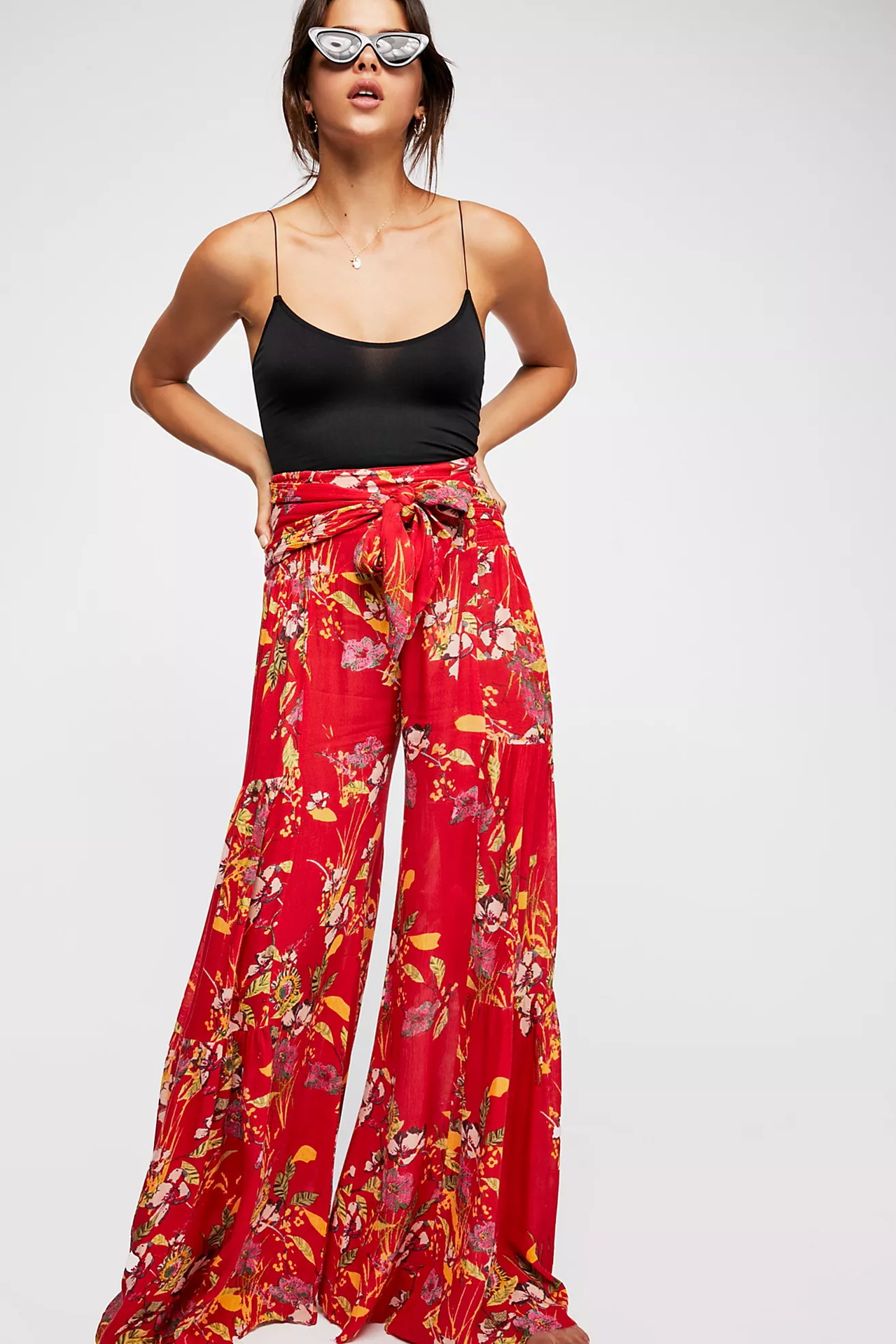 亚马逊春夏新品数码印花女装宽松休闲长裤沙滩阔腿裤绑带裤子现货