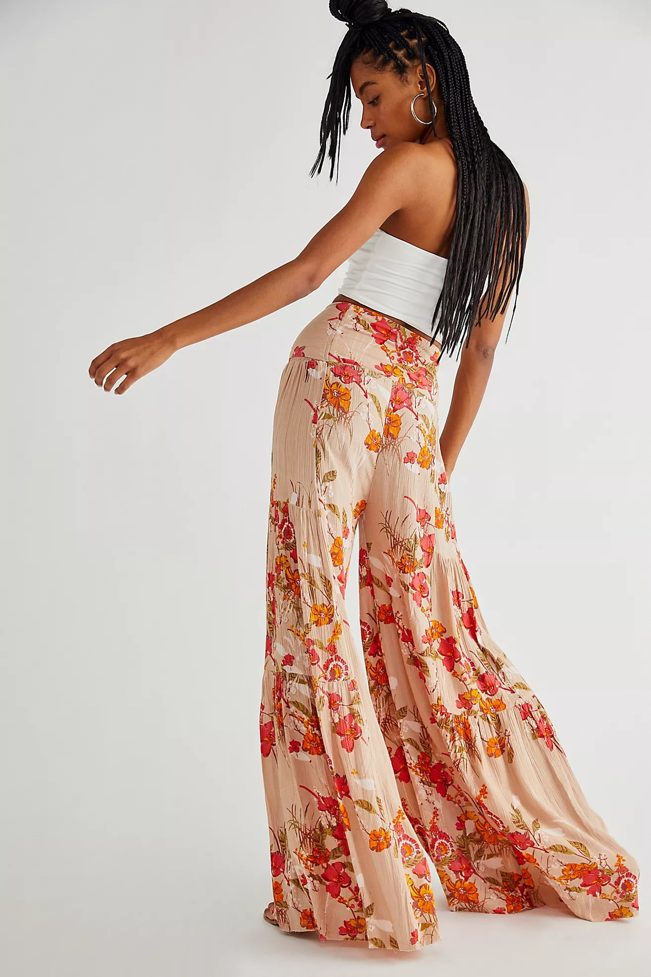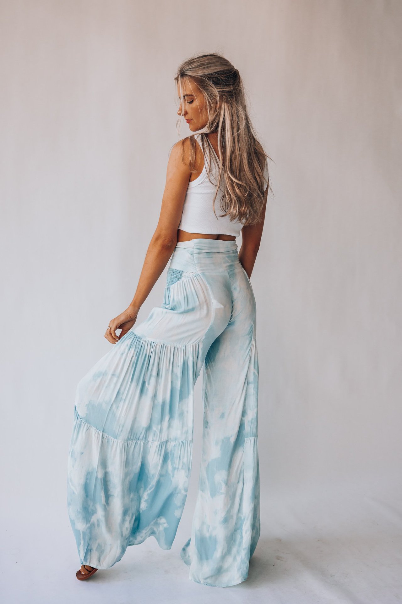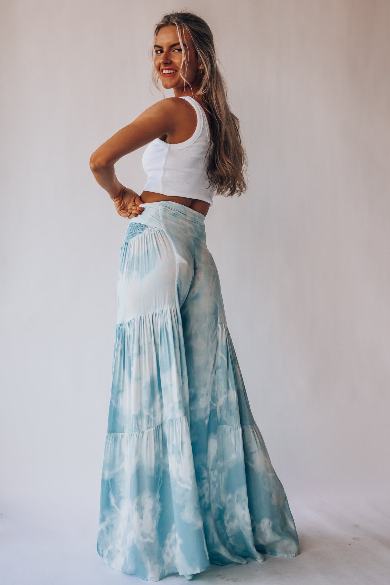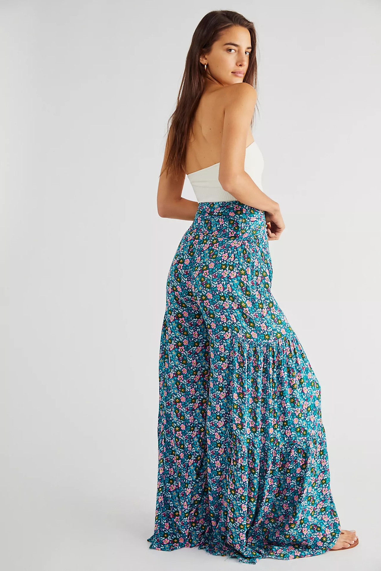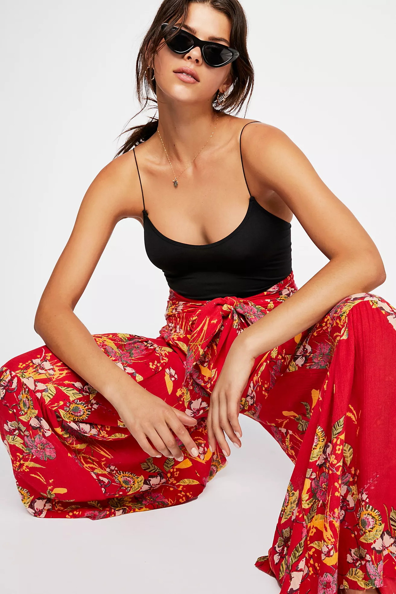 亚马逊春夏新品数码印花女装宽松休闲长裤沙滩阔腿裤绑带裤子现货