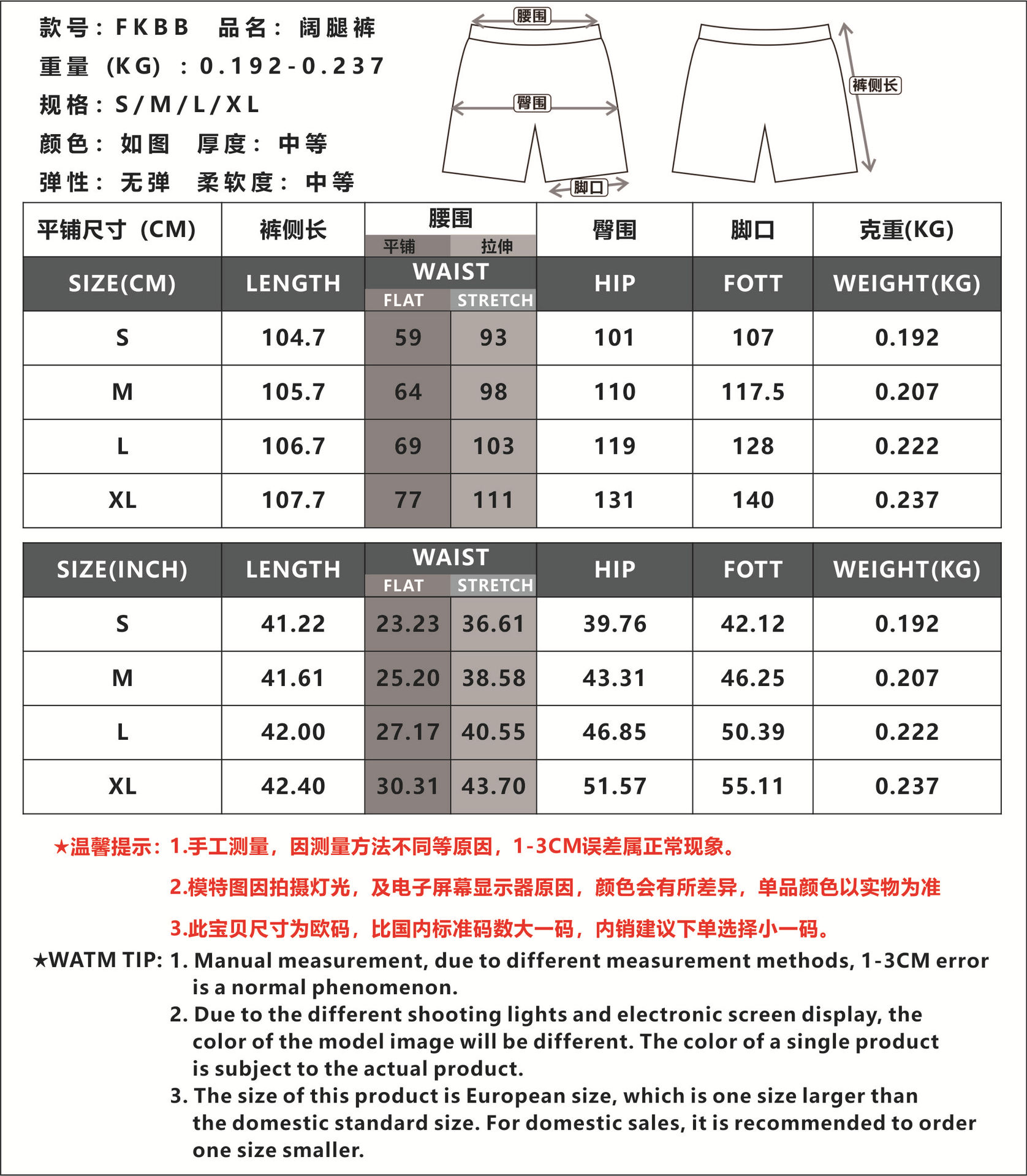 裤型 宽松型