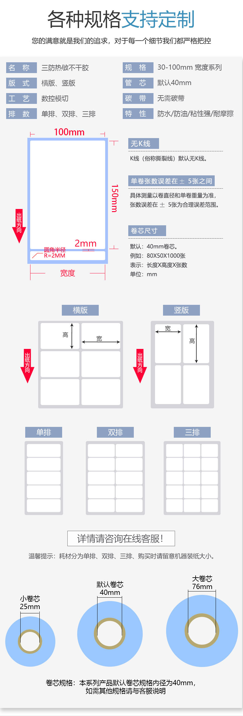 现货防水防油防刮擦三防热敏不干胶40*50*2000竖版双排热敏标签纸