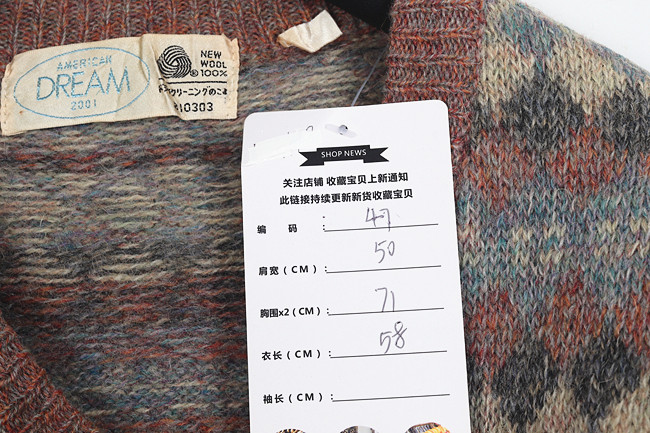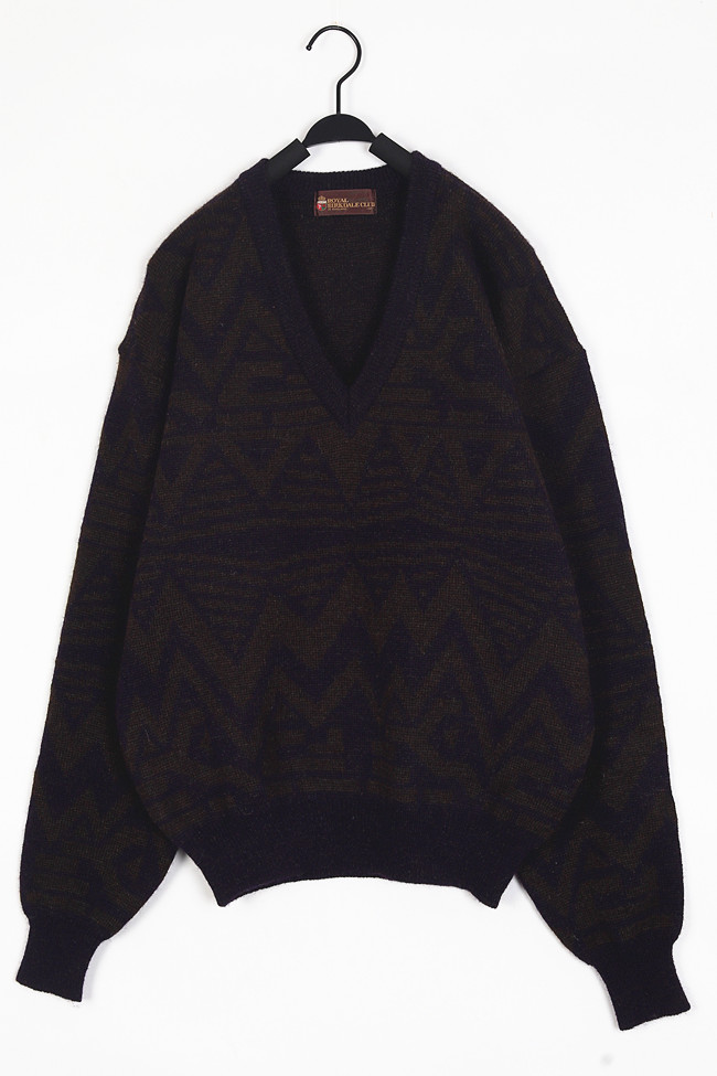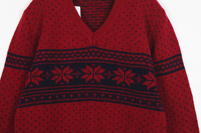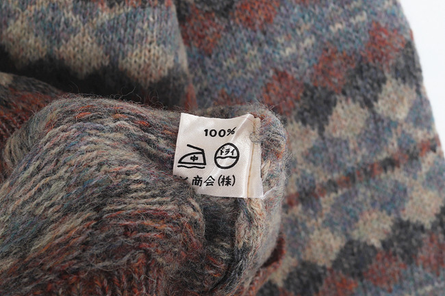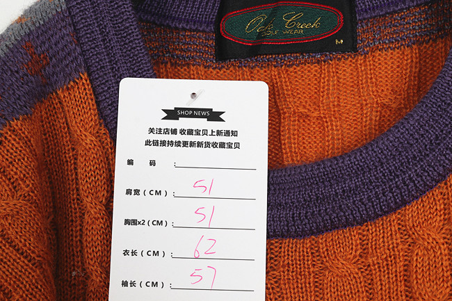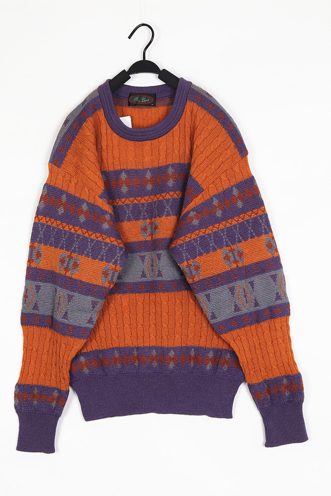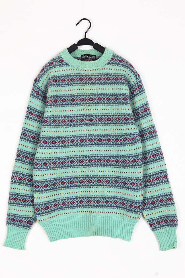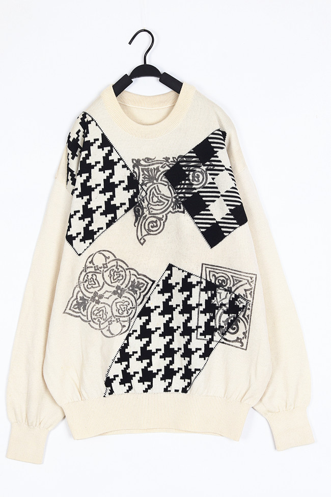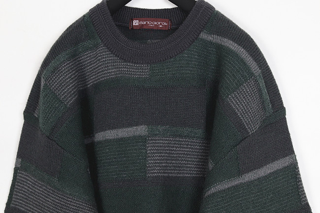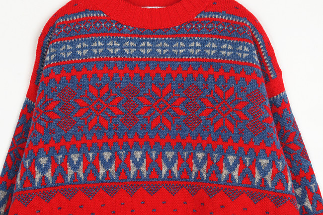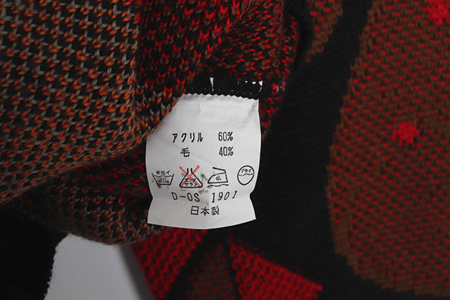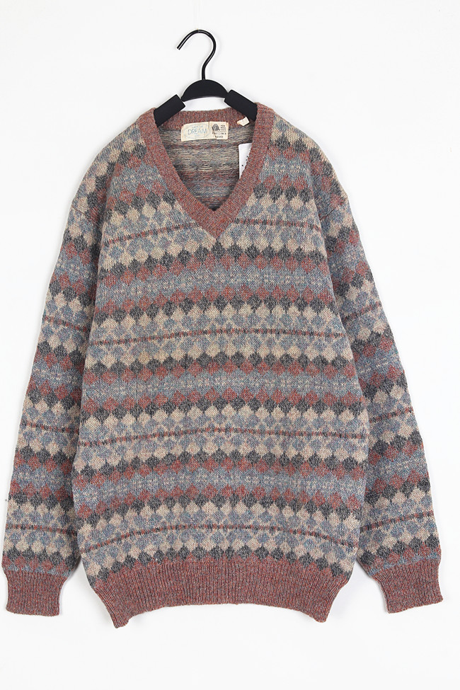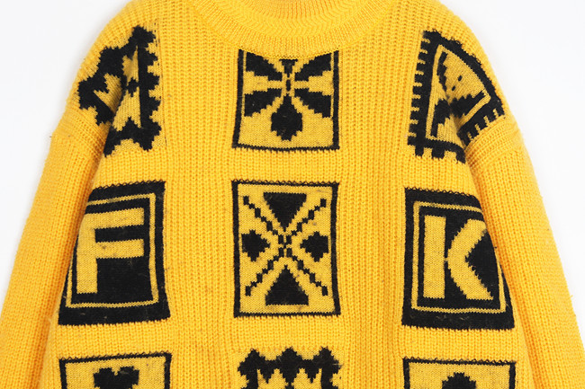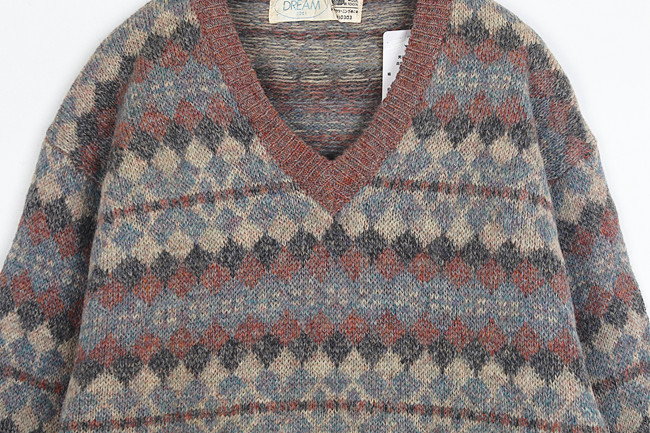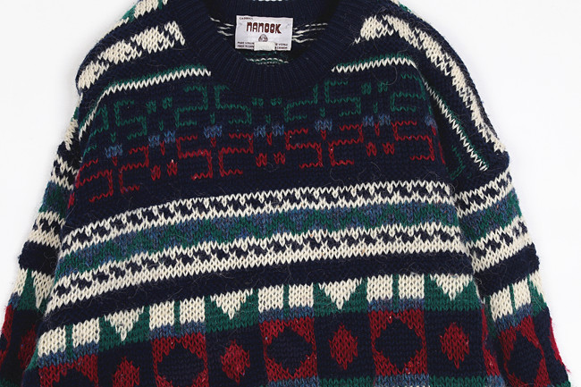古著孤品毛衣羊毛寬鬆套頭波普花紋圖案撞色條紋男女菱形復古刺繡