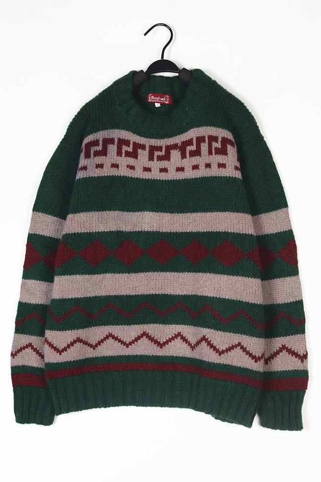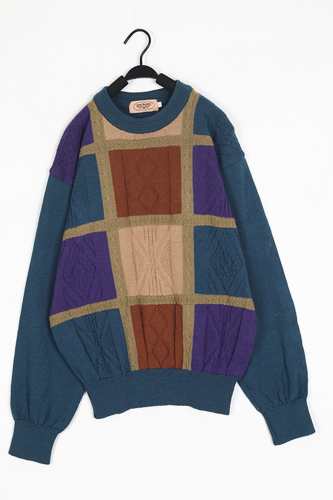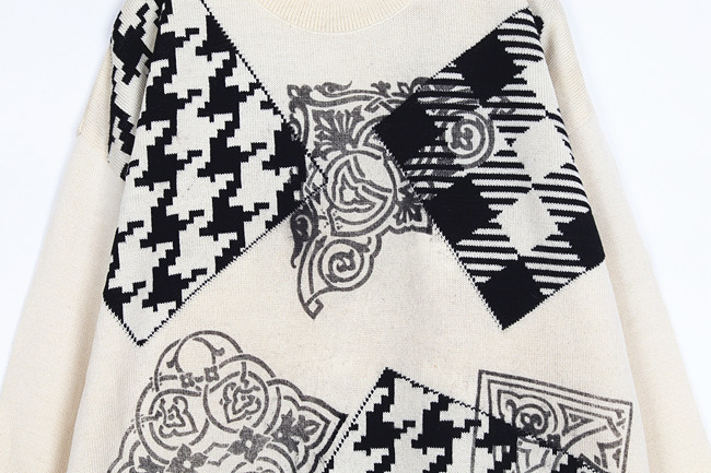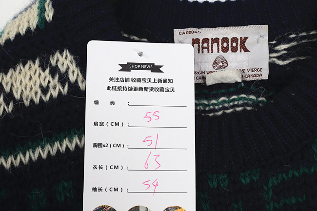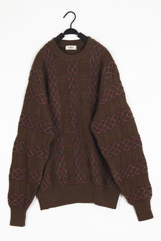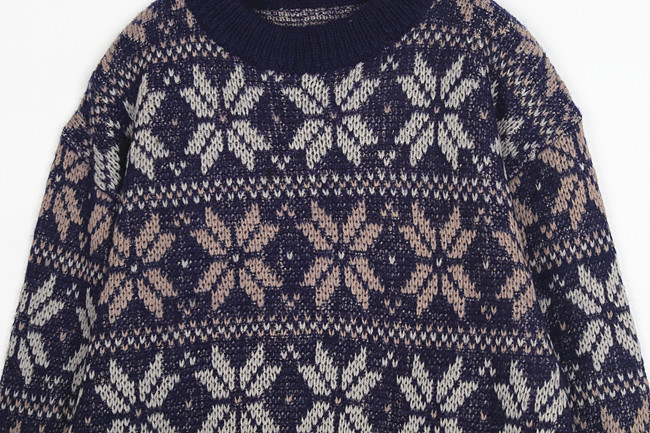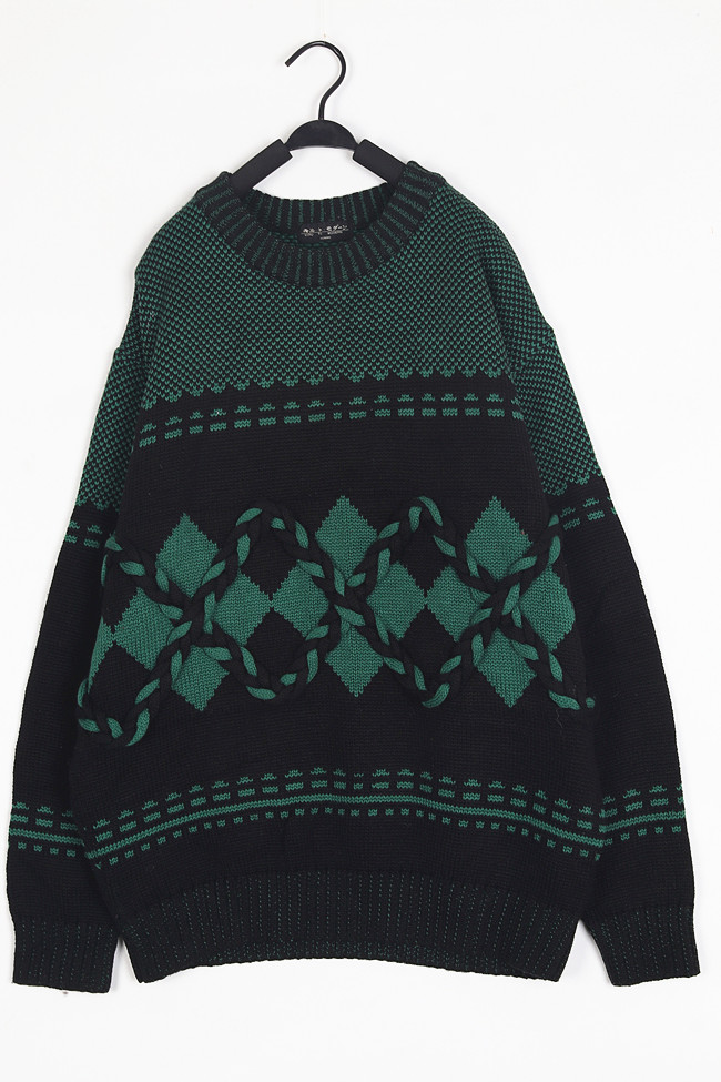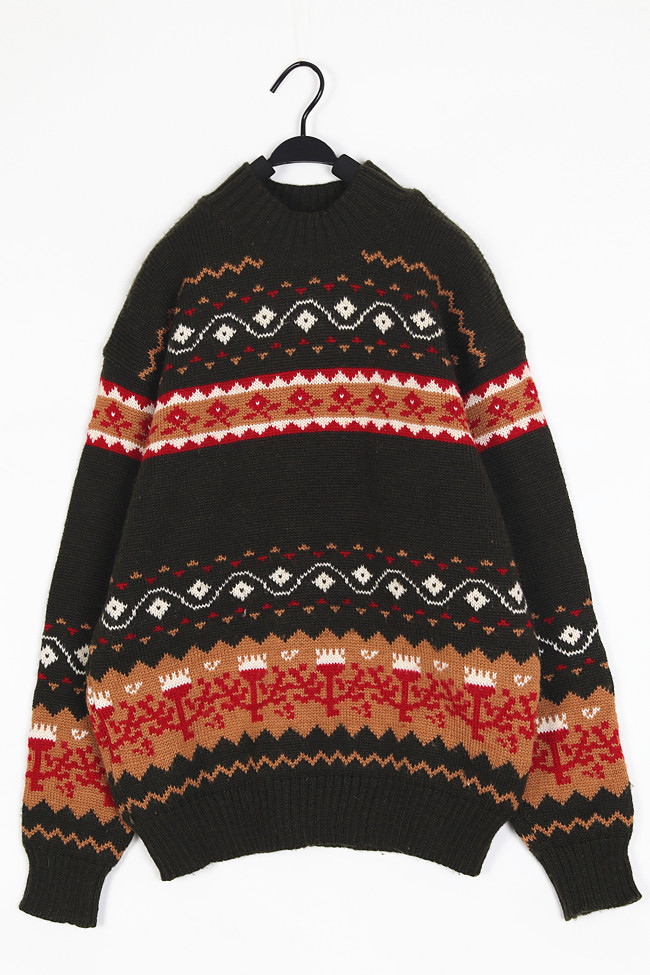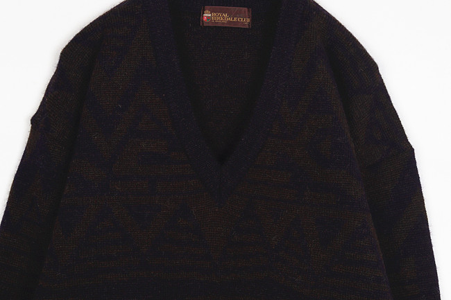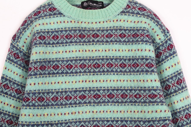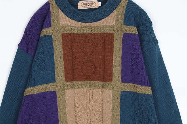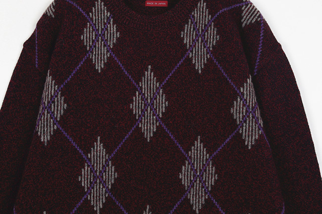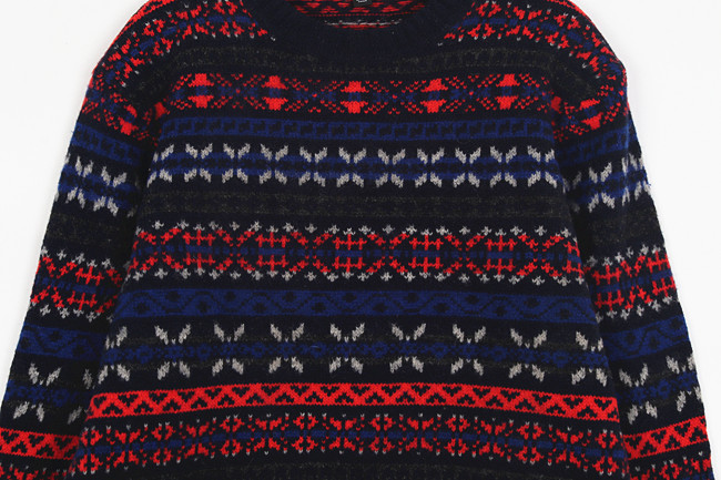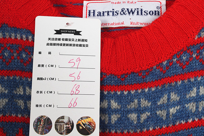 古著孤品毛衣羊毛寬鬆套頭波普花紋圖案撞色條紋男女菱形復古刺繡