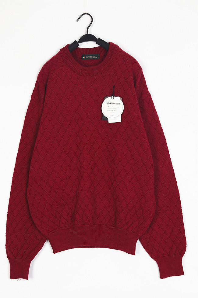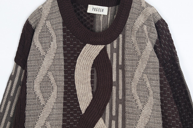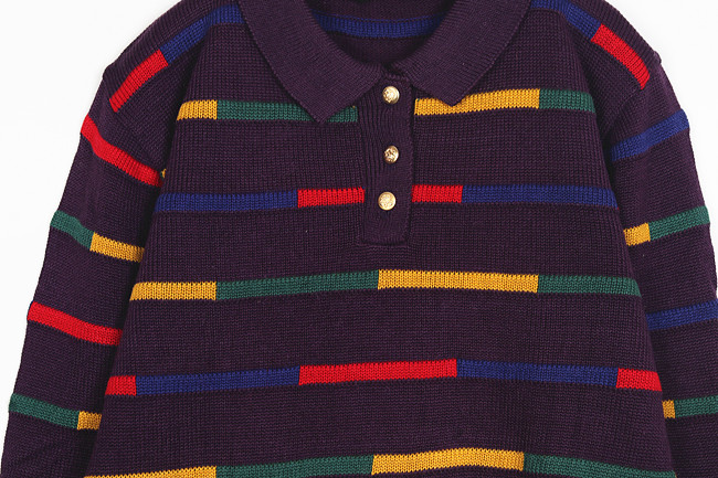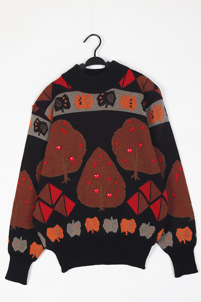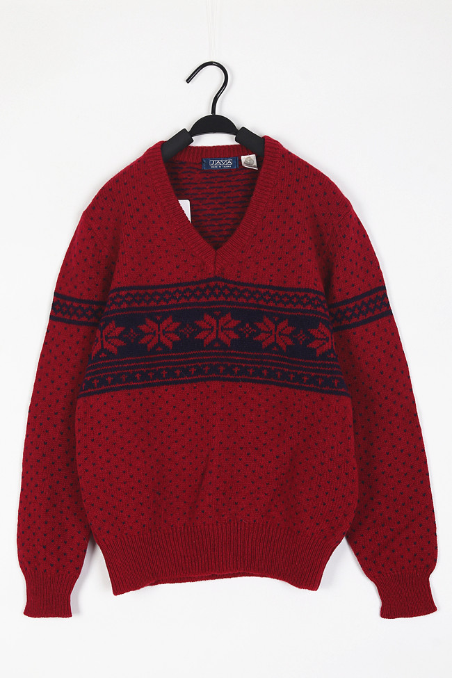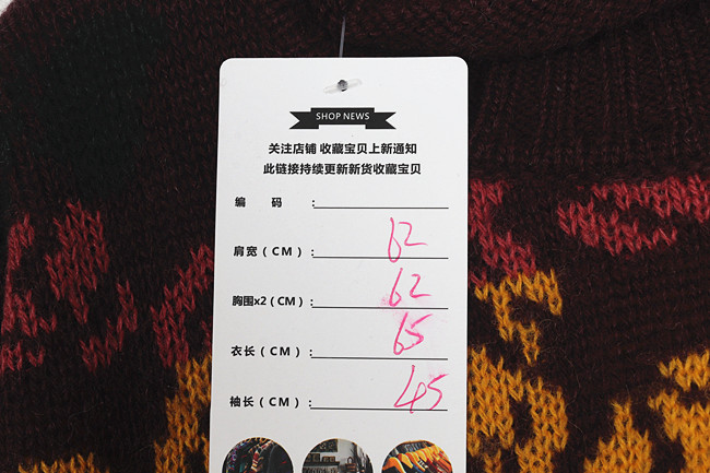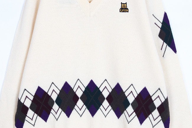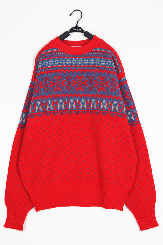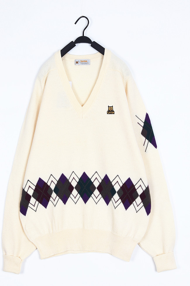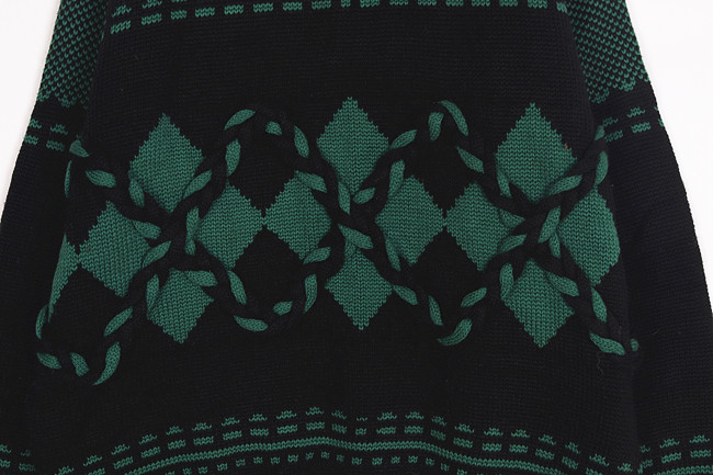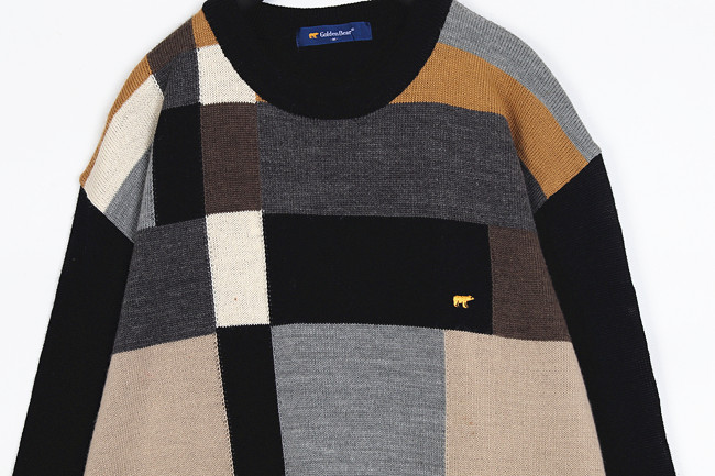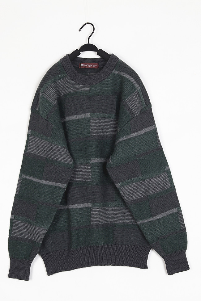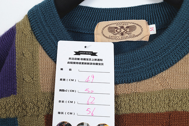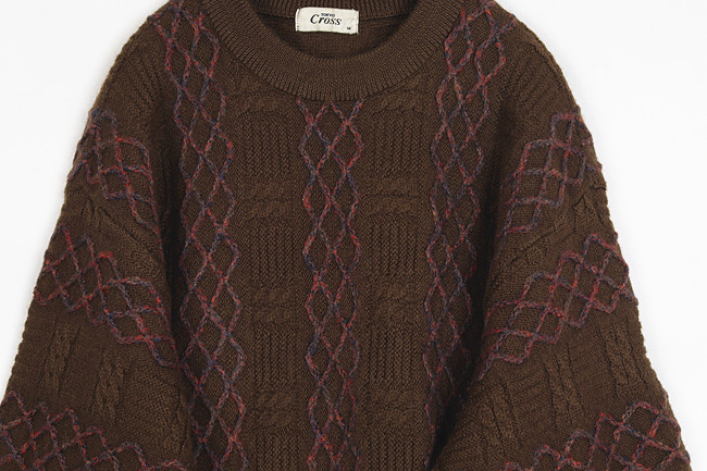 古著孤品毛衣羊毛寬鬆套頭波普花紋圖案撞色條紋男女菱形復古刺繡