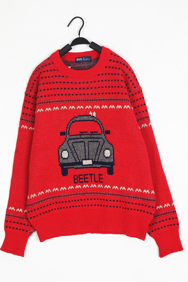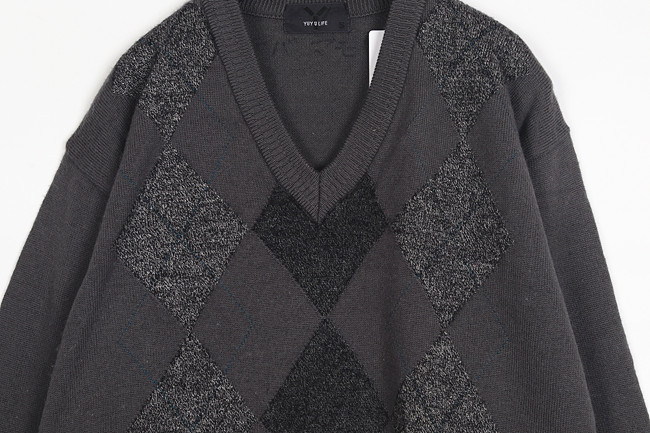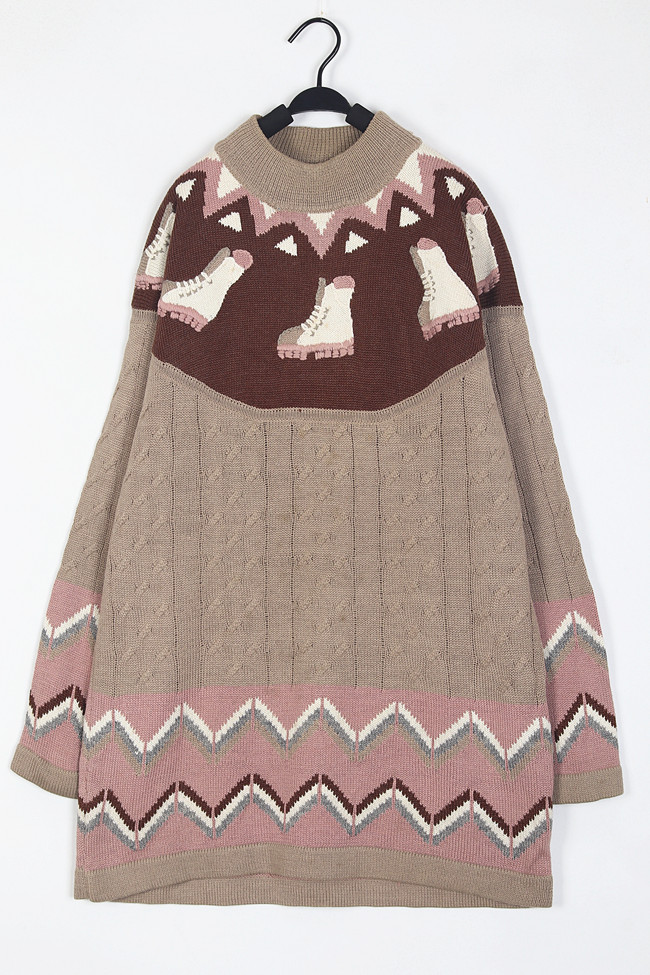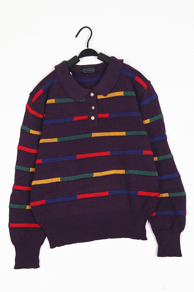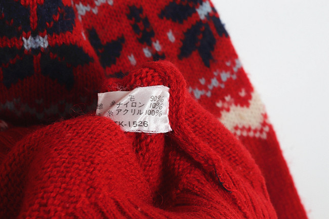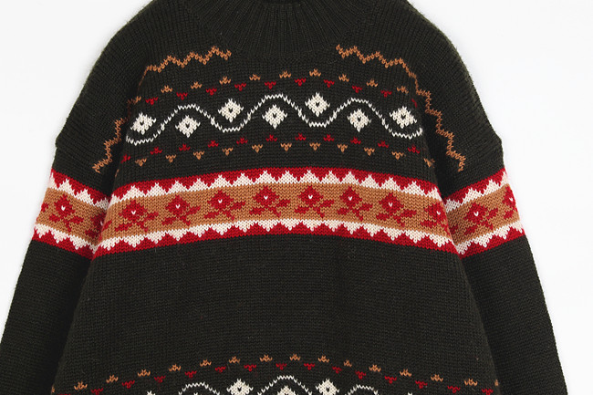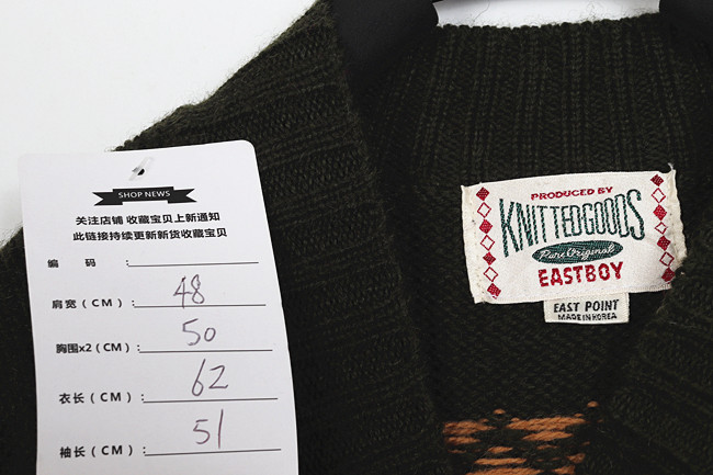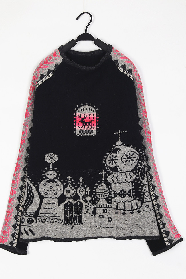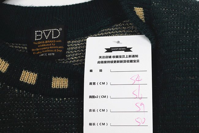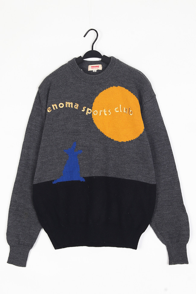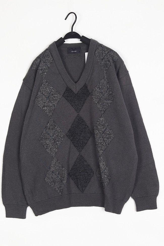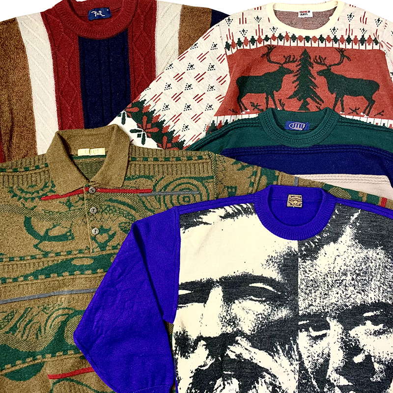 古著孤品毛衣羊毛寬鬆套頭波普花紋圖案撞色條紋男女菱形復古刺繡