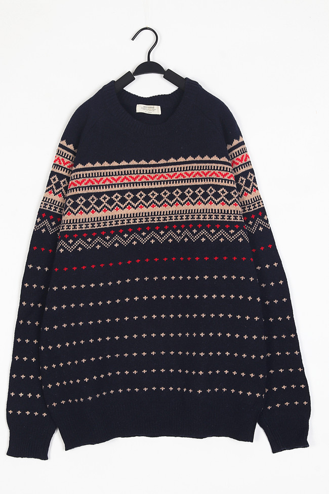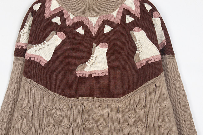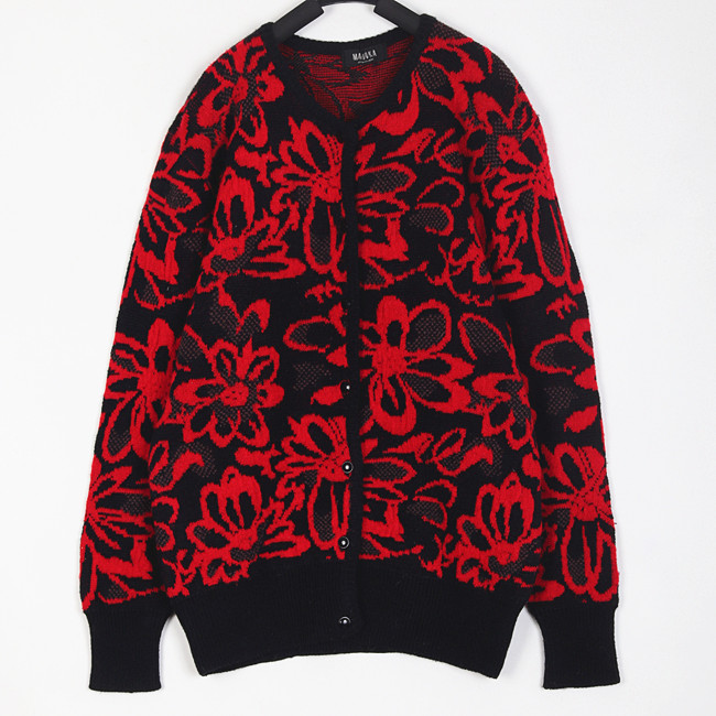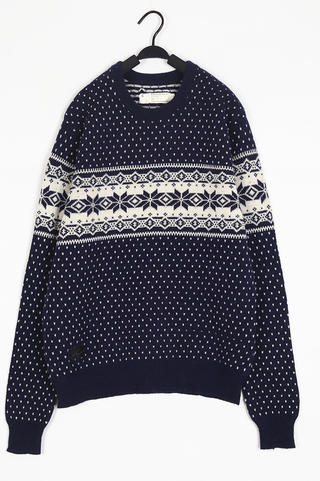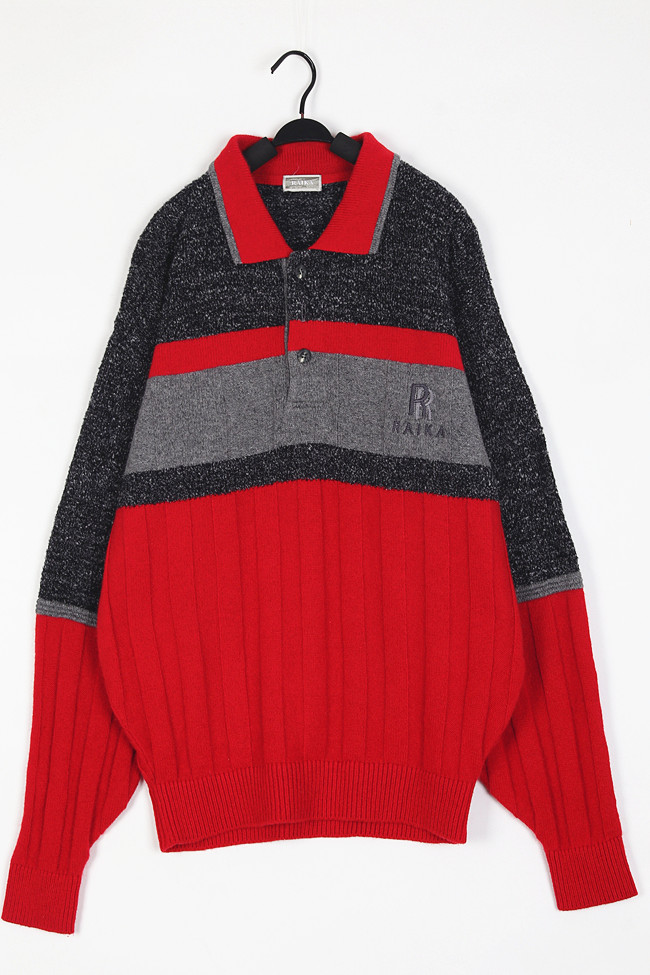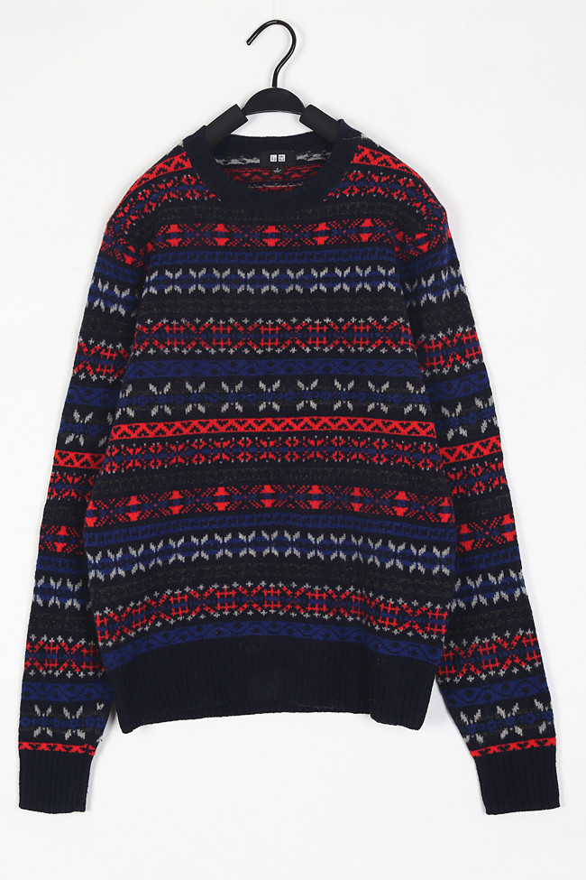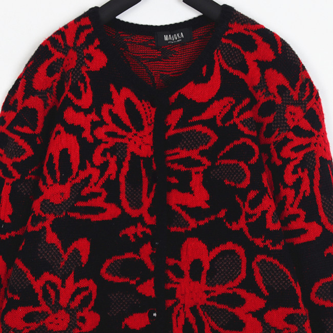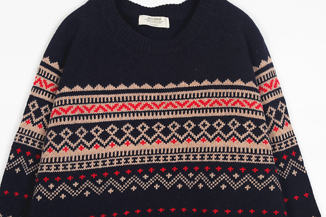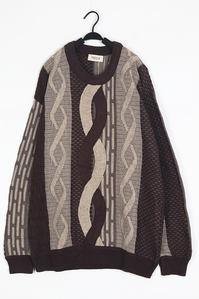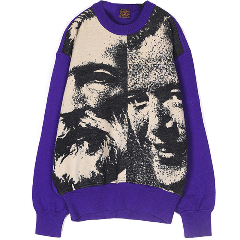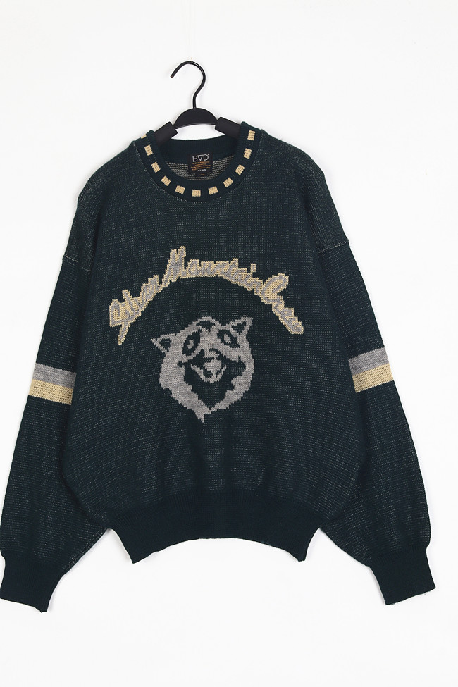 古著孤品毛衣羊毛寬鬆套頭波普花紋圖案撞色條紋男女菱形復古刺繡