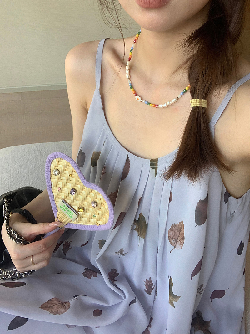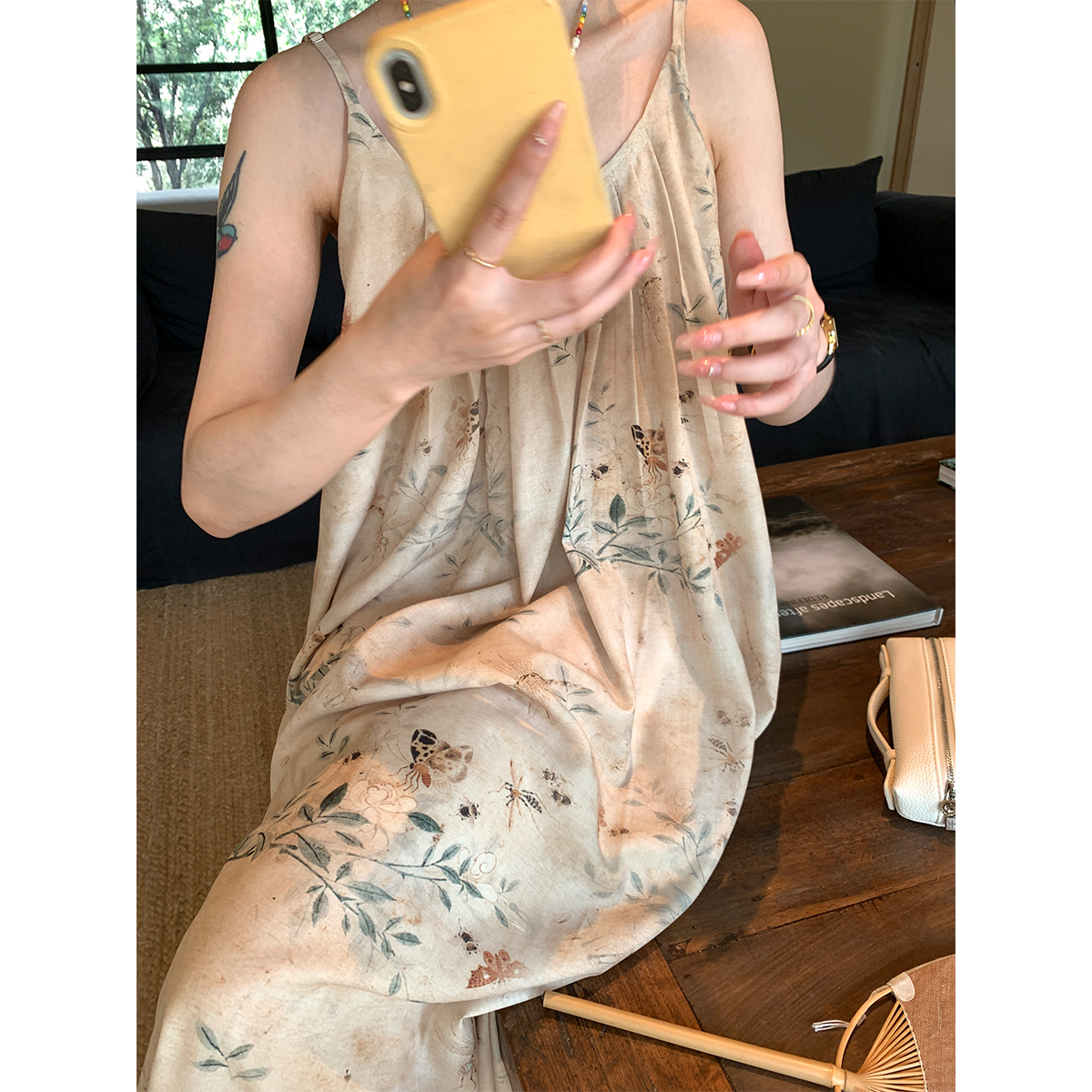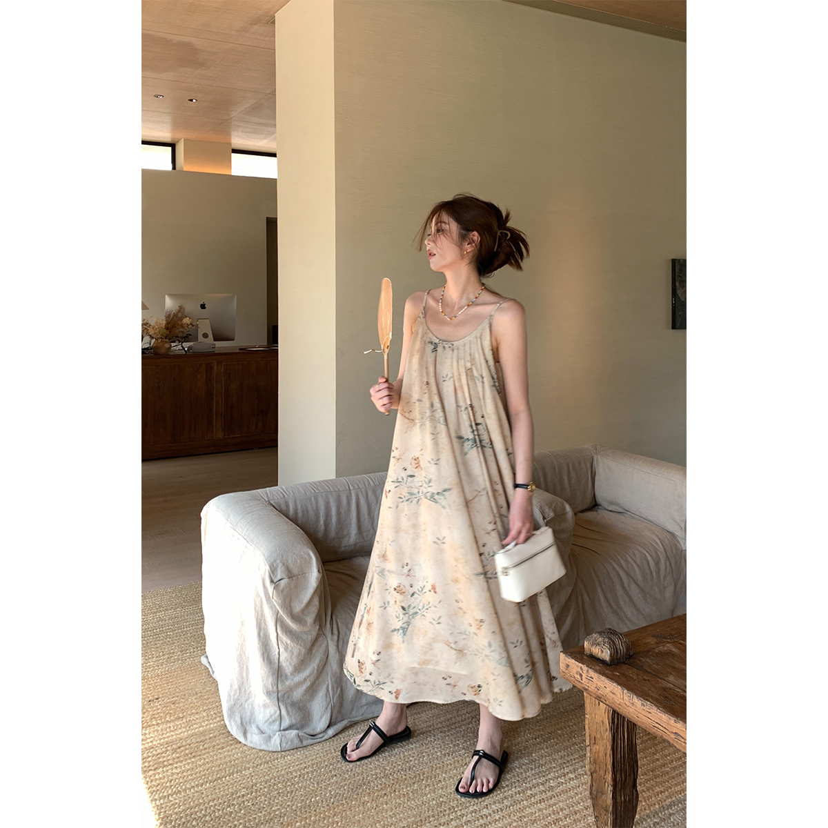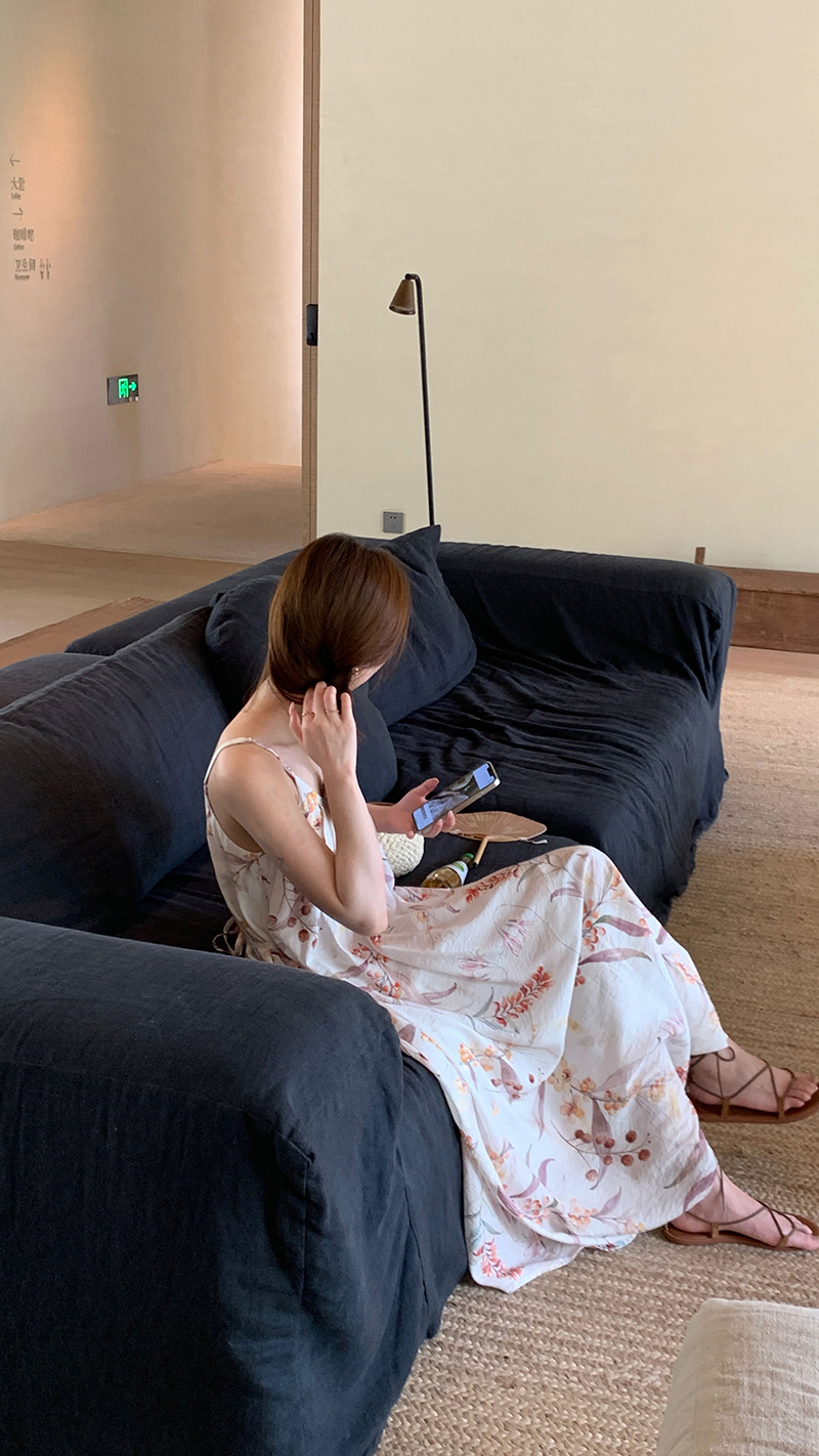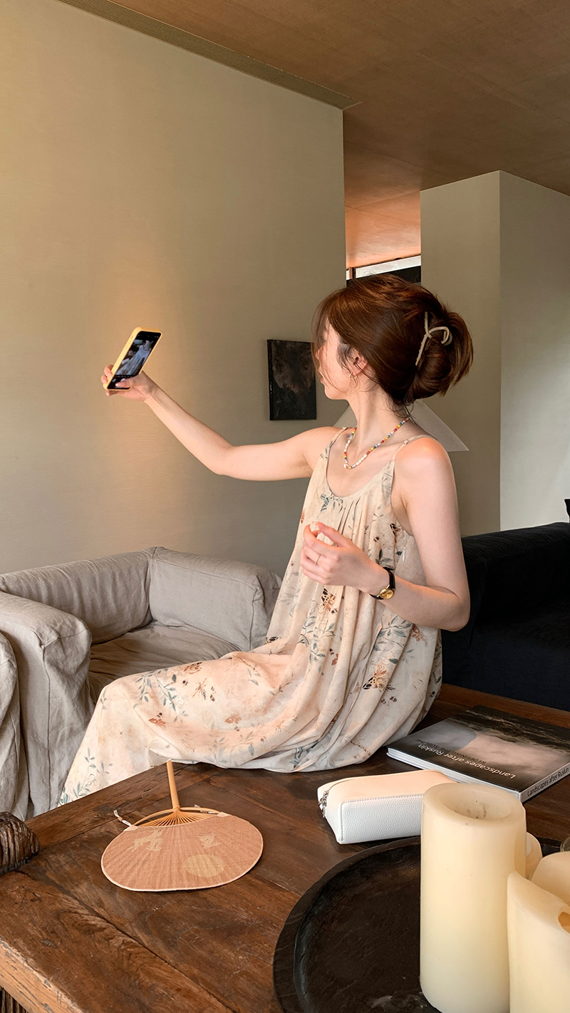 【現貨】im向 江南仲夏天新中式清冷印花吊帶裙度假風無袖洋裝