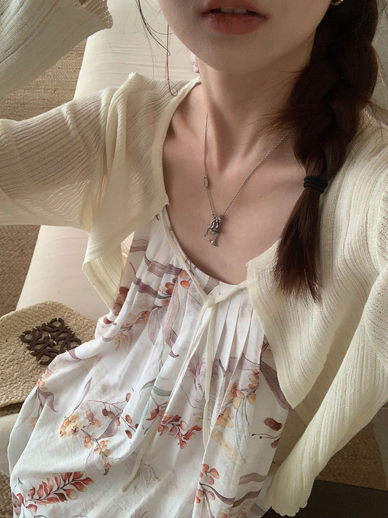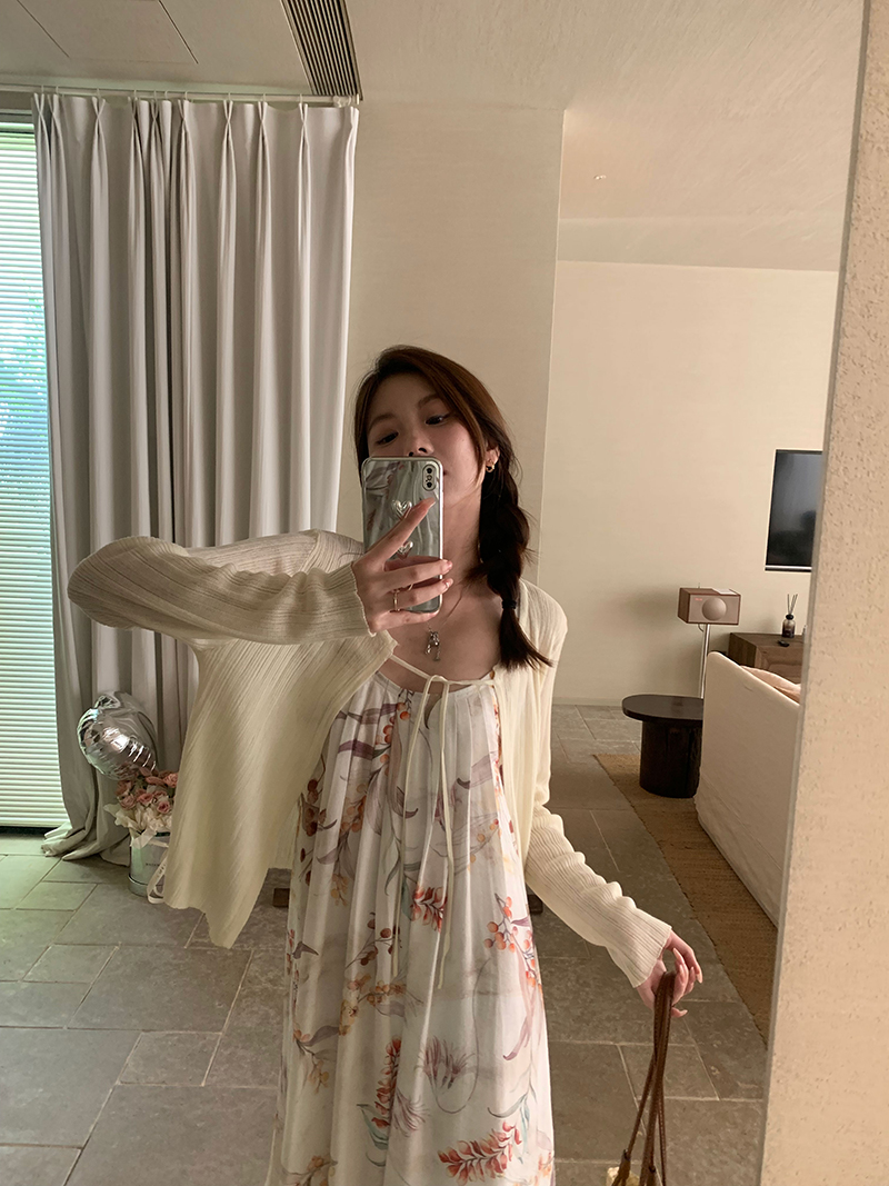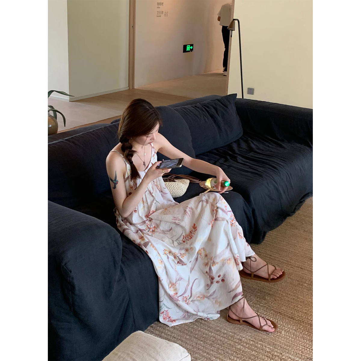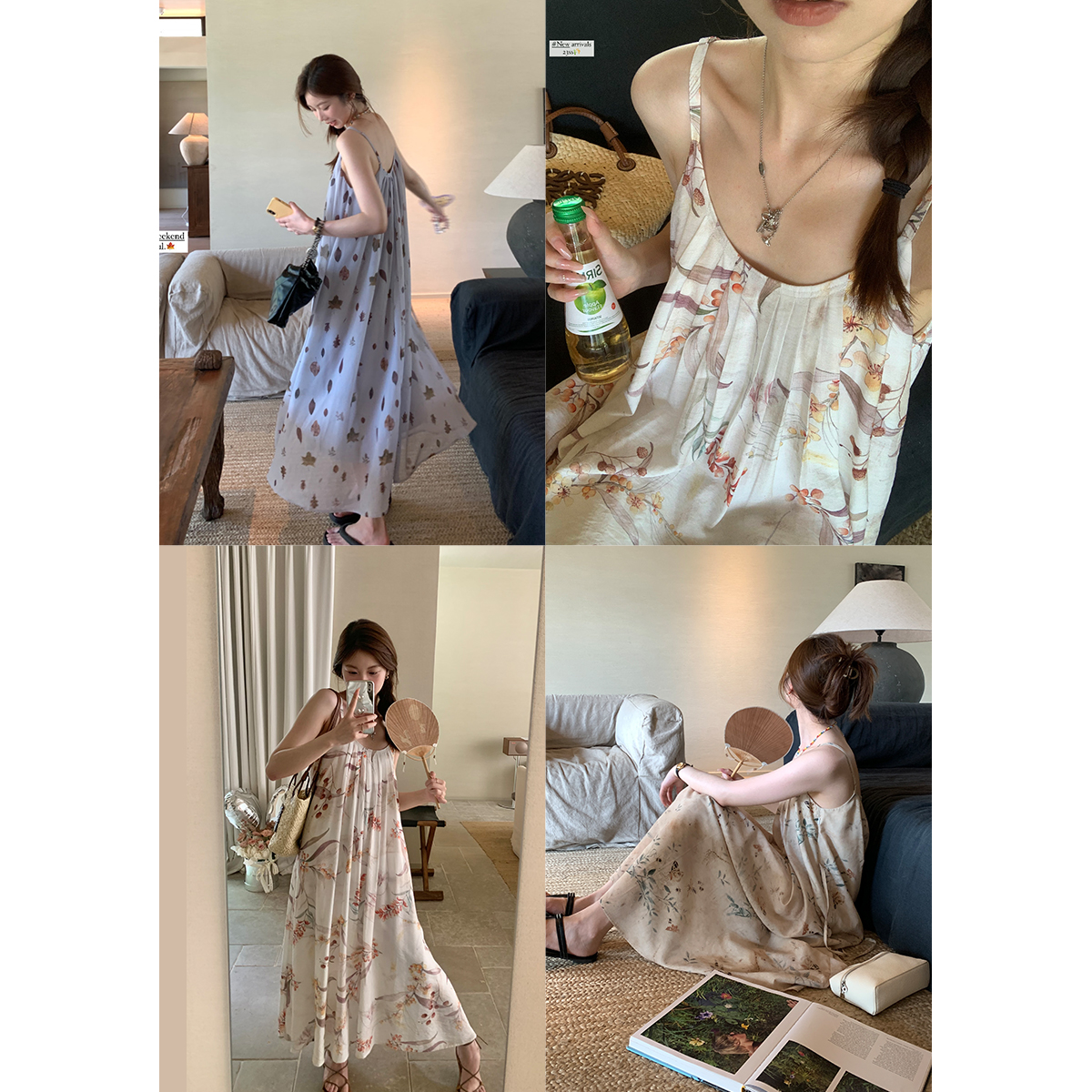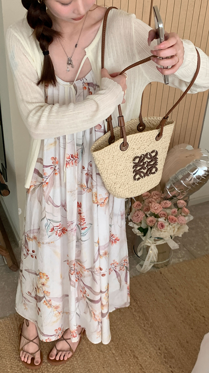 【現貨】im向 江南仲夏天新中式清冷印花吊帶裙度假風無袖洋裝