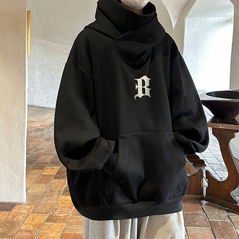黑武士衝鋒衛衣男秋冬款800g重磅機能外套oversize美式高領連帽衫