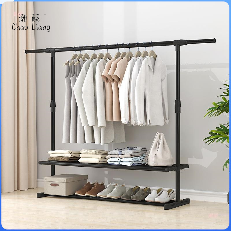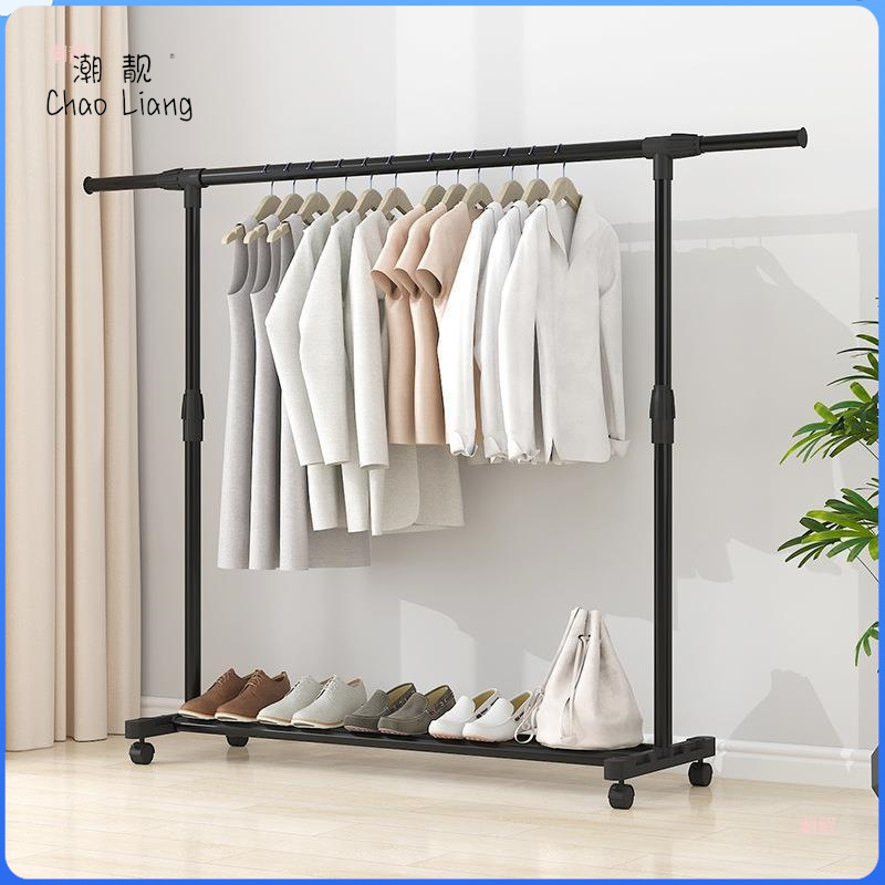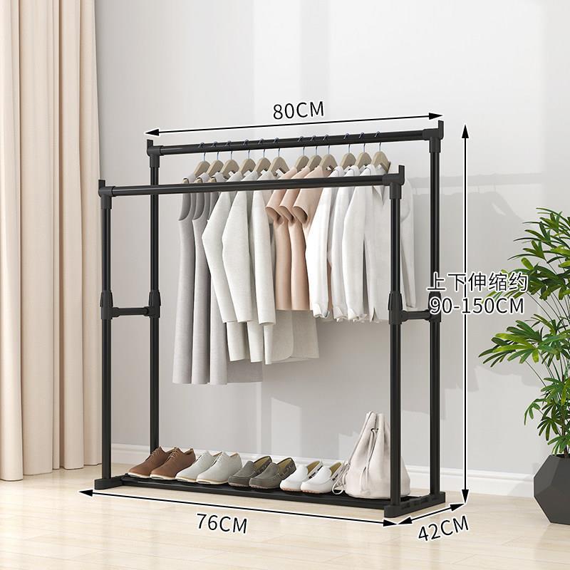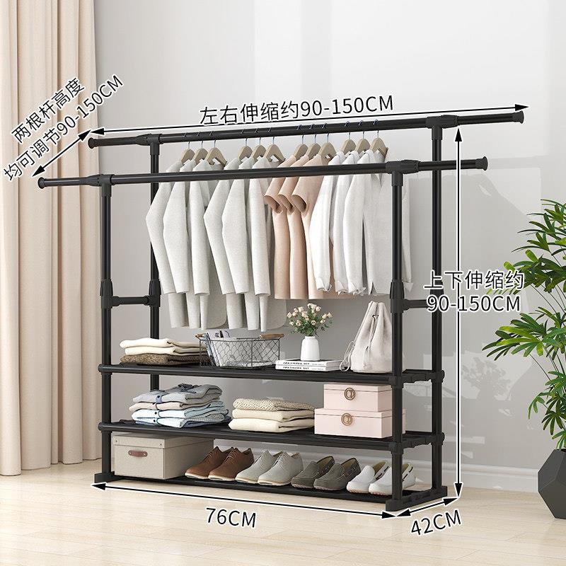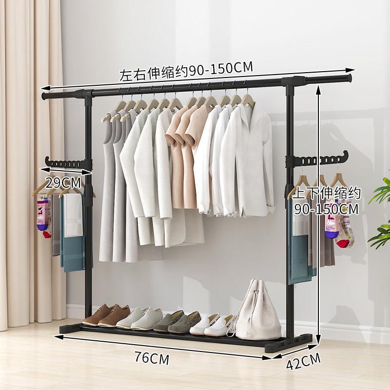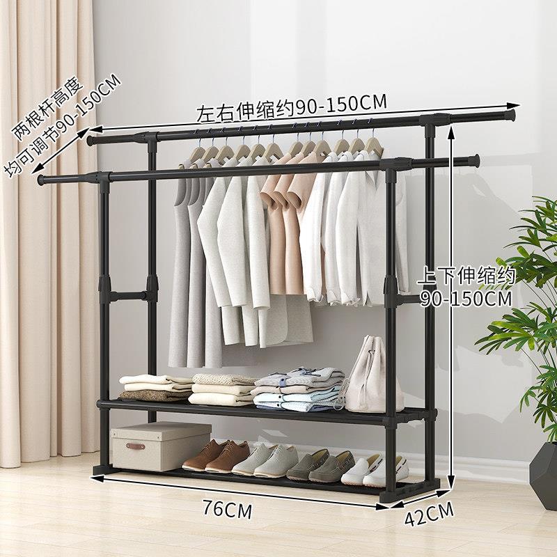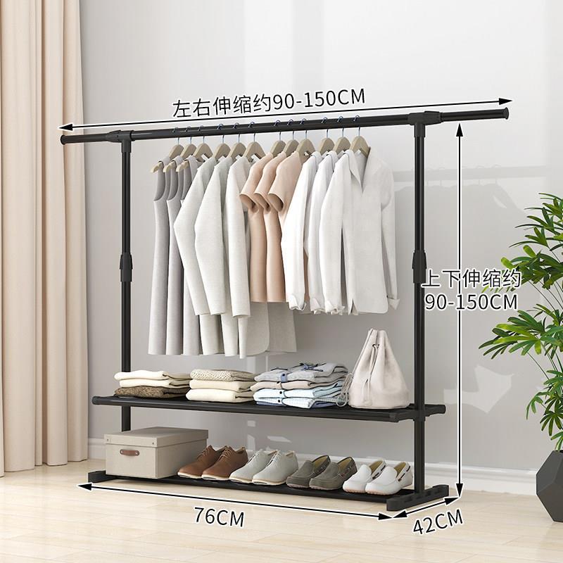 家用衣架落地加厚加粗卧室内结实耐用挂衣架子双层感移动带轮