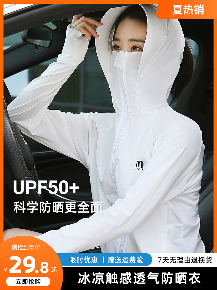 冰絲防曬衣女2022夏季新款抗UV連帽薄外套長袖百搭透氣防曬服