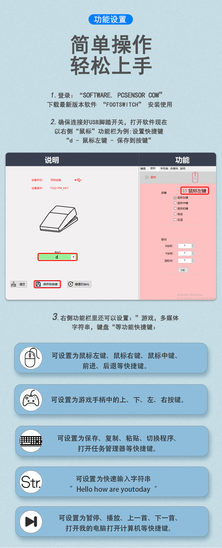 脚踏开关超声脚踏板B超胃镜可编程按键usb踏板内窥镜美国ge彩超