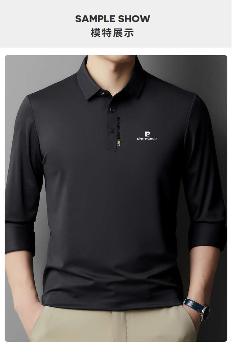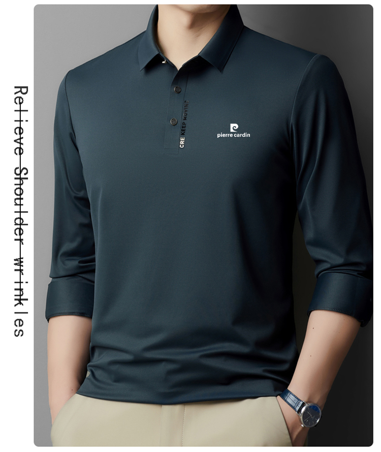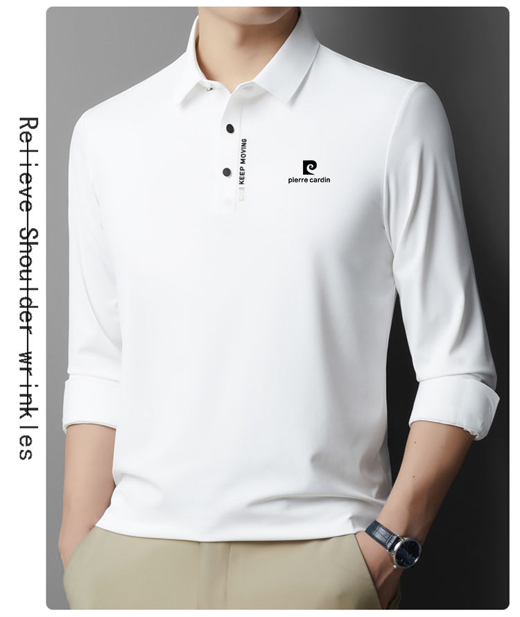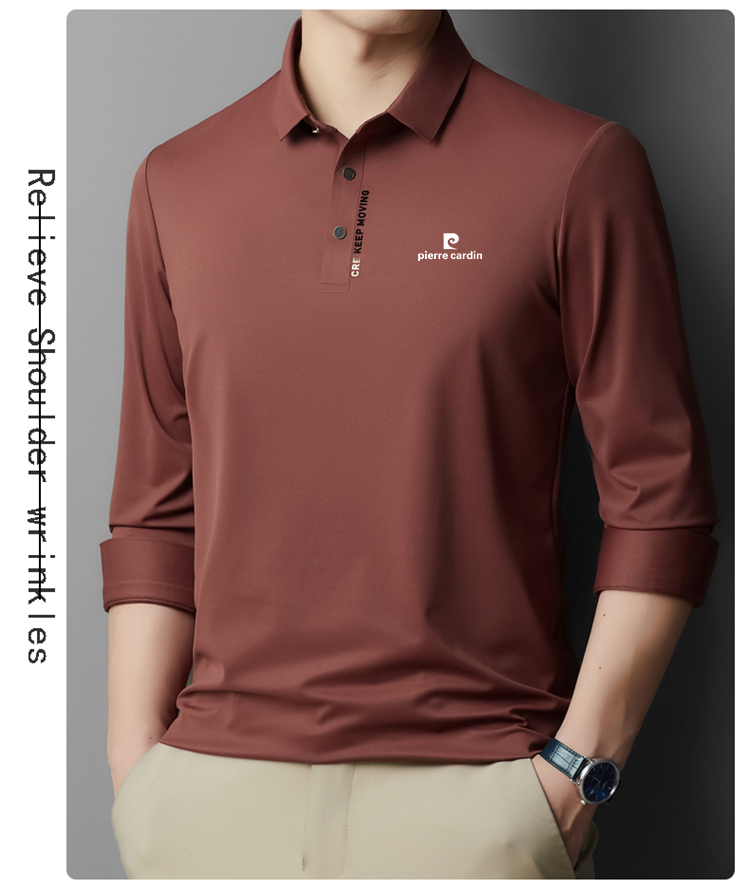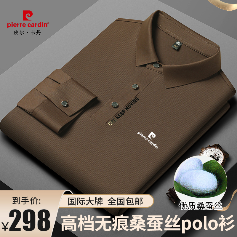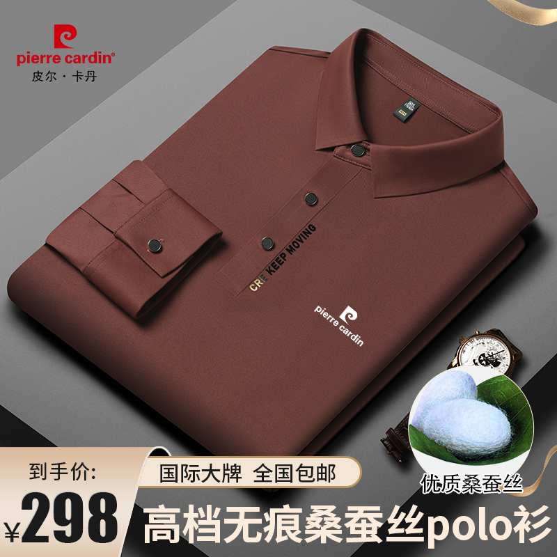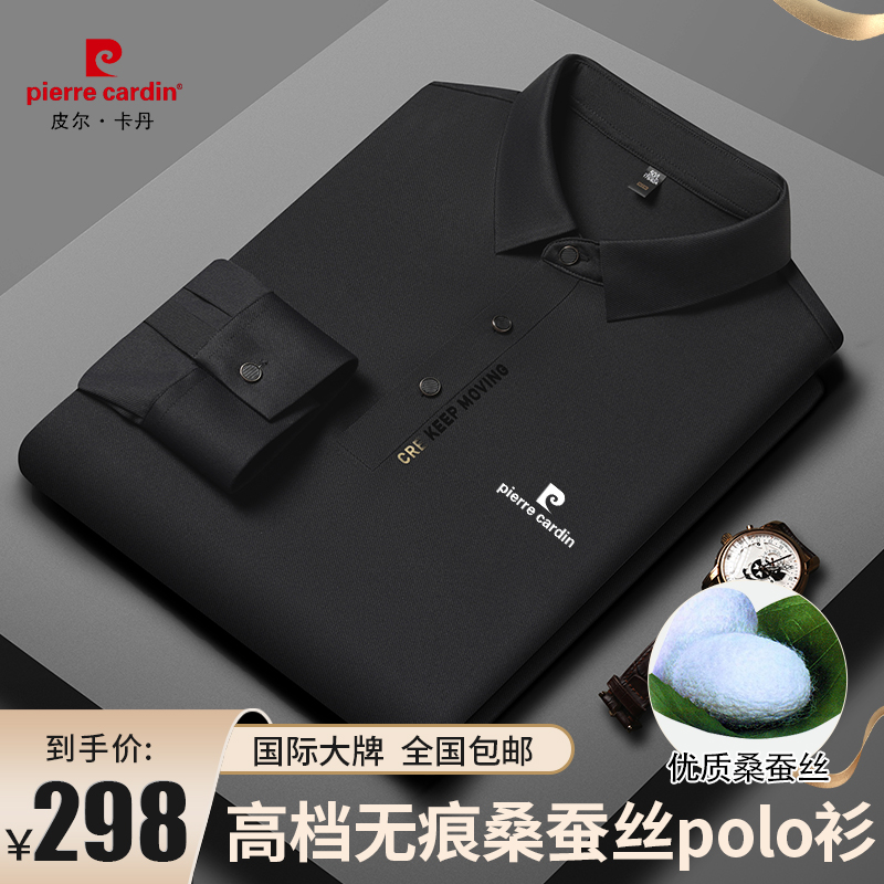 正品皮爾卡登高端新款男士無痕桑蠶絲polo衫翻領長袖T恤休閒男裝