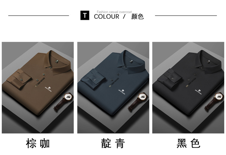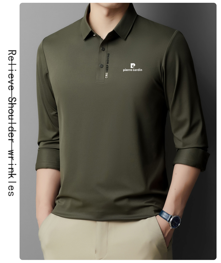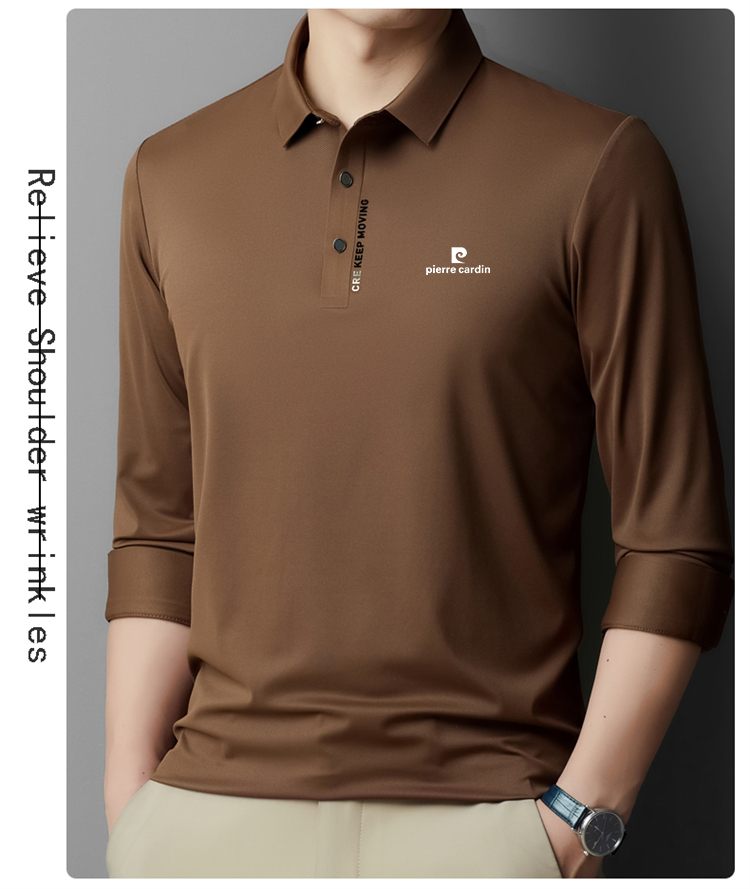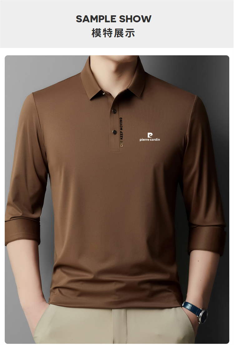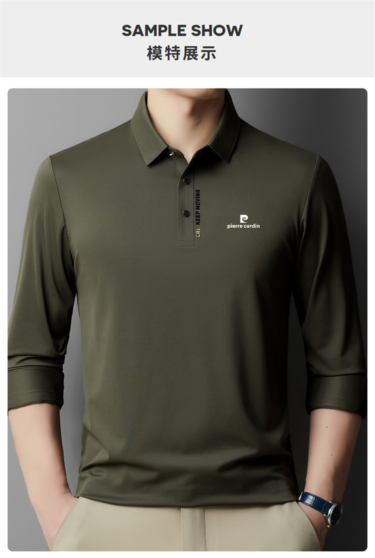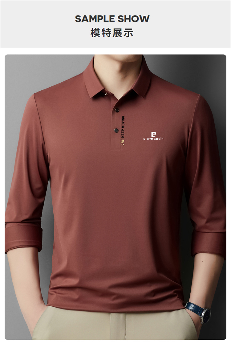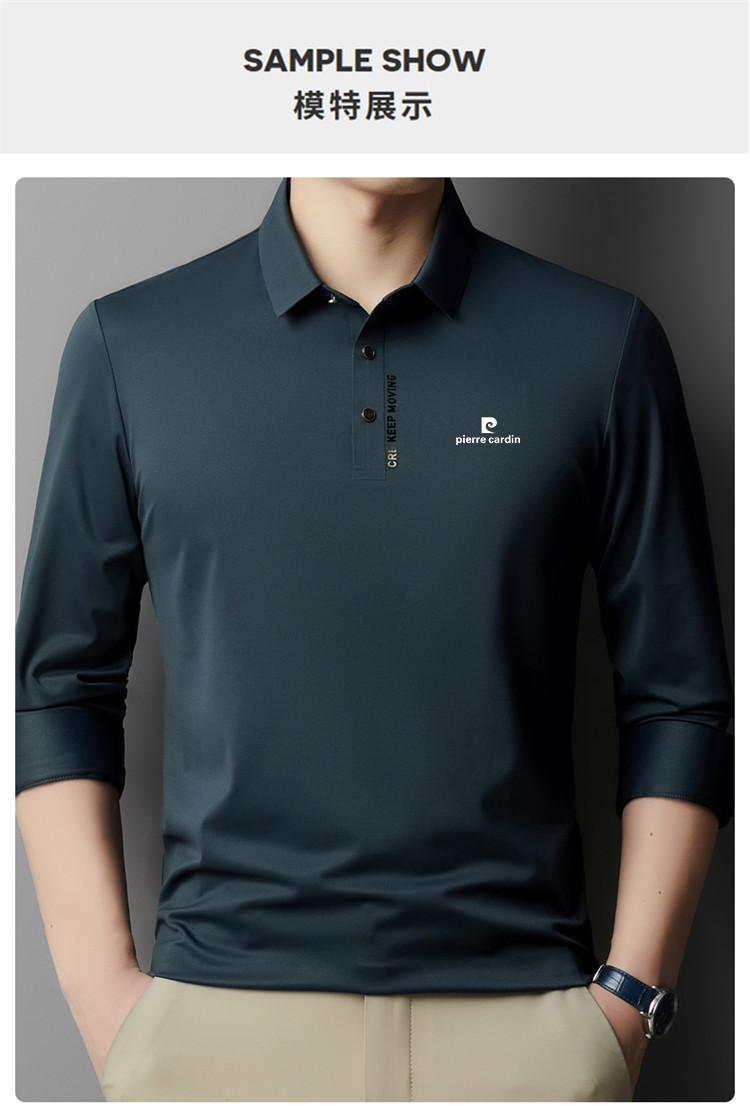 正品皮爾卡登高端新款男士無痕桑蠶絲polo衫翻領長袖T恤休閒男裝