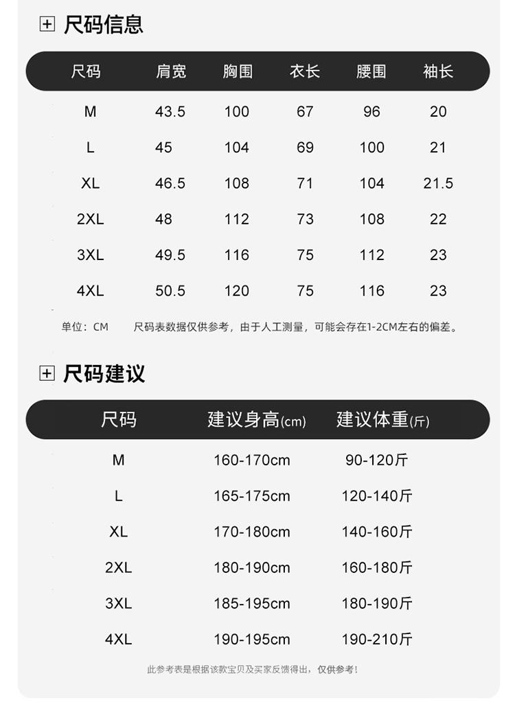 尺碼 165/M建議體重100-120斤,170L建議體重120-135斤,175/XL建議體重135-150斤,180/2XL建議體重150-165斤,185/3XL建議體重165-180斤,190/4XL建議體重180-200斤