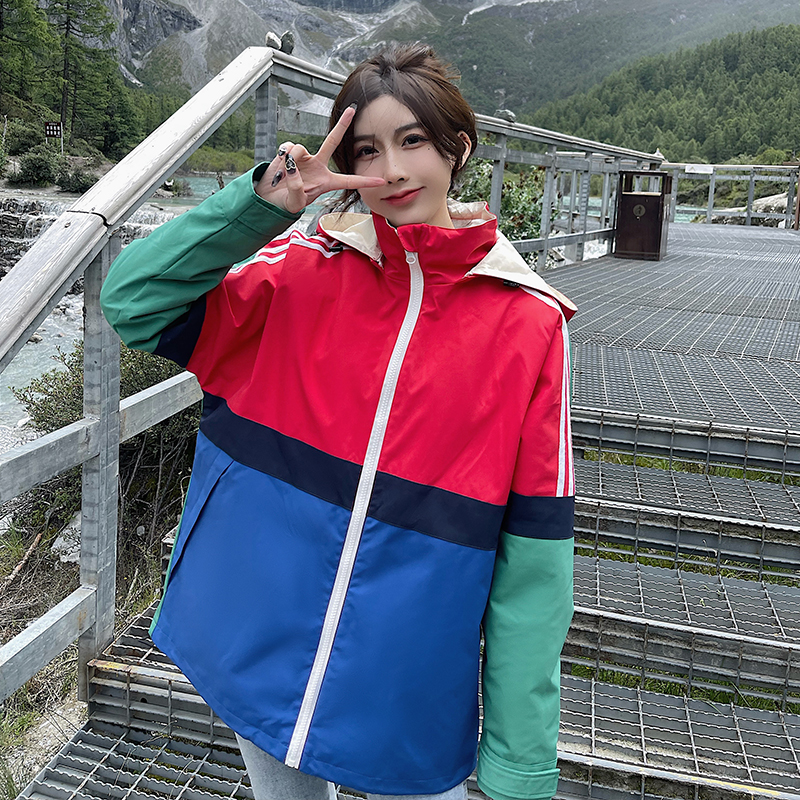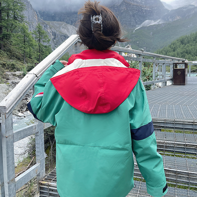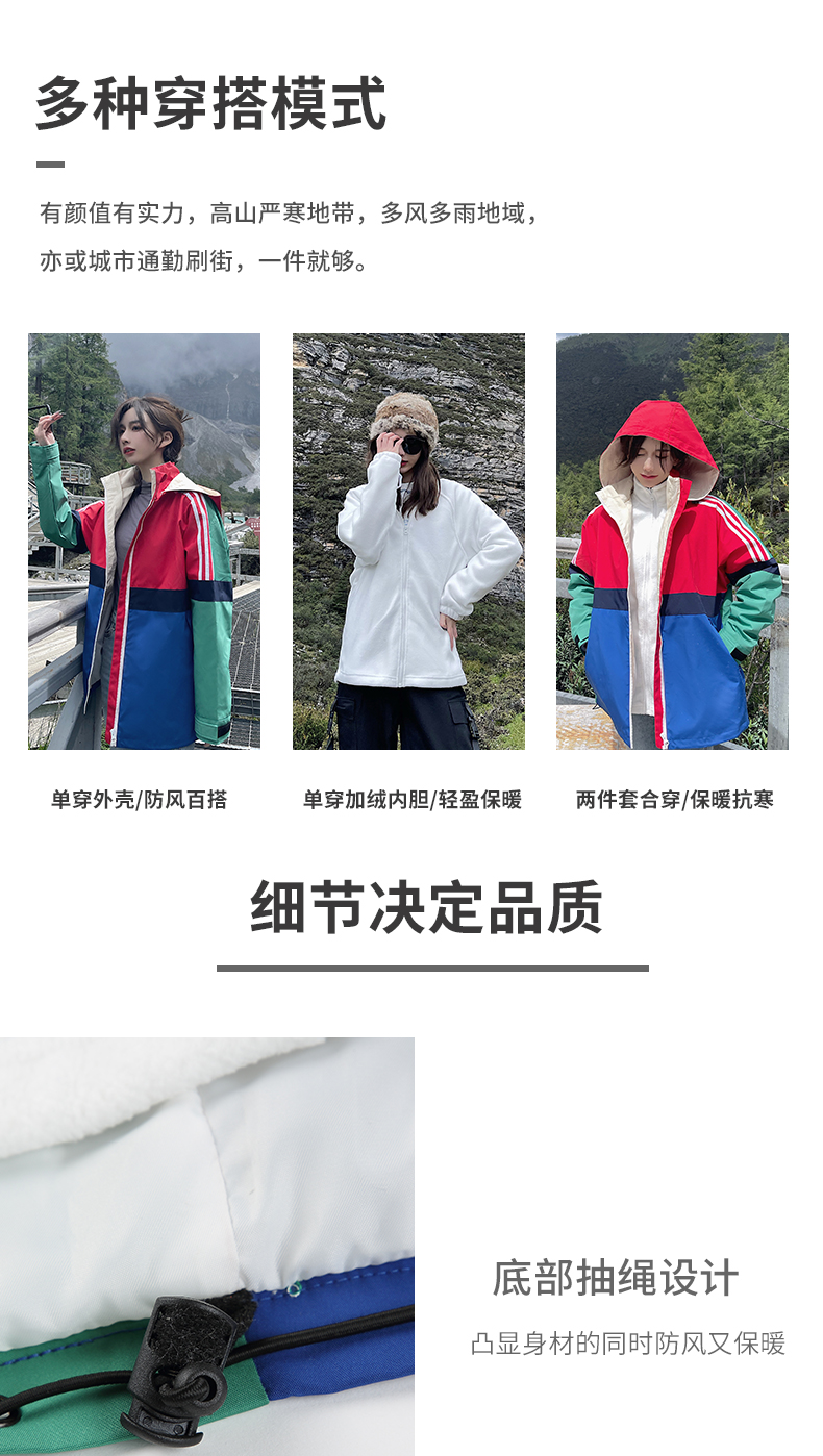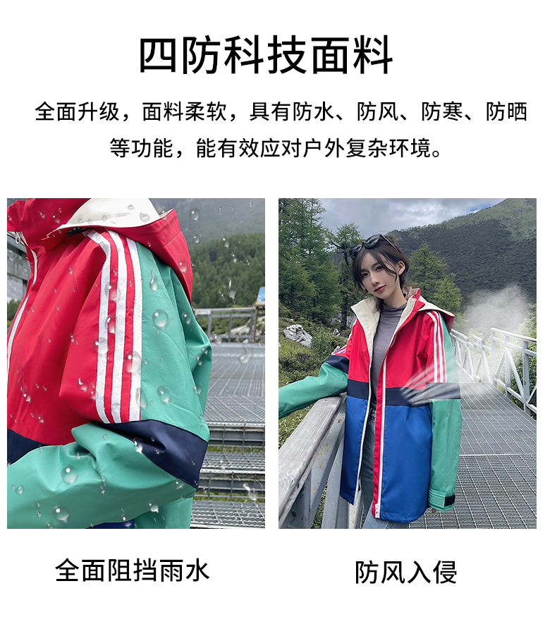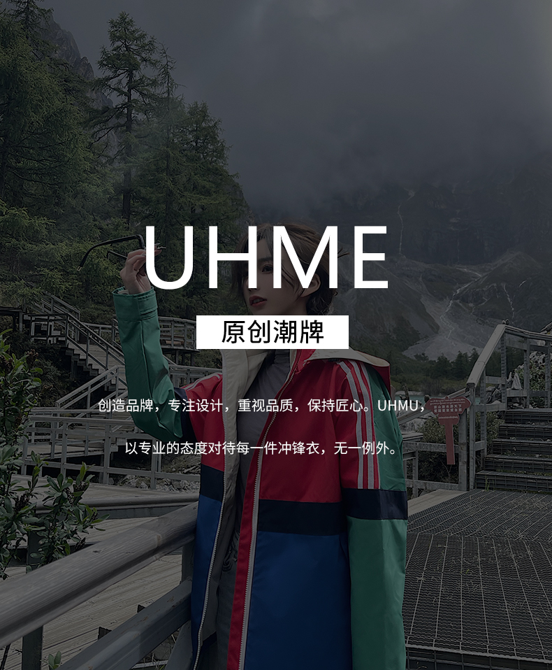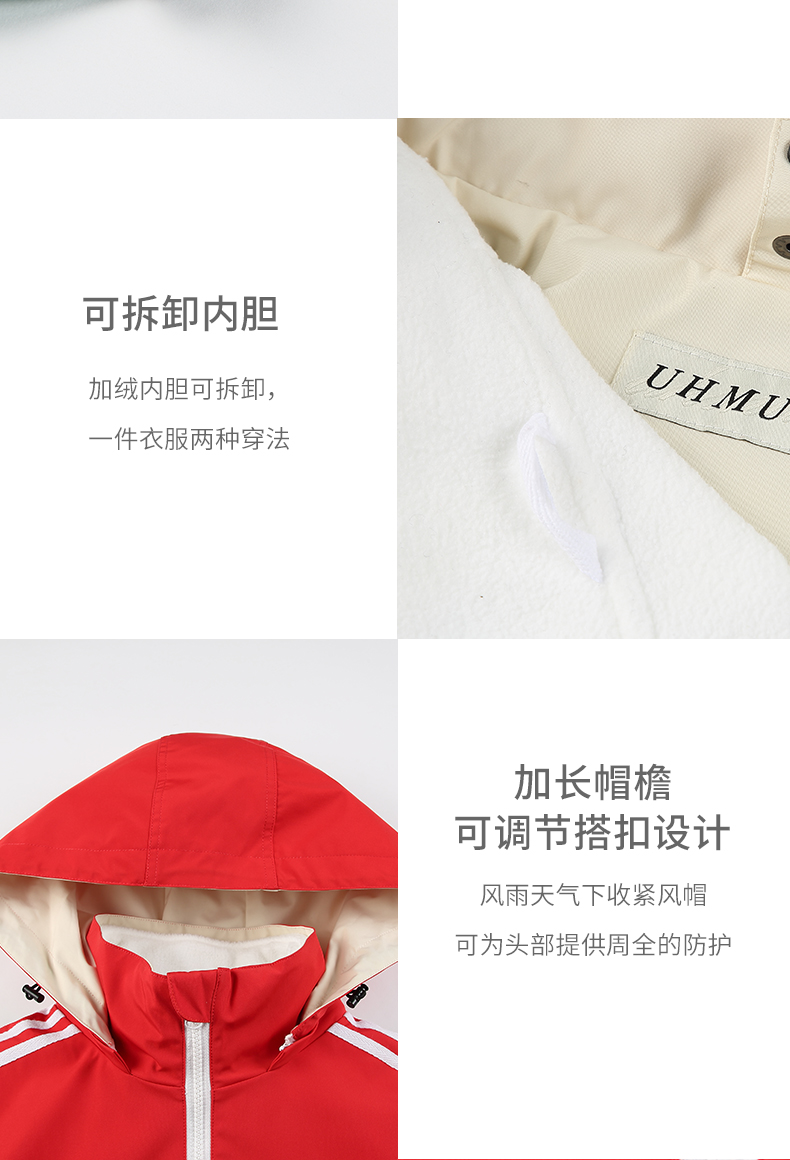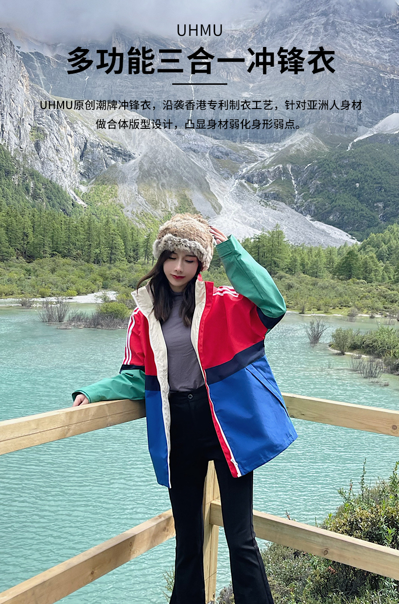 UhMu明星款拼色衝鋒衣女三合一2023秋冬新款外套防風防水登山服男