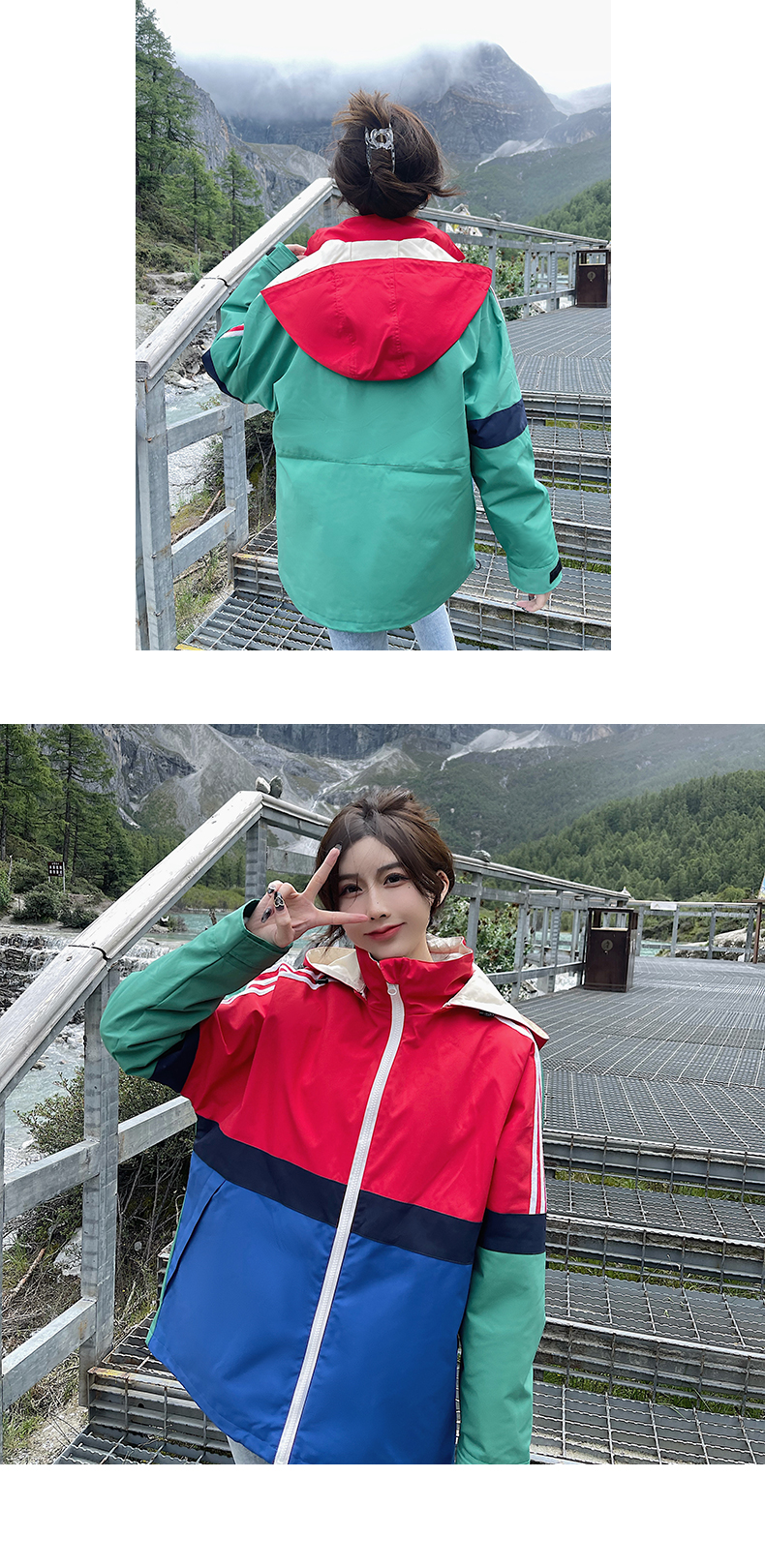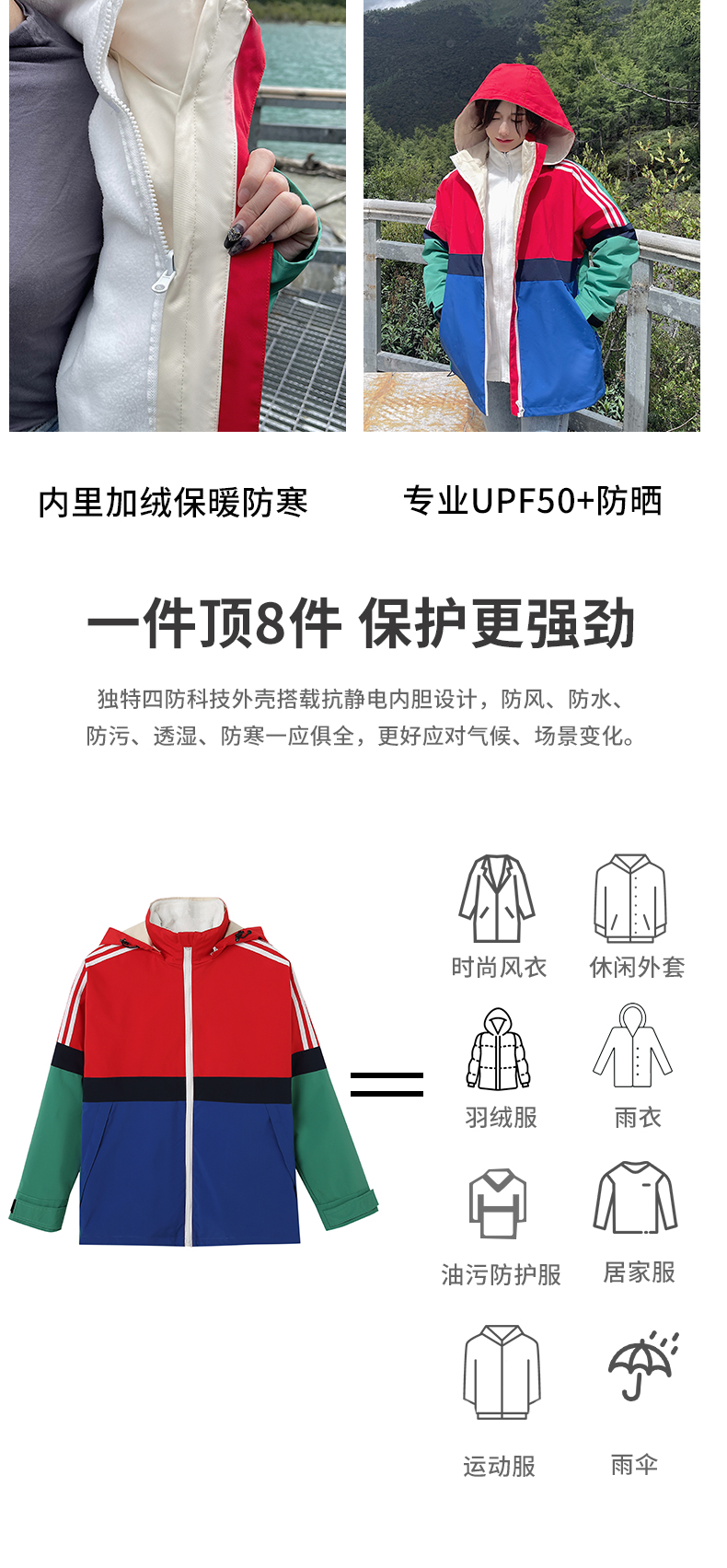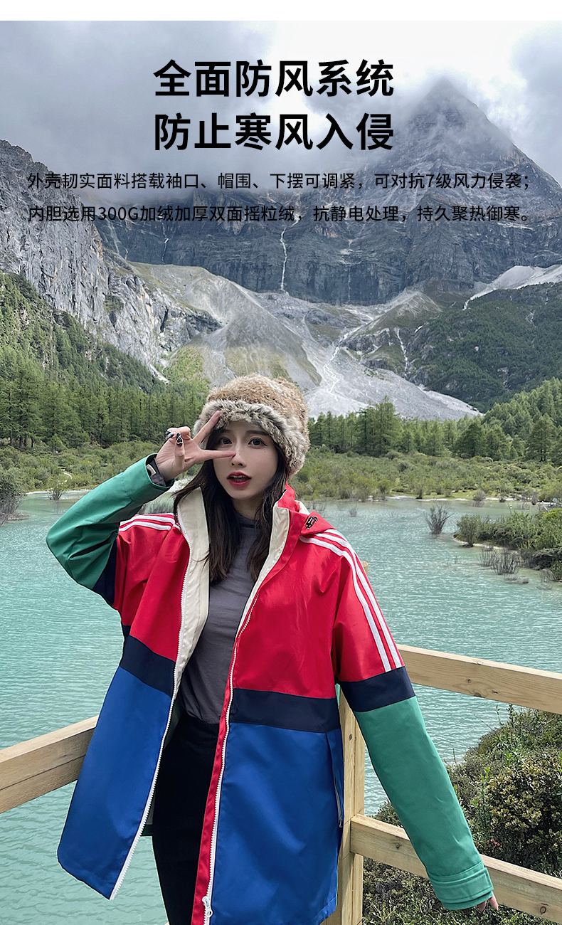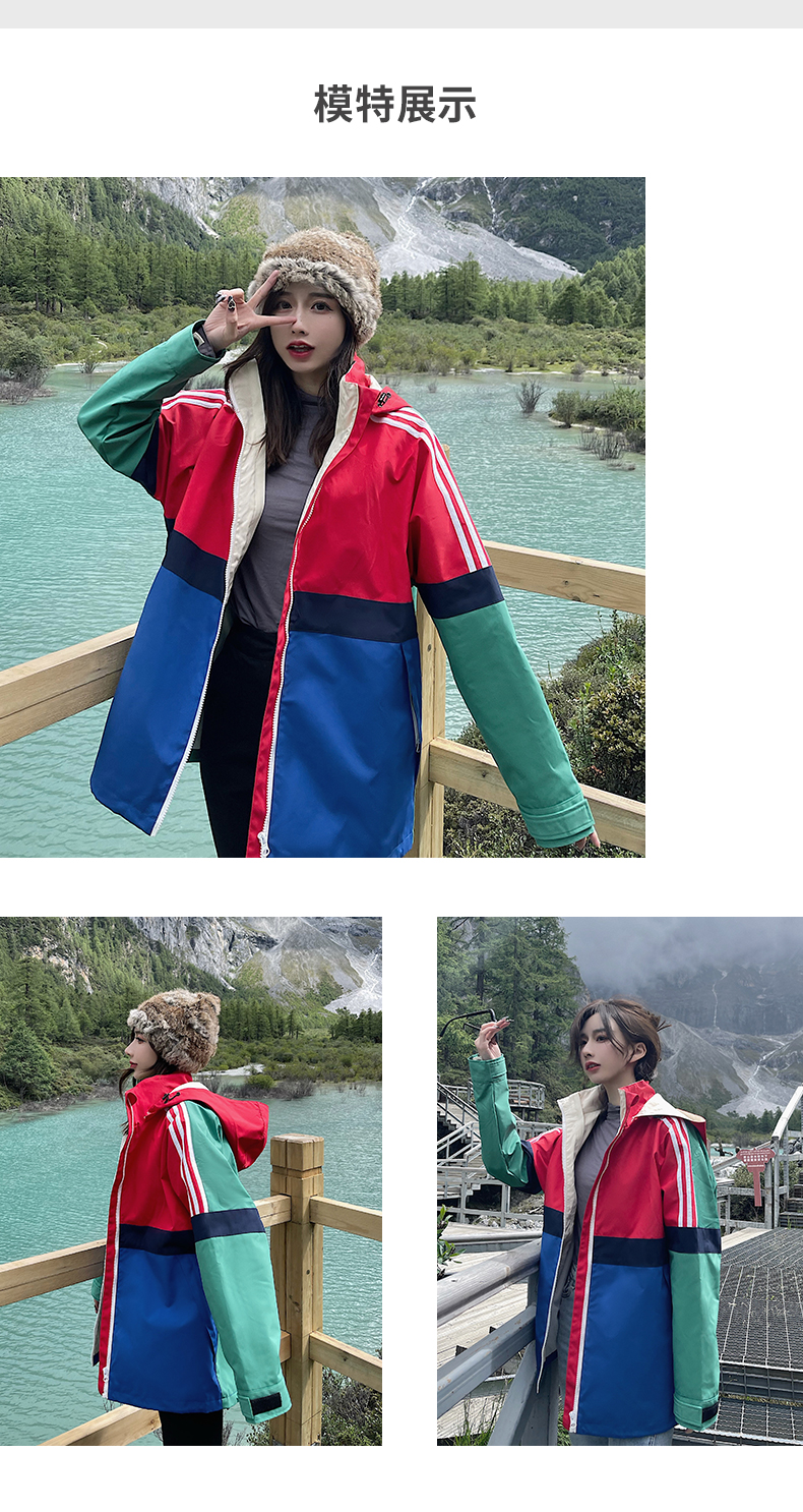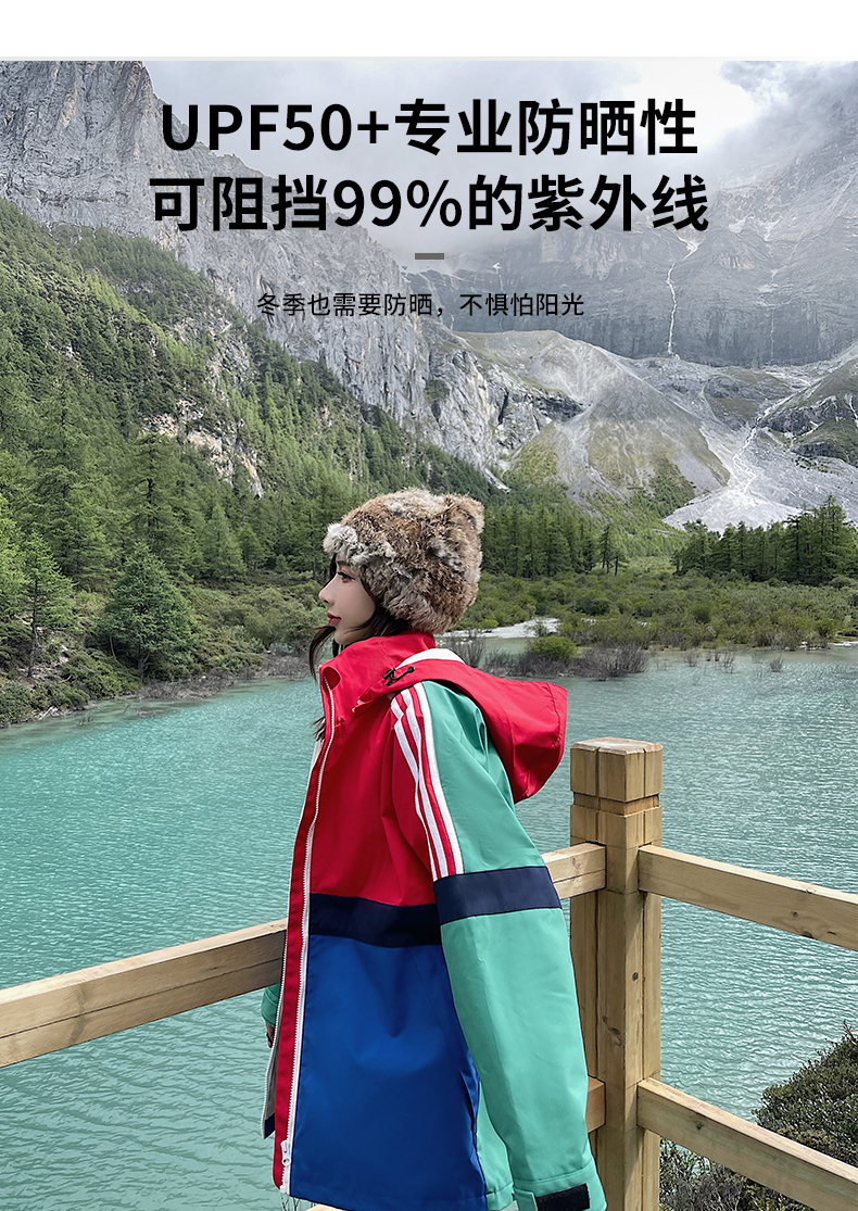 UhMu明星款拼色衝鋒衣女三合一2023秋冬新款外套防風防水登山服男