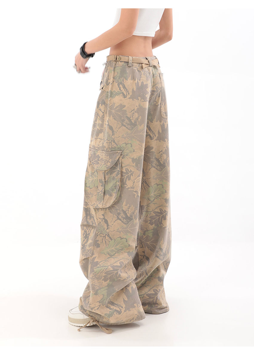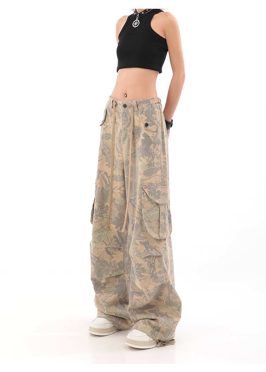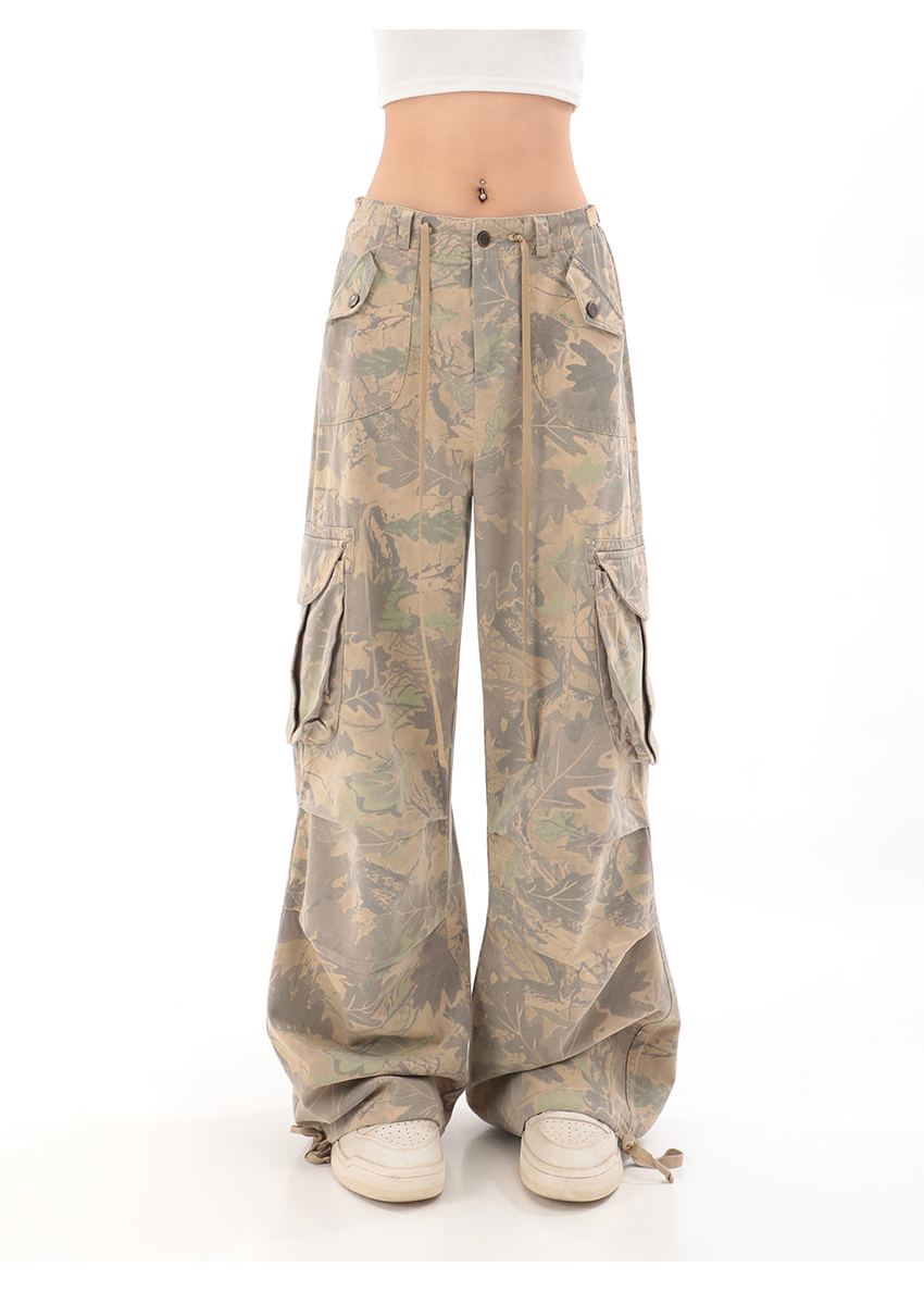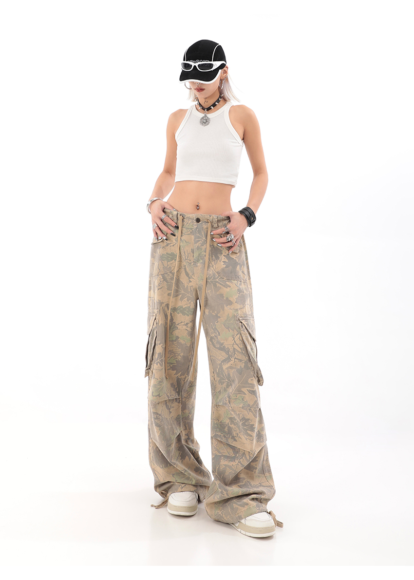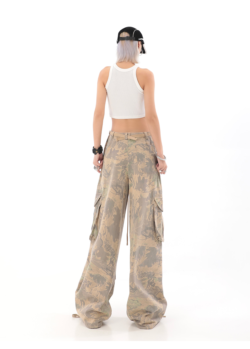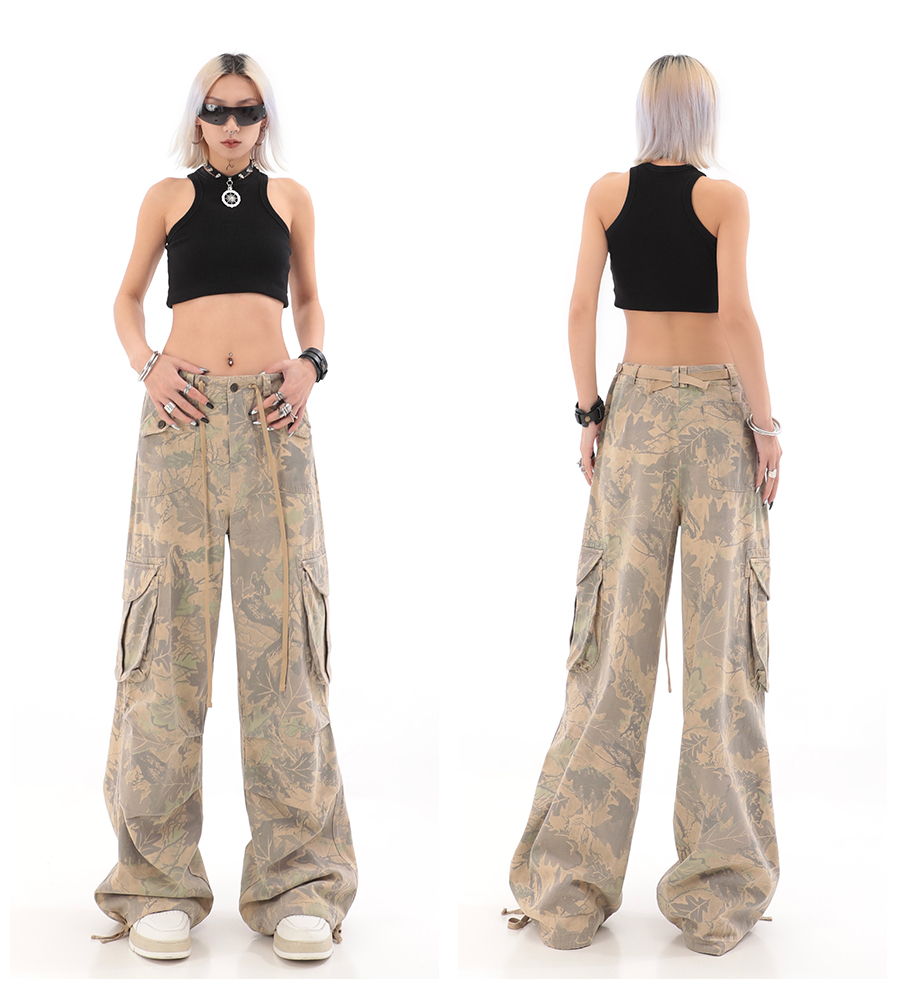 秋季辣妹迷彩工裝褲女美式高街hiphop嘻哈束腳闊腿休閒褲子潮ins