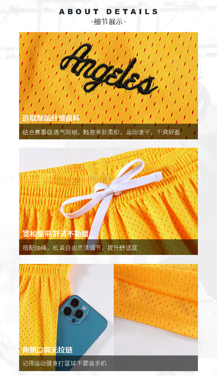 美式3分小短褲男不過膝運動籃球訓練褲刺繡雙層網眼透氣速乾街頭