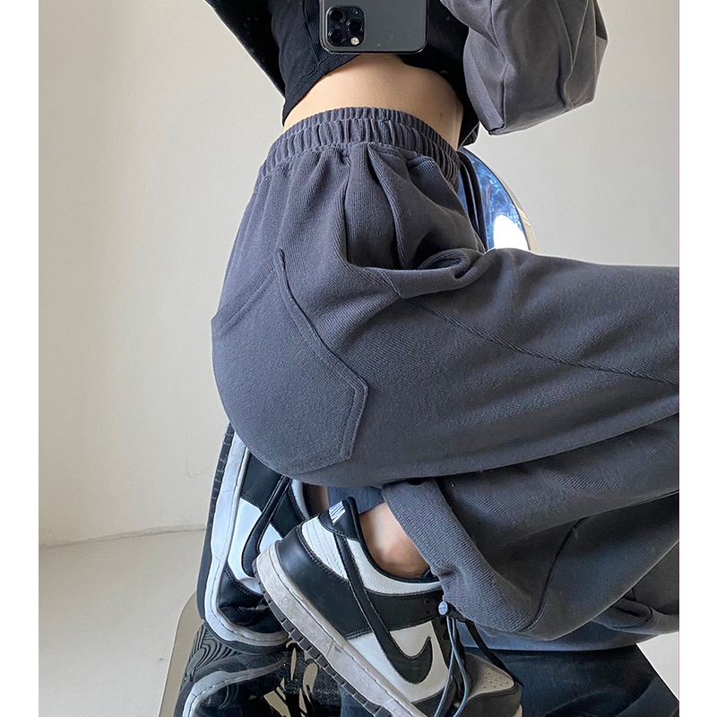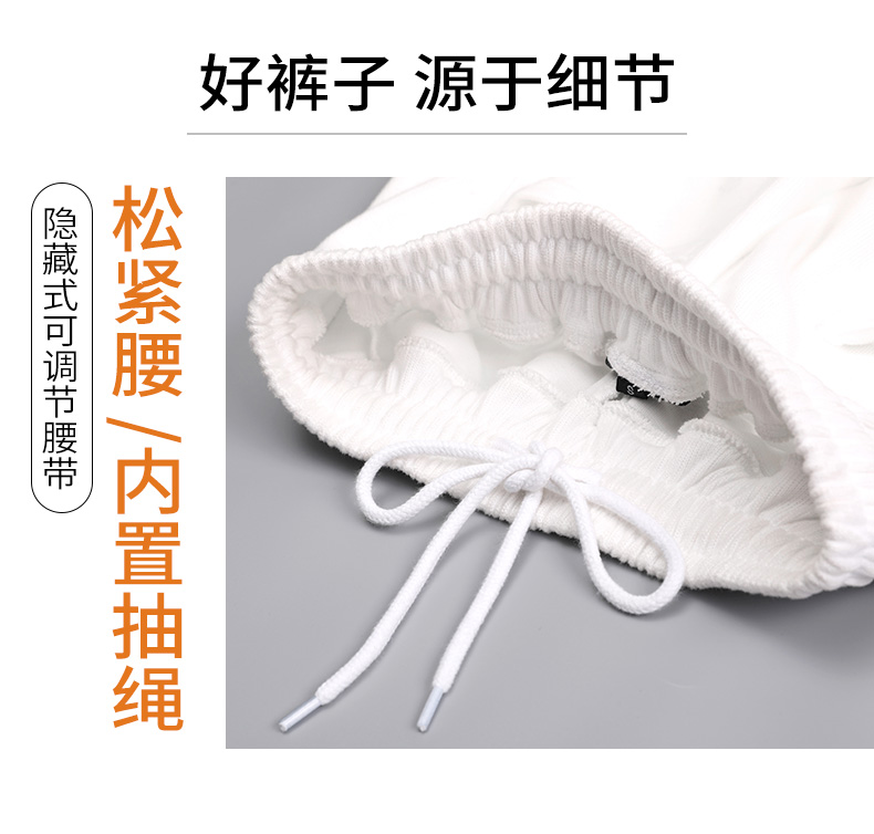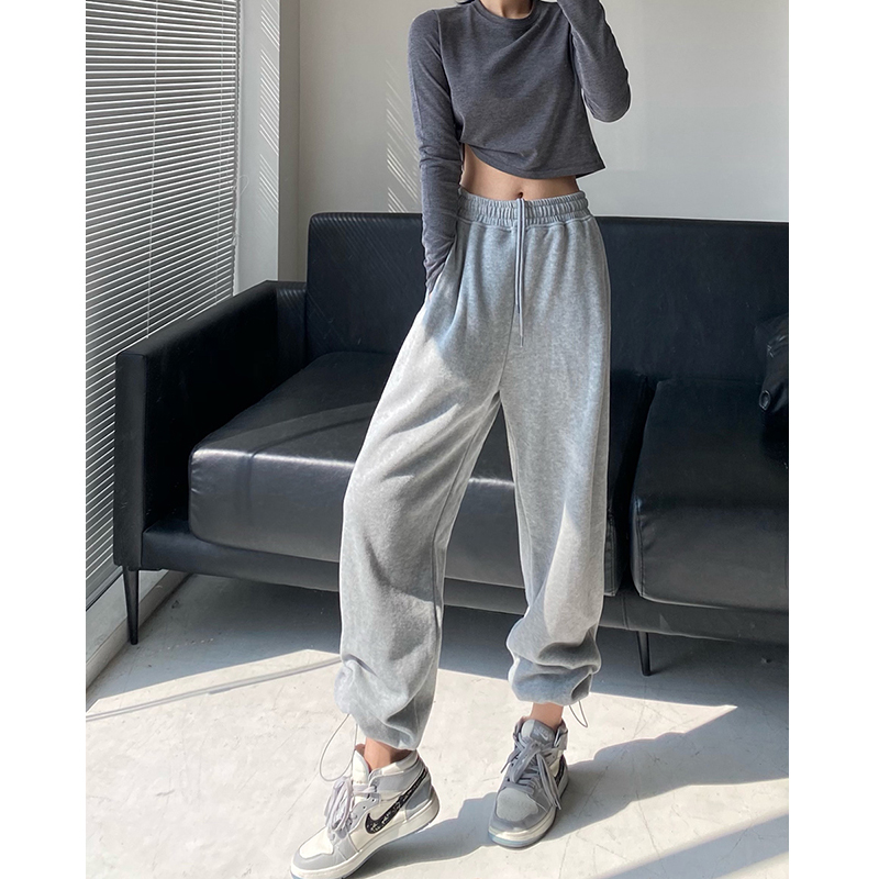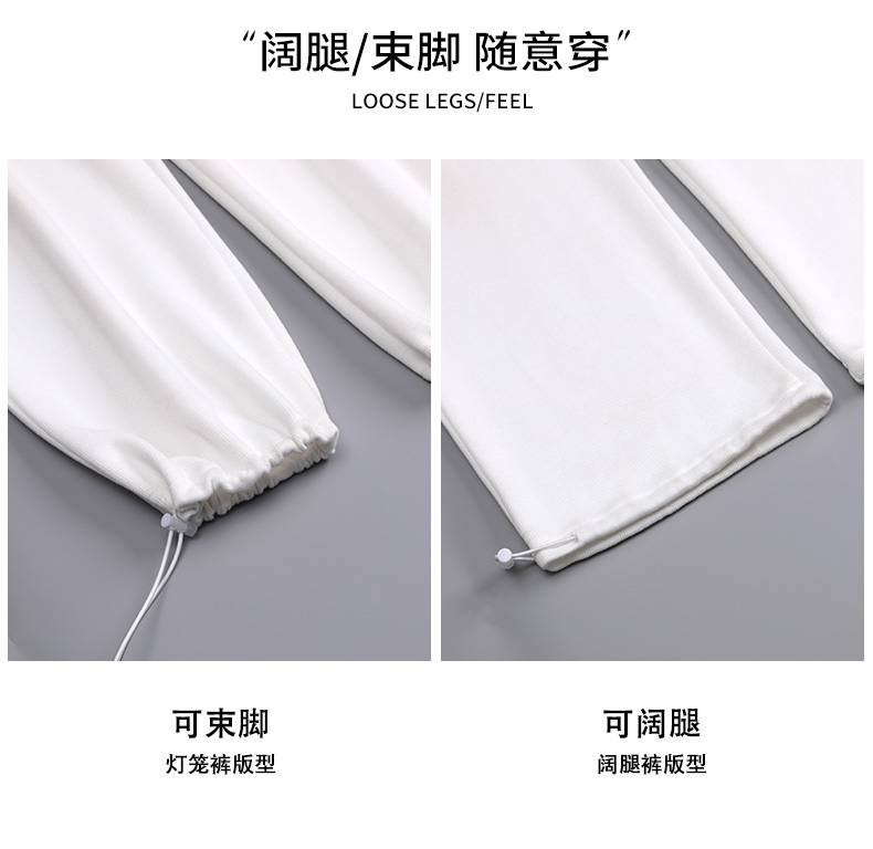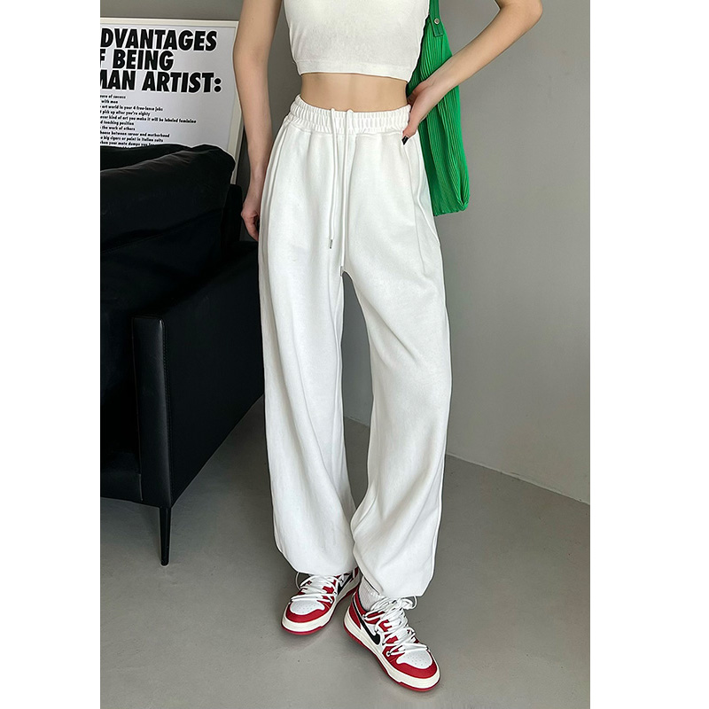 春秋冬季白色運動褲女高腰顯瘦闊腿直筒休閒抽繩美式束腳加絨衛褲