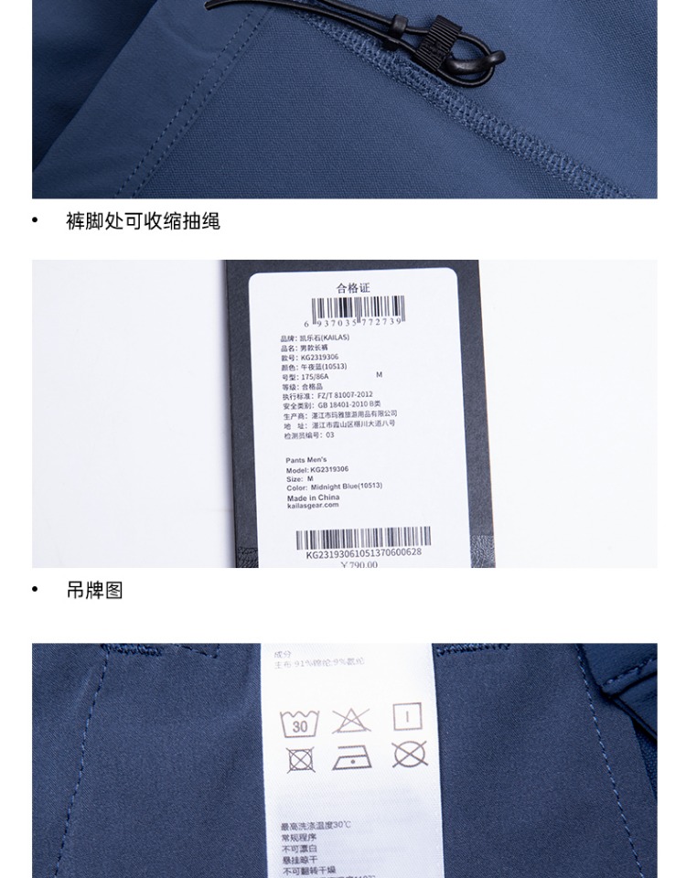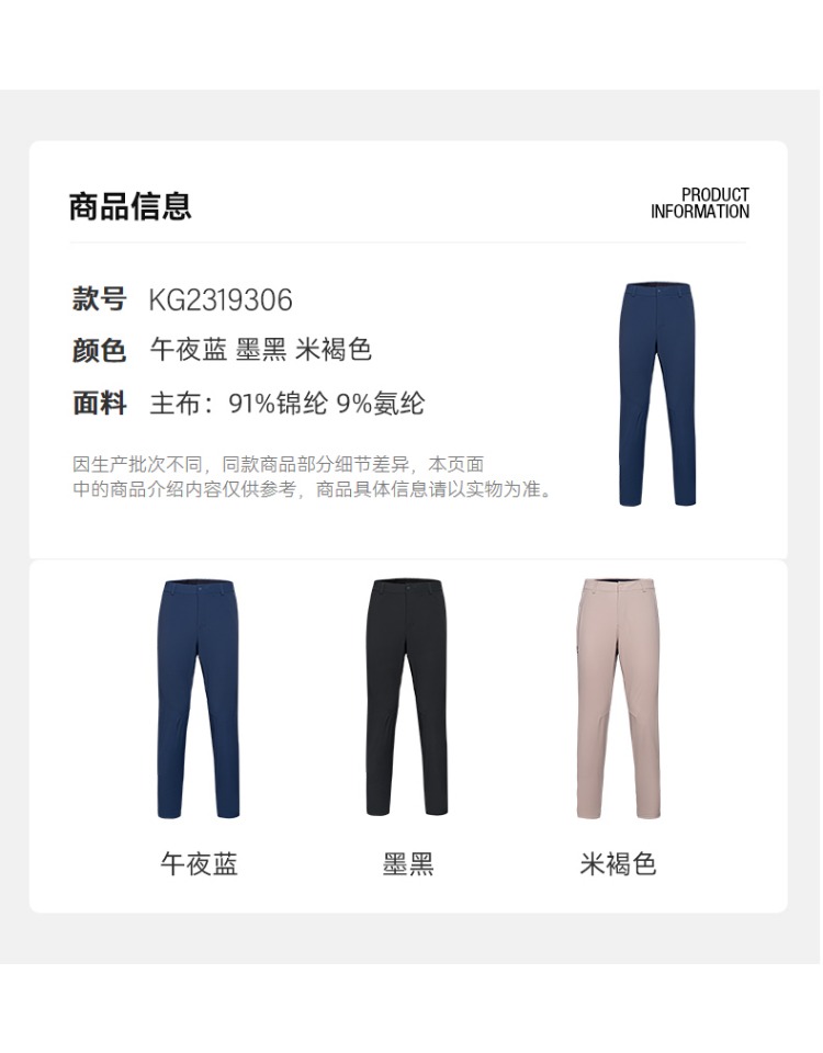 凱樂石速乾褲男款戶外運動輕薄透氣休閒褲彈力耐磨長褲KG2319306