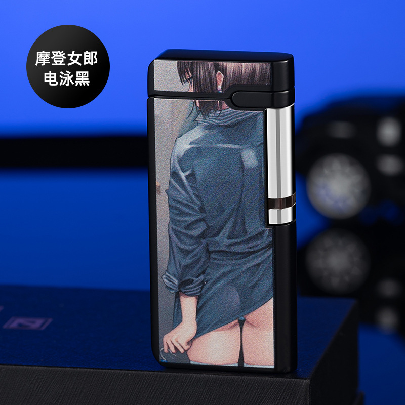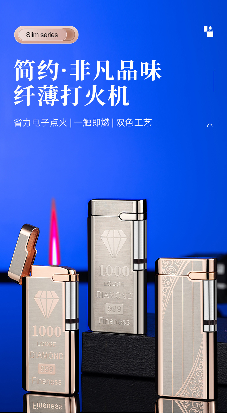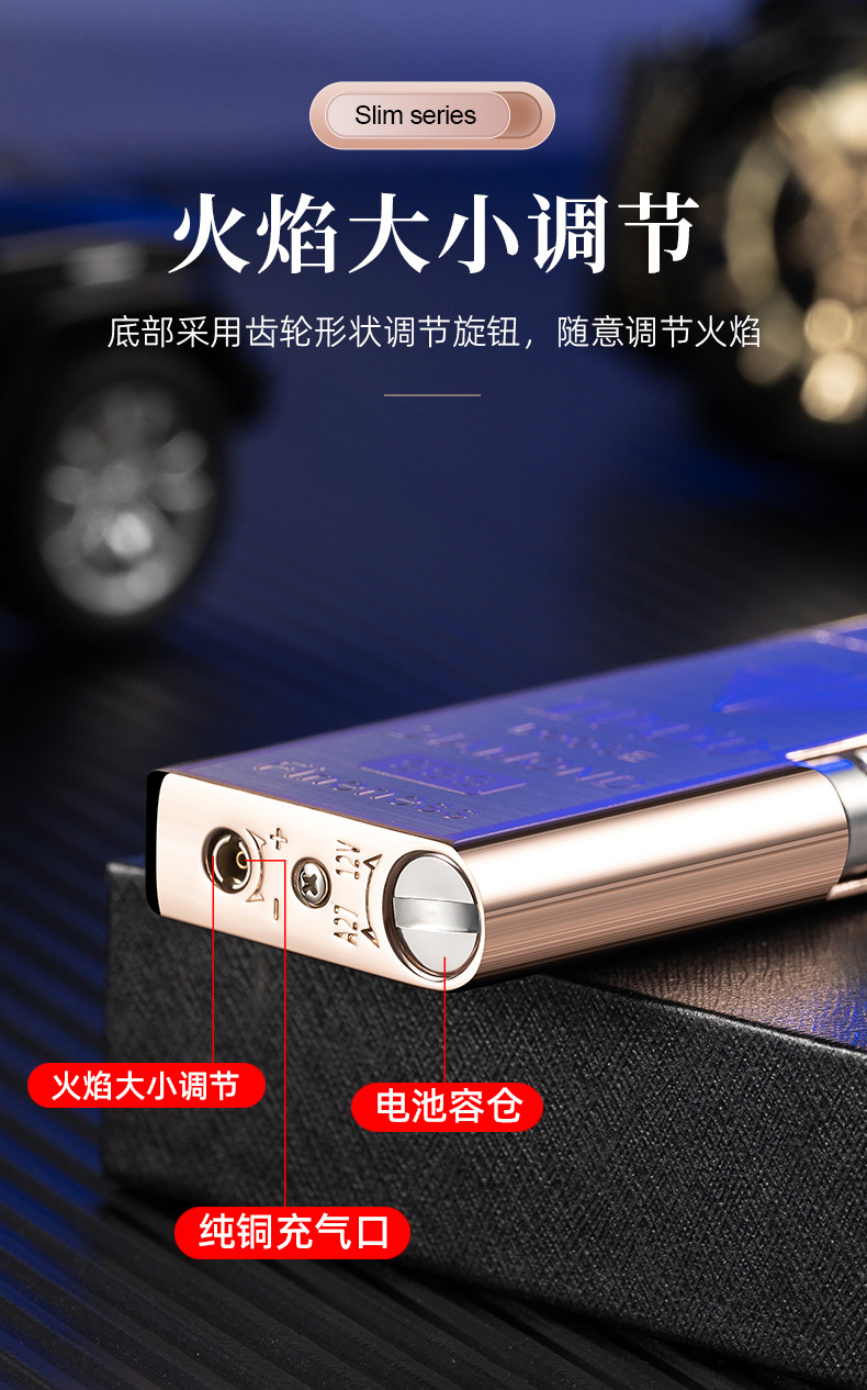 CL2105侧滑窄版红火创意个性电池点火防风电子感应充气打火机批发