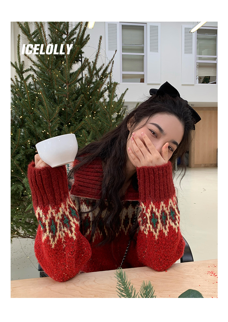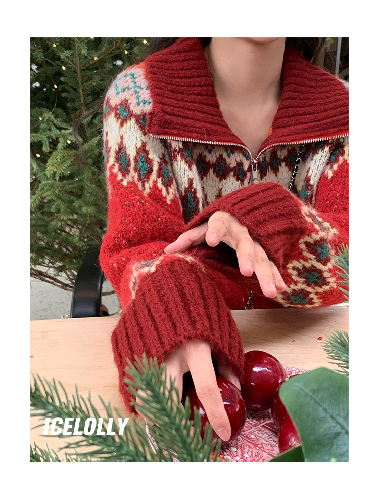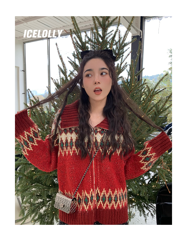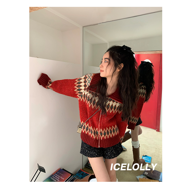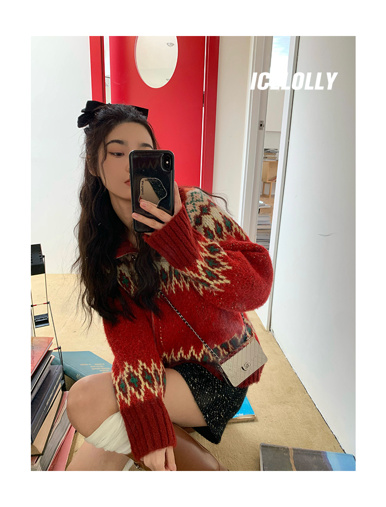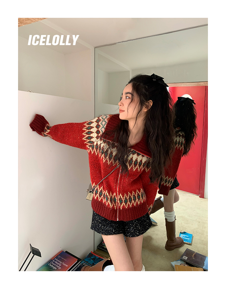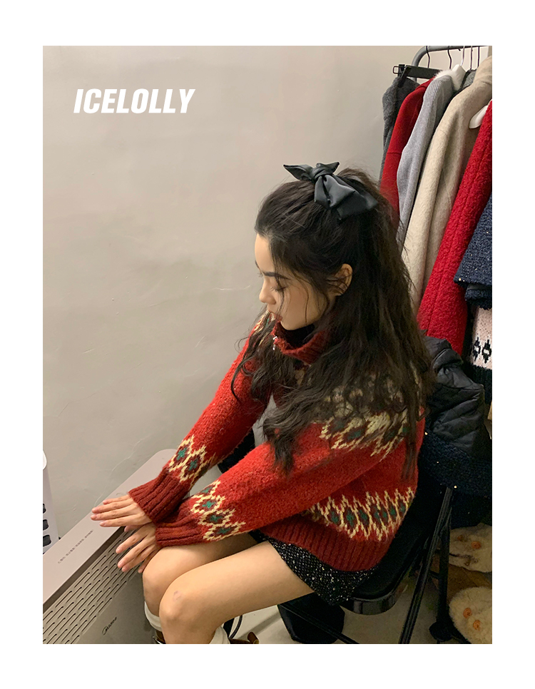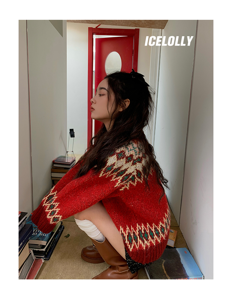【139元福利款】ICELOLLY紅色本命年針織毛衣女秋冬法式針織外套